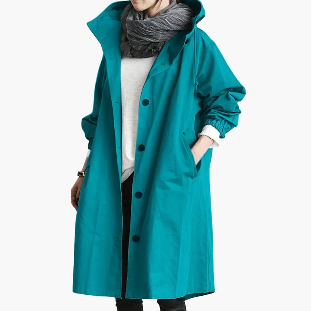 Dame trench-coat med dobbeltknaplukning og klippet revers