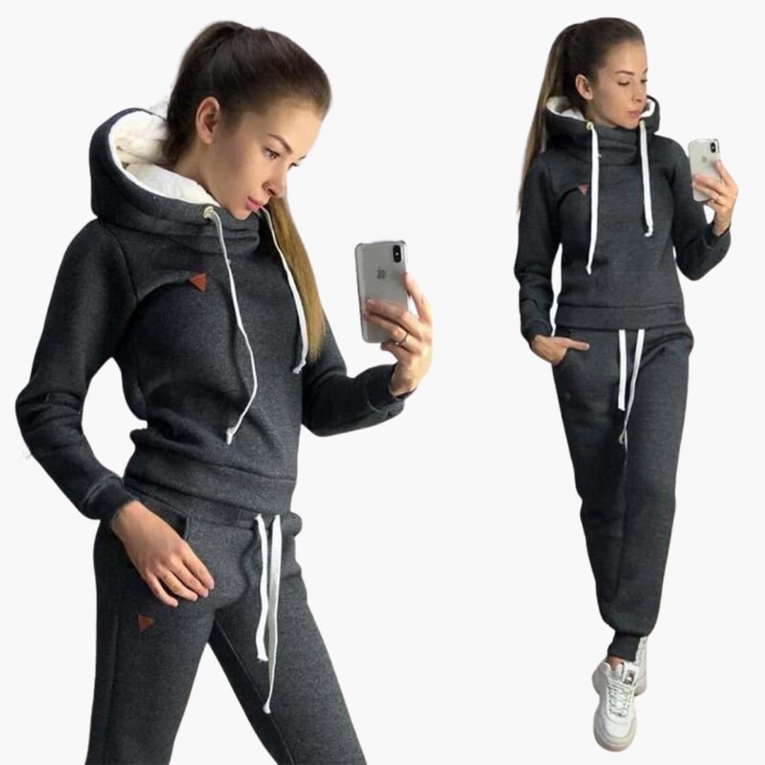 Dame træningsdragt med lynlås hættejakke