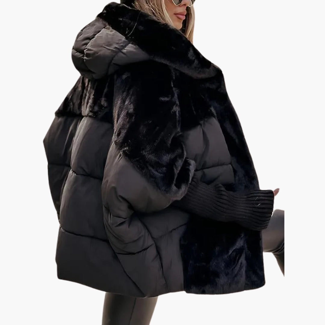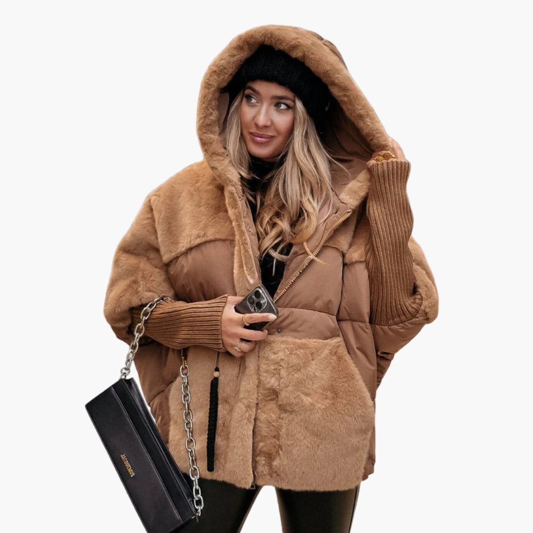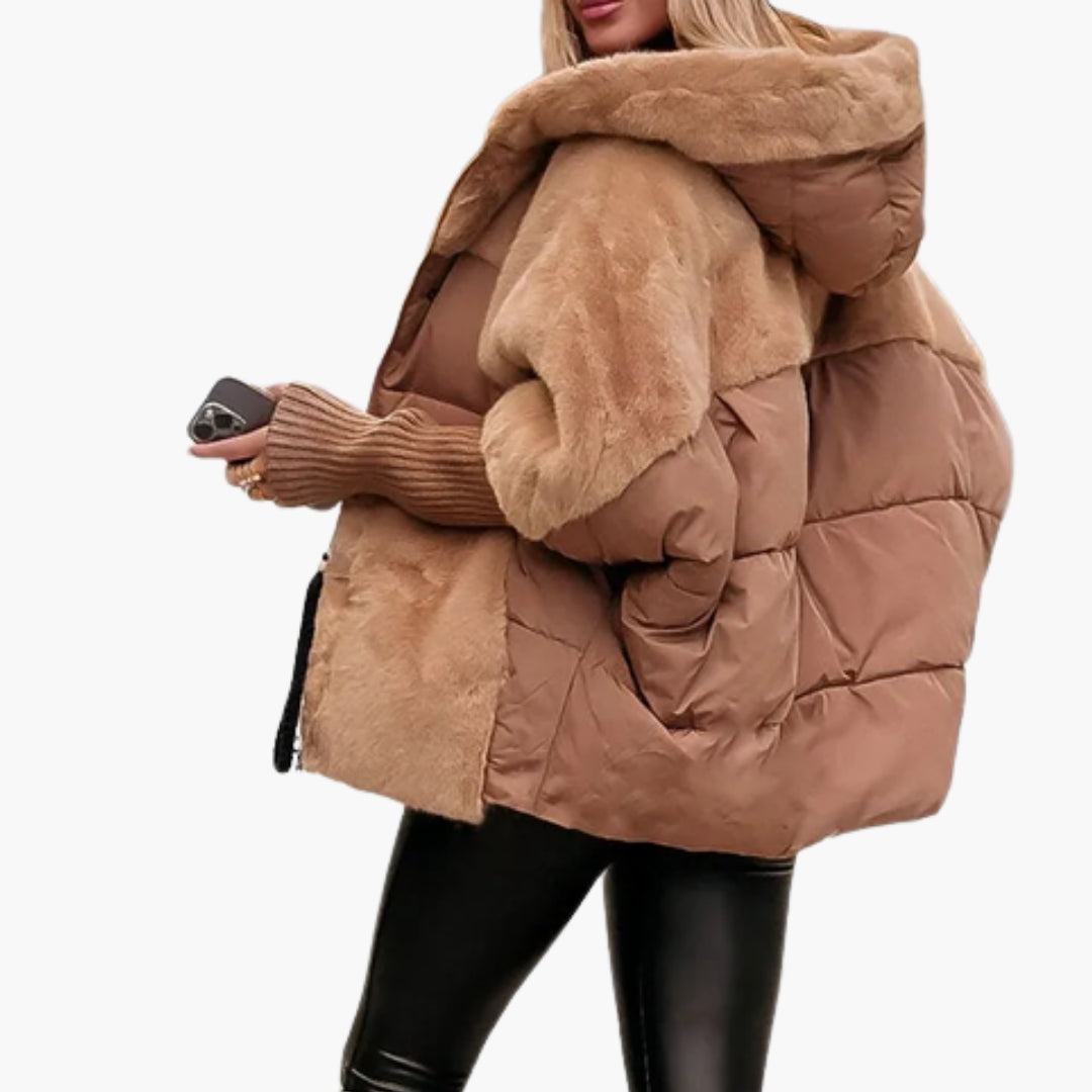 Dame vinterjakke med hætte, quiltet udseende