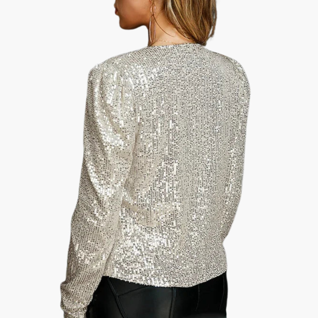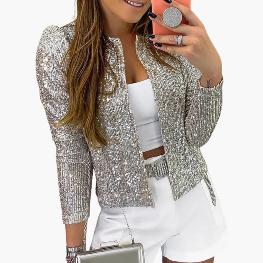 Damejakke med lange ærmer og overflade af palietter