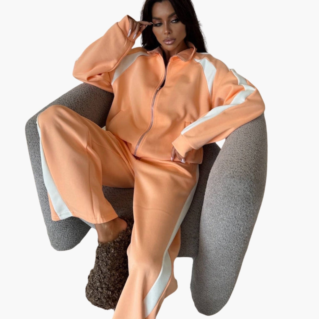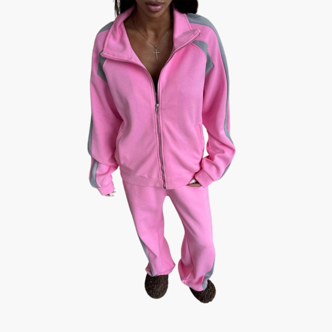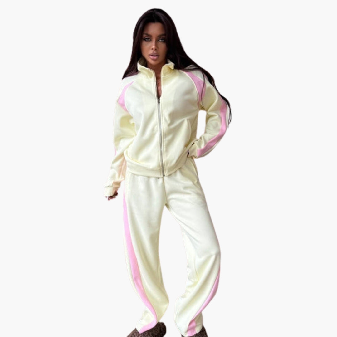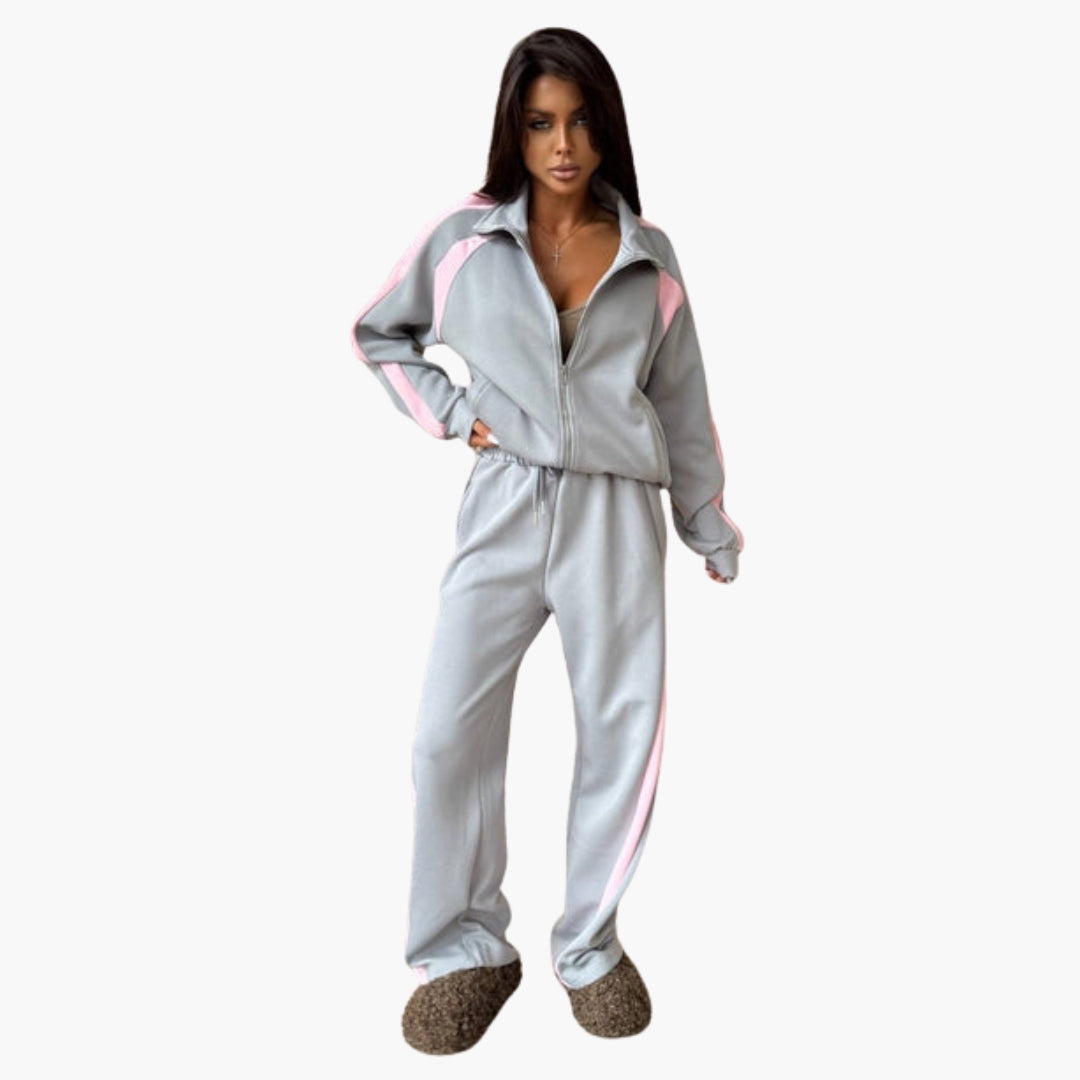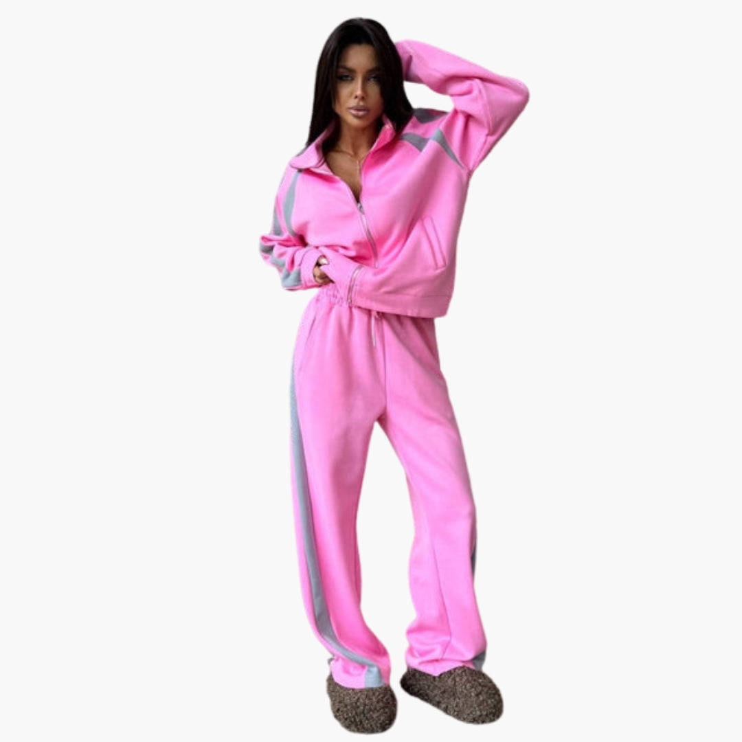 Dame træningsdragt med kontrastbånd