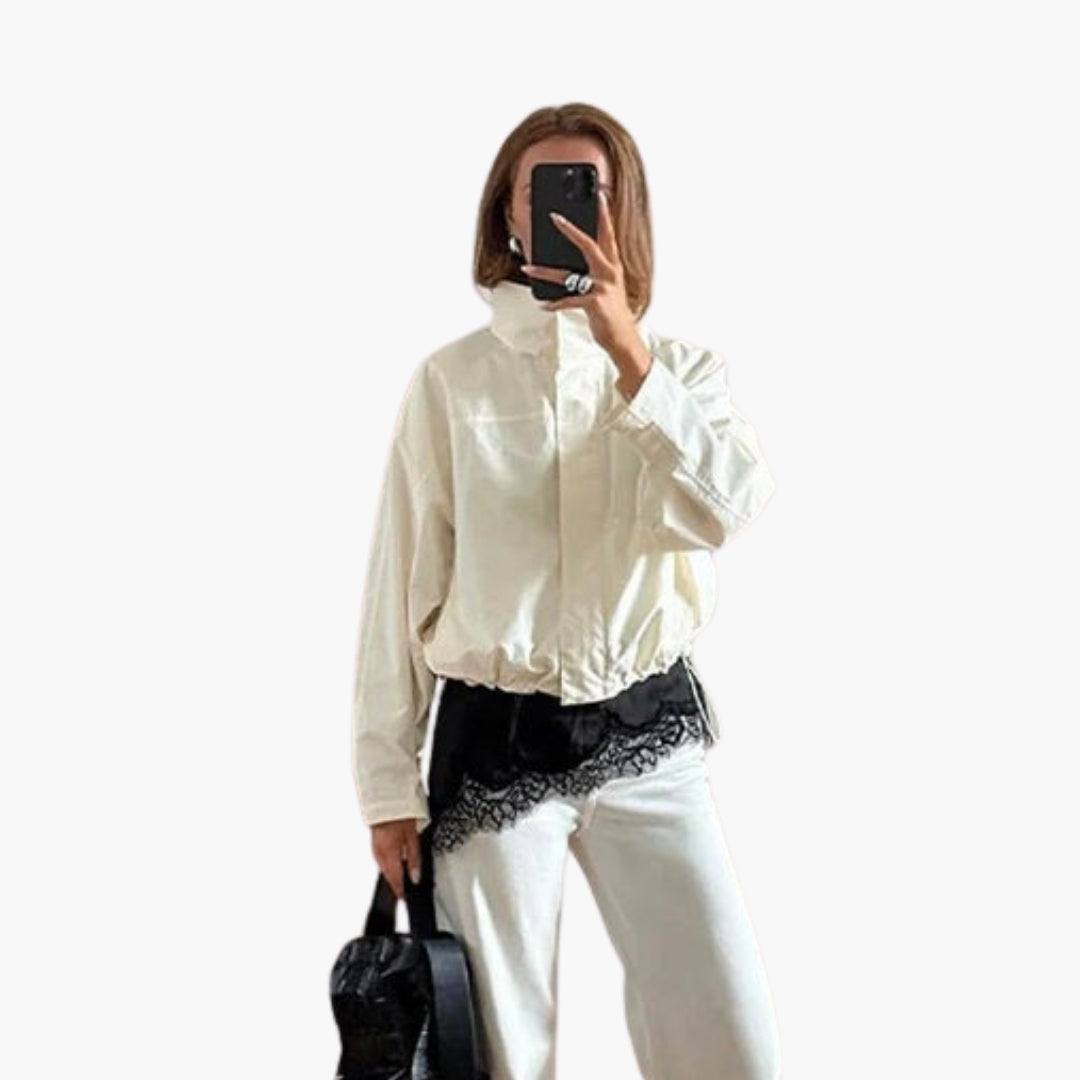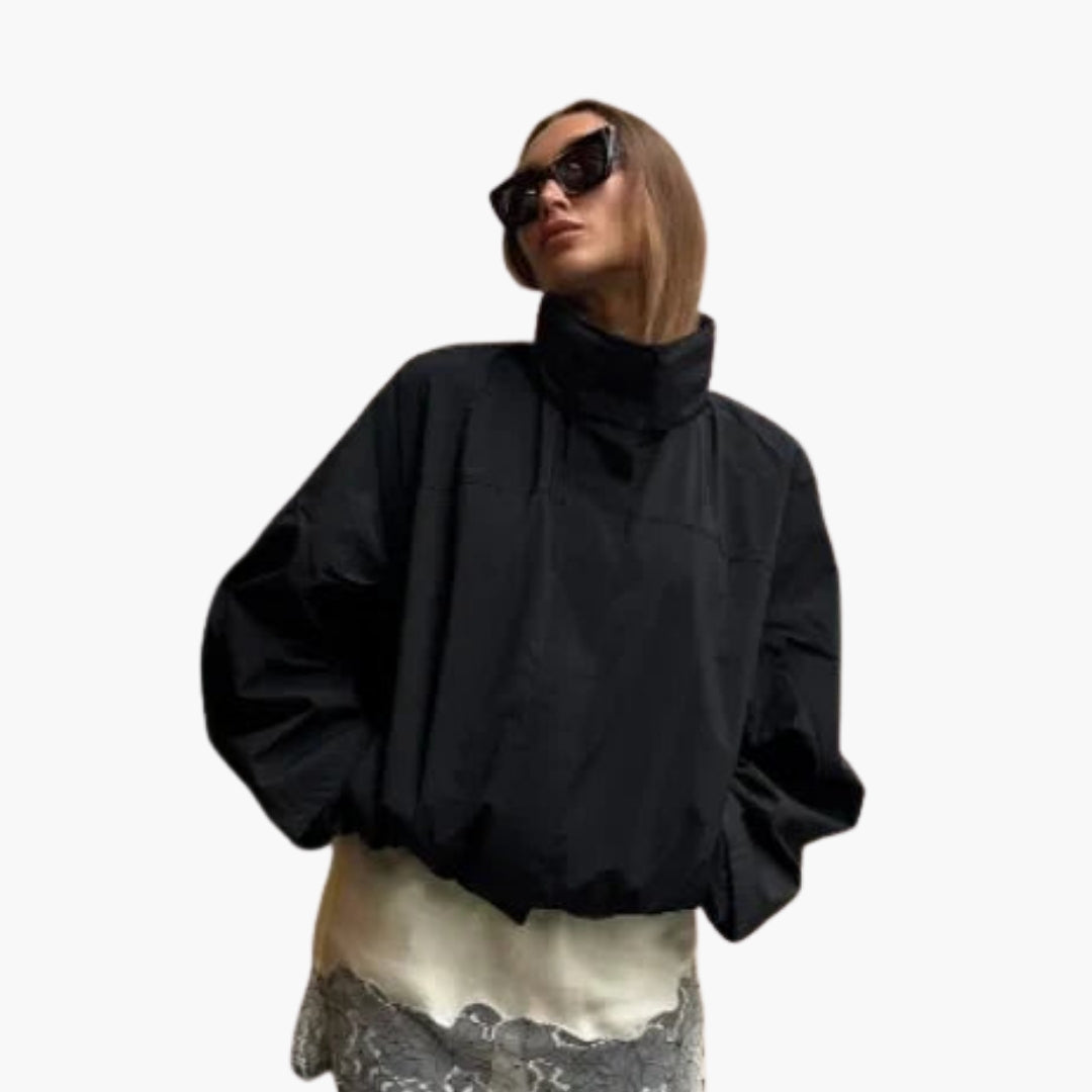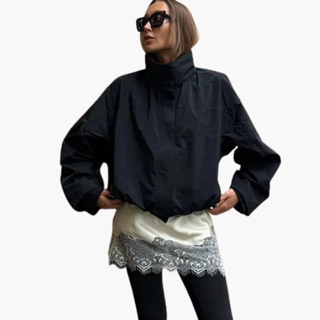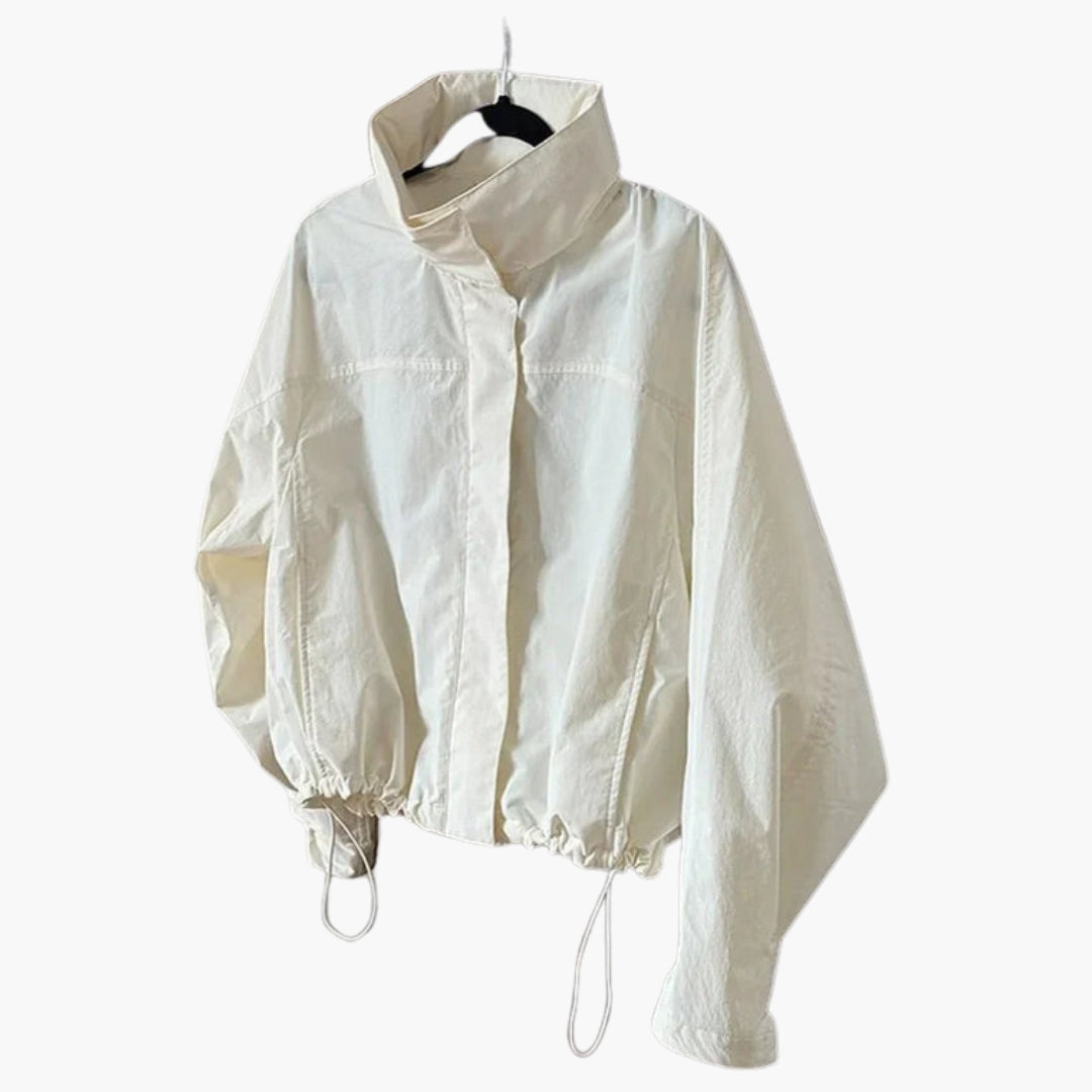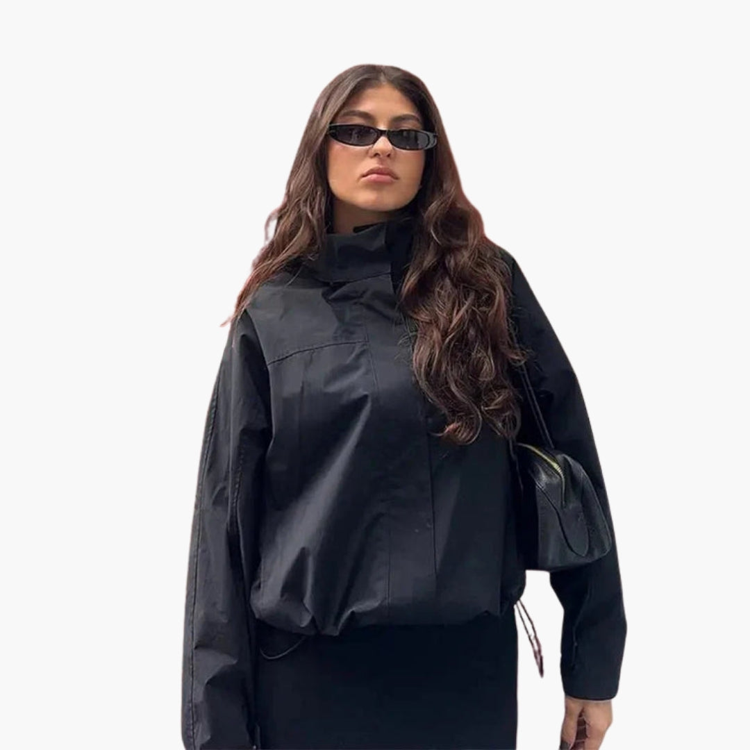 Dame vindjakke med høj krave og kort kant