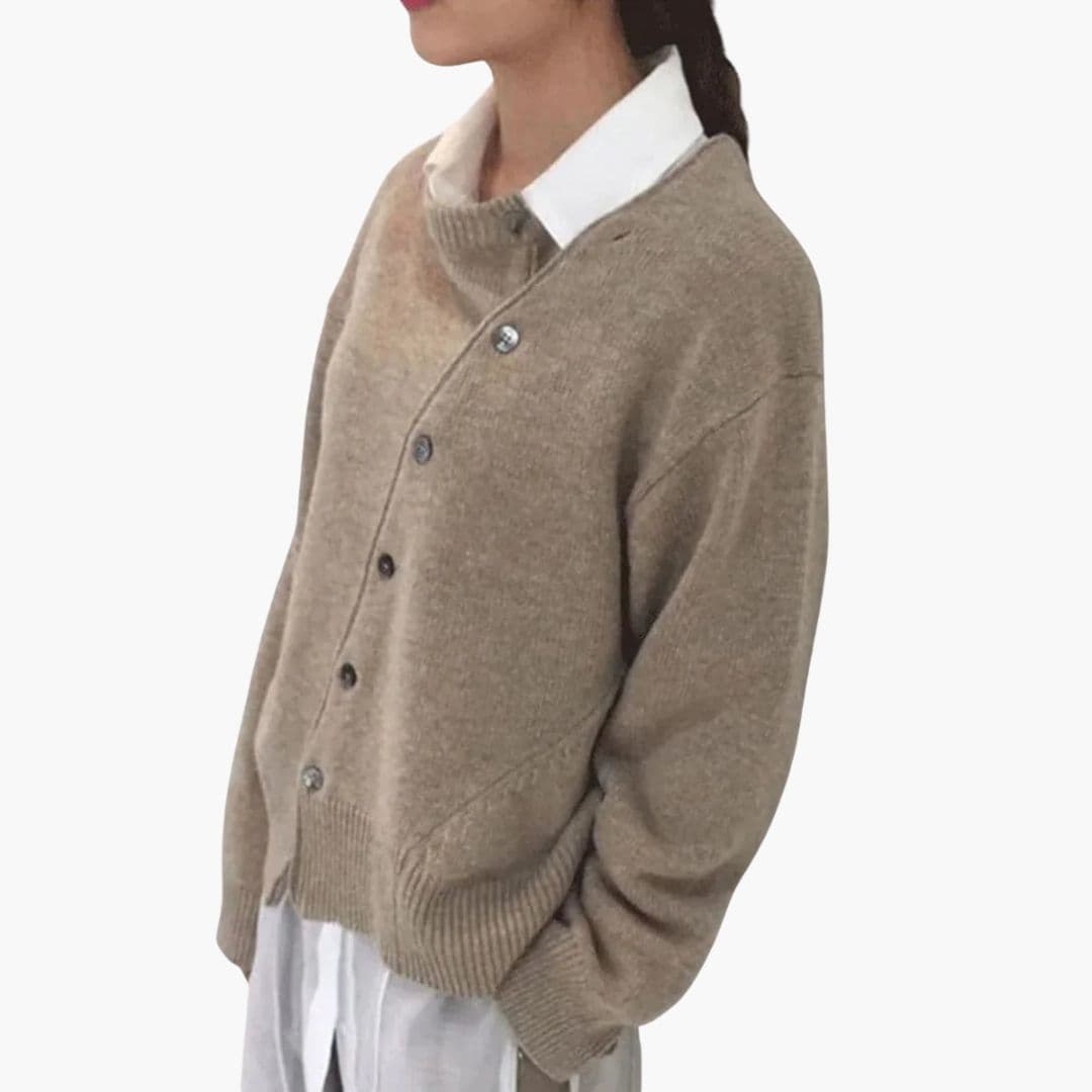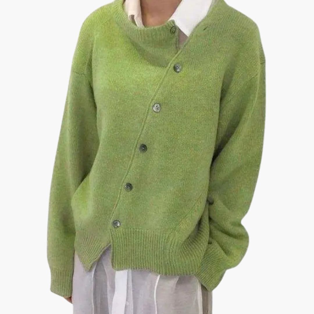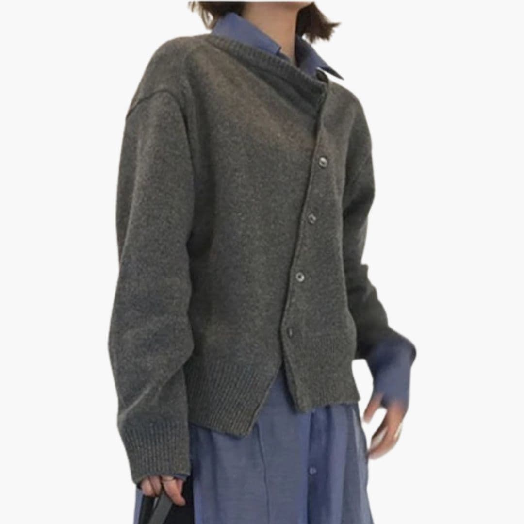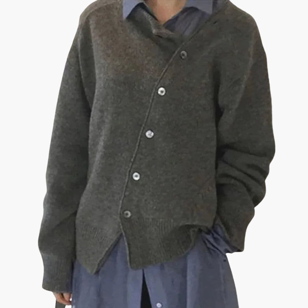 Dame sweater med asymmetrisk knaplukning