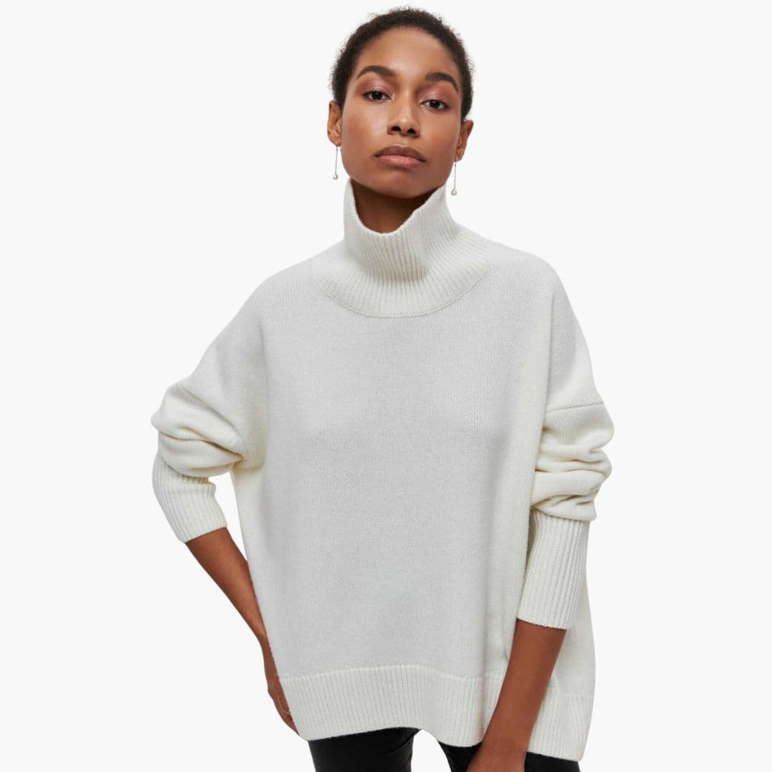 Dame sweater med høj hals og lange ærmer samt ribbet kant