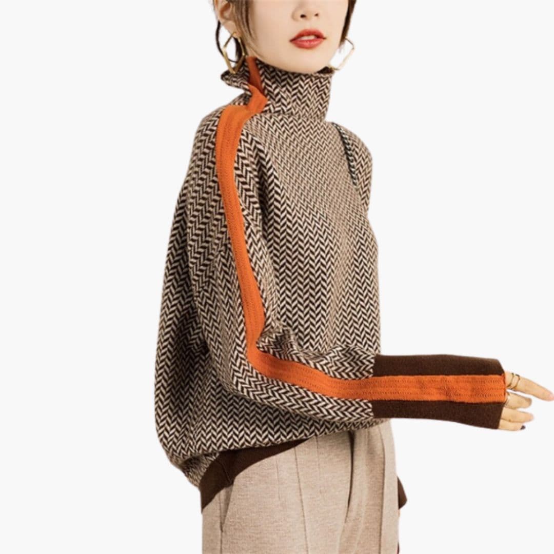 Dame sweater med zigzag mønster og kontrast detaljer