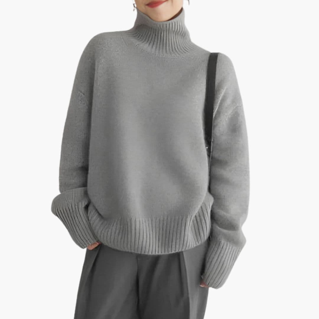 Dame sweater med rullekrave, lange ærmer og løs pasform