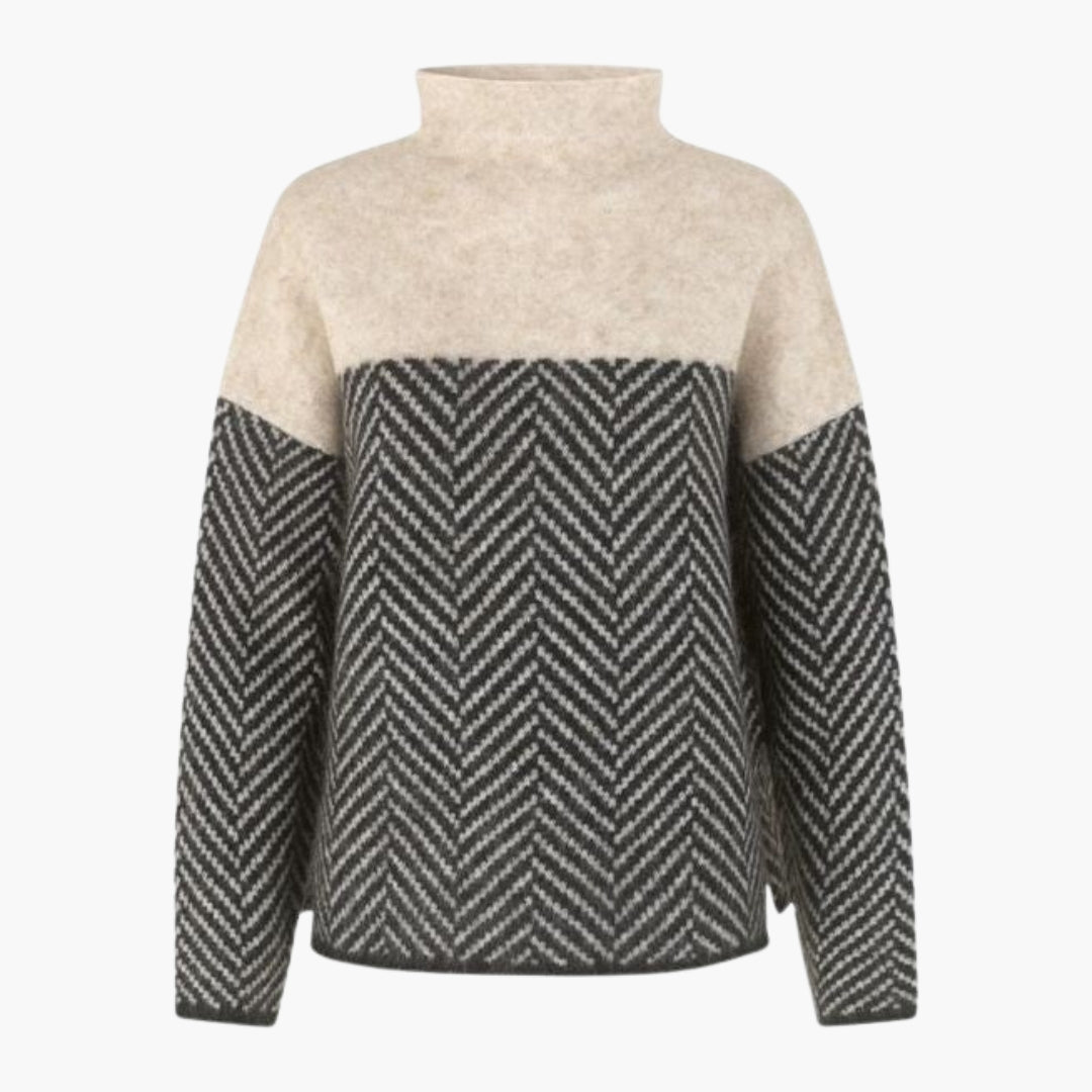 Dame sweater med høj hals og zigzag mønster