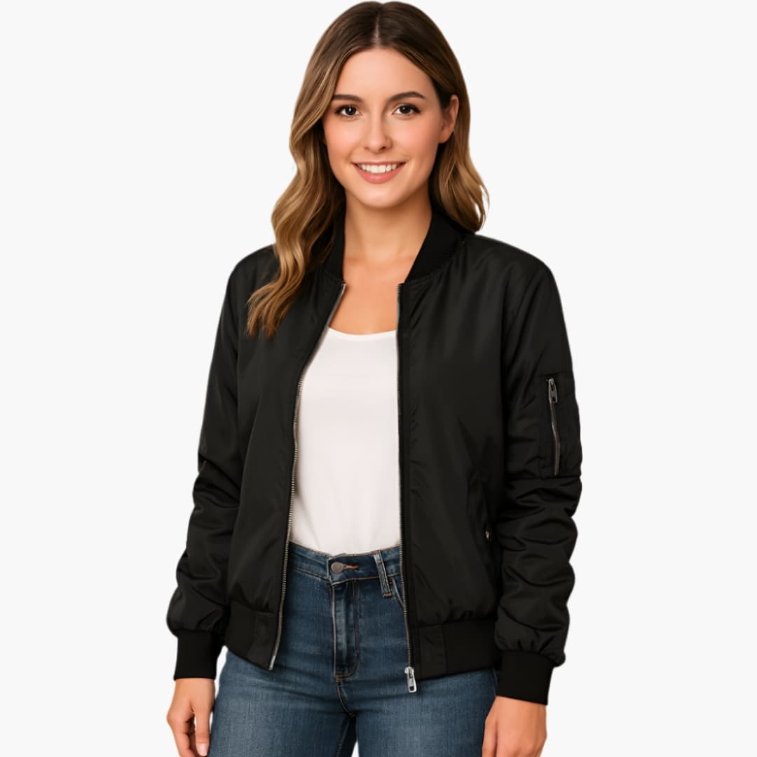 Dame Let Bomber med Lynlås og Ribbet Krave