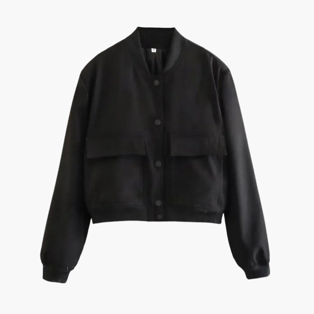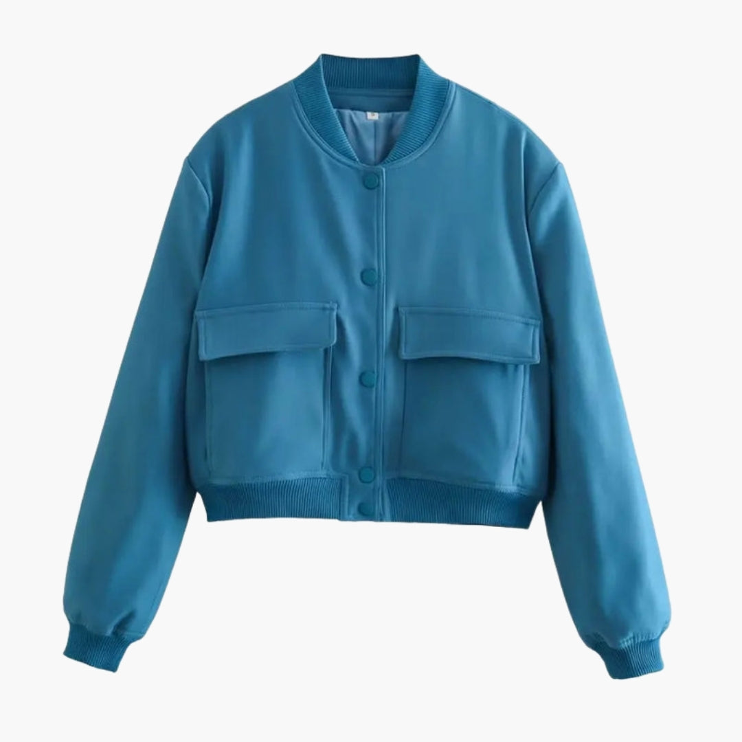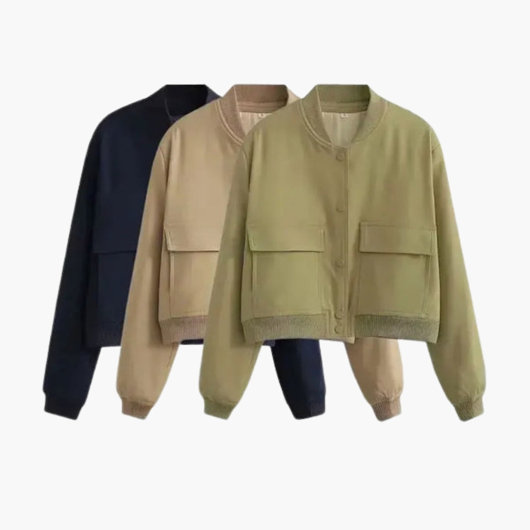 Dame Bomberjakke med Store Lommer med Klap