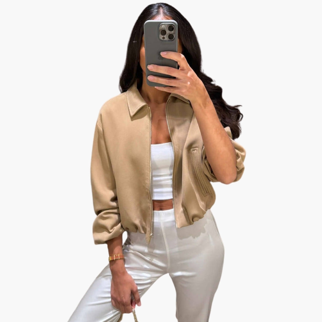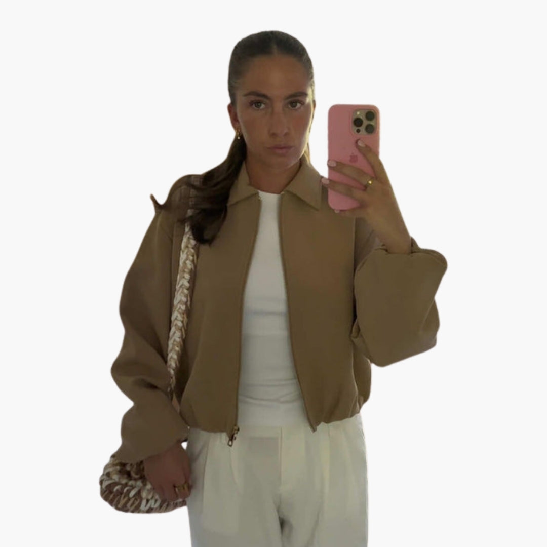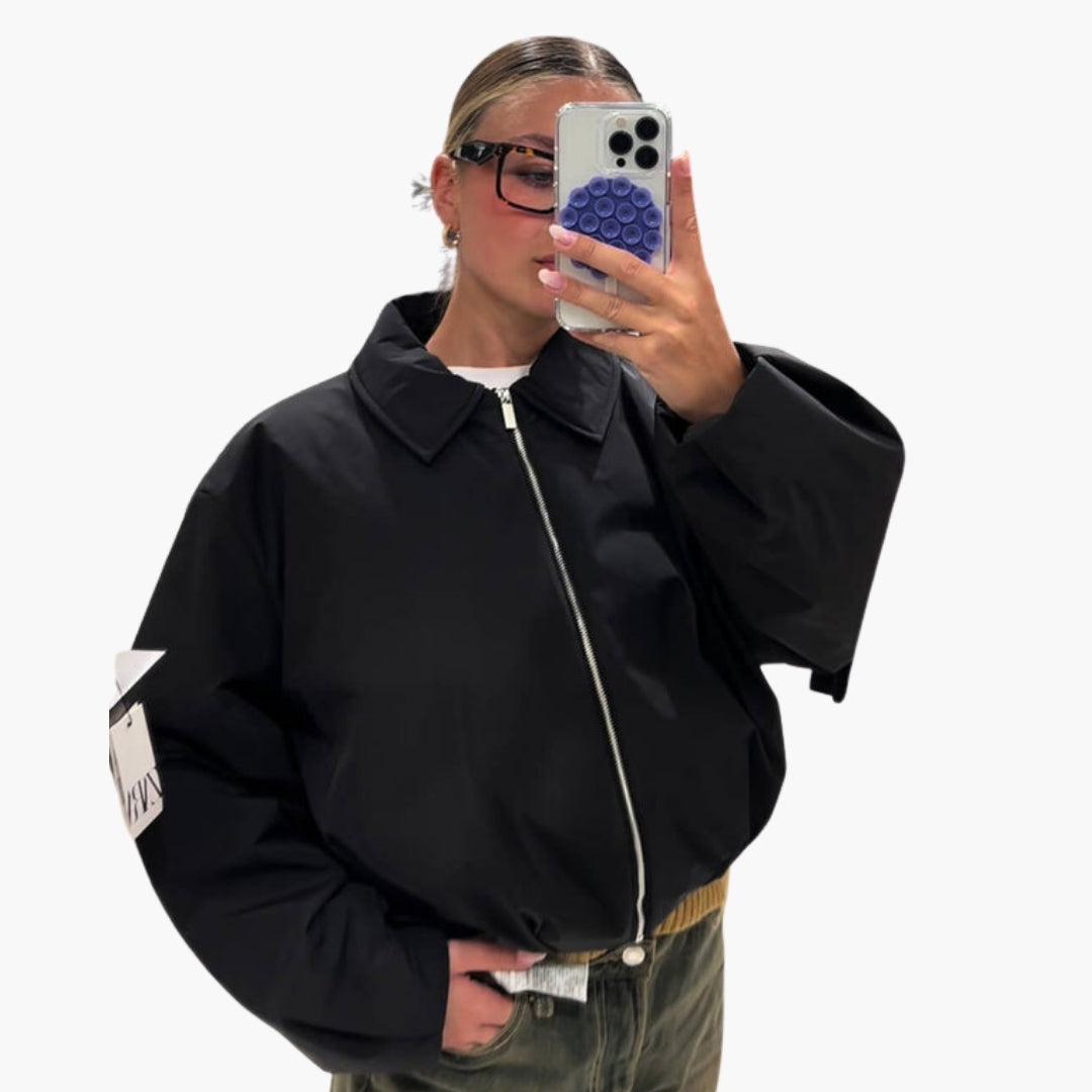 Dame bomberjakke med reverskrave og lange ærmer