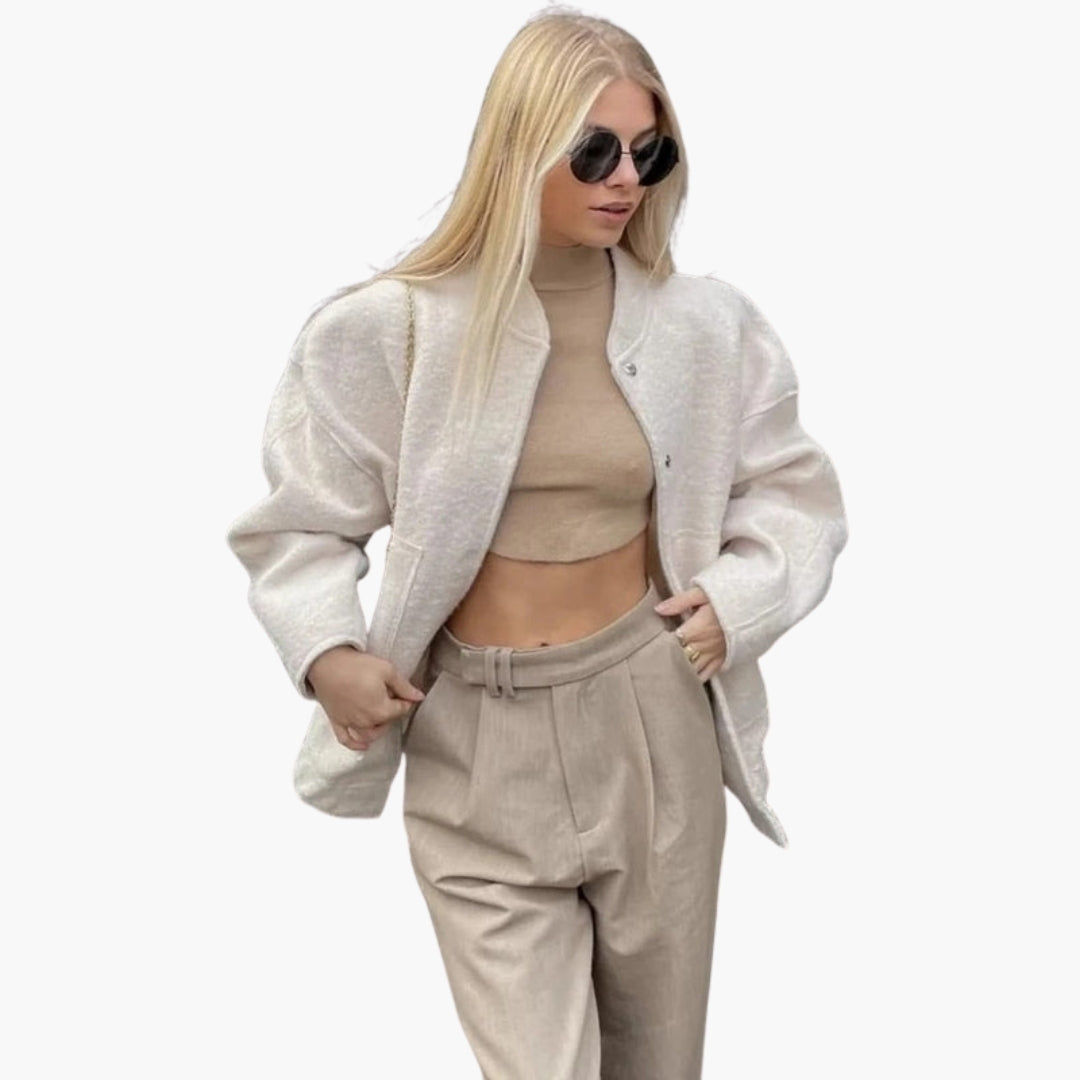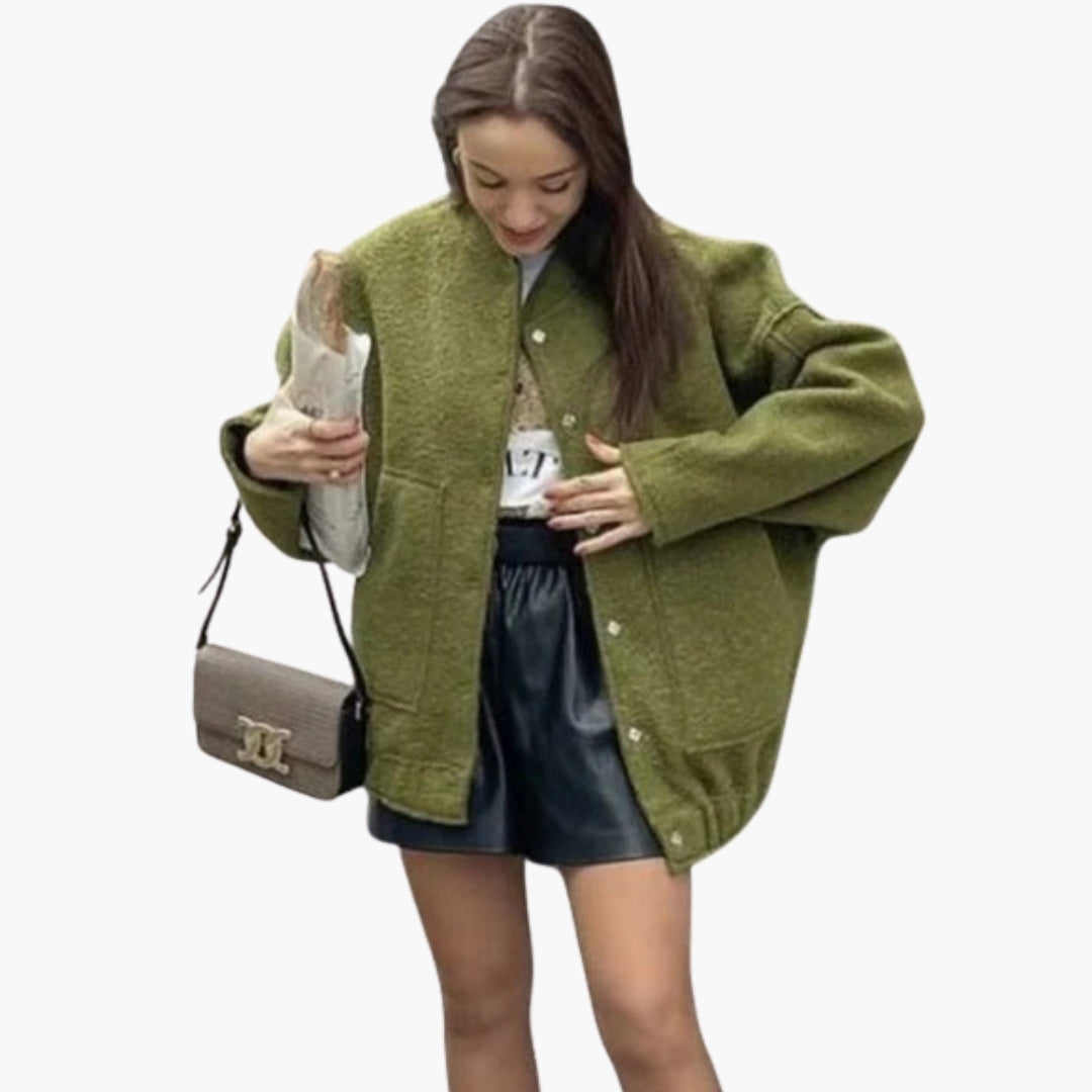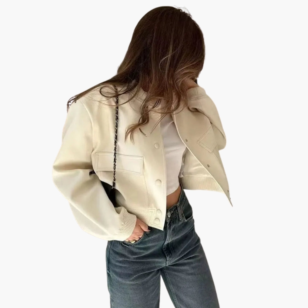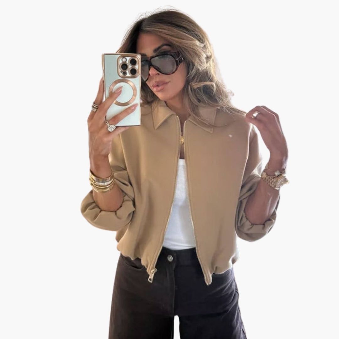 Dame bomberjakke med reverskrave og lange ærmer