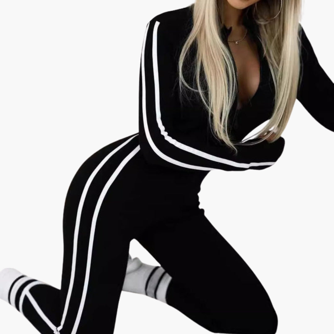 Dame jogging sæt med lynlås hoodie og snøre bukser