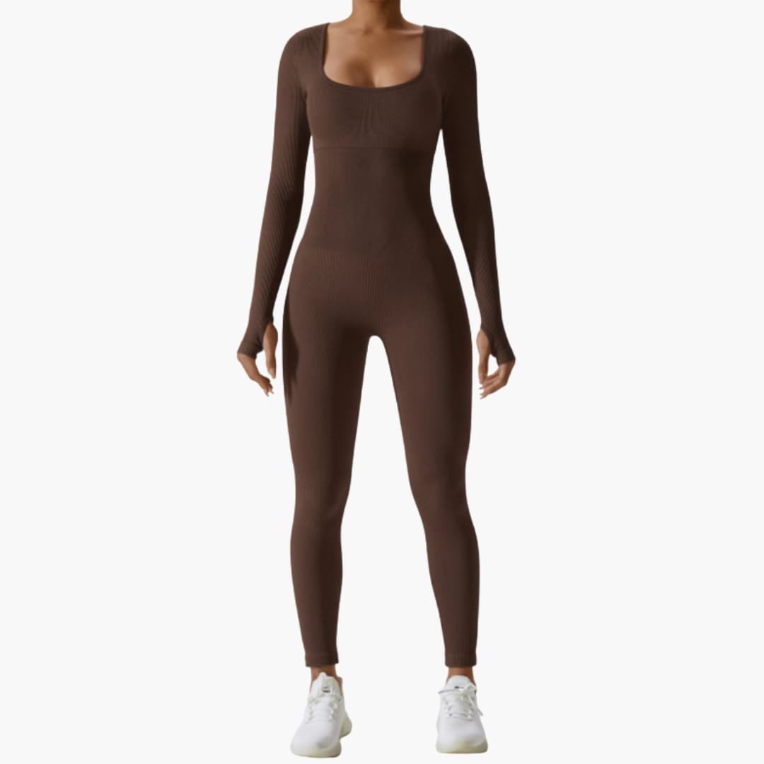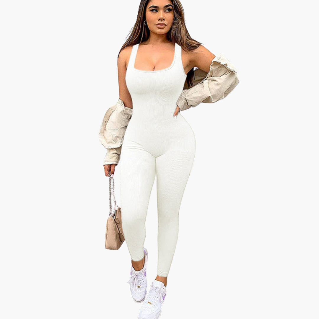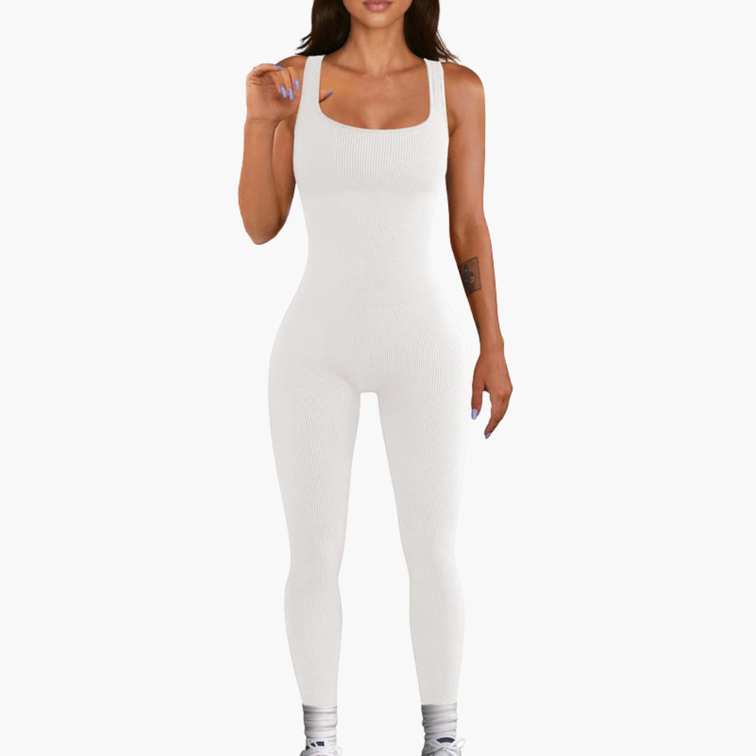 Dame jumpsuit med firkantet halsudskæring og ribbet overflade