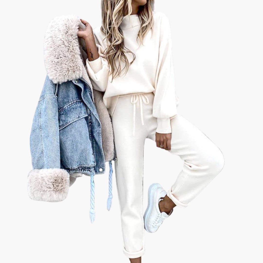 Dame Loungewear Sæt med Oversize Trøje og Høj Talje Joggingbukser
