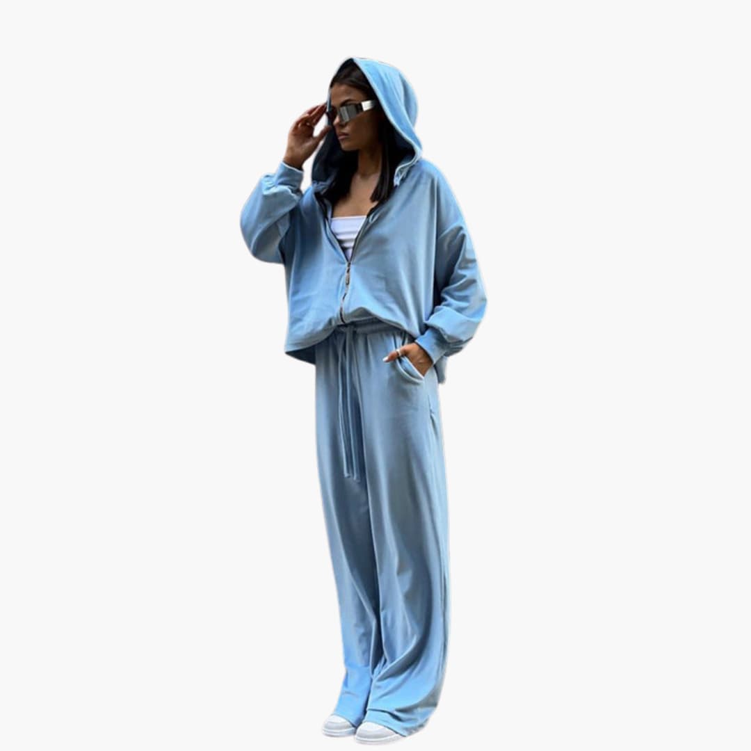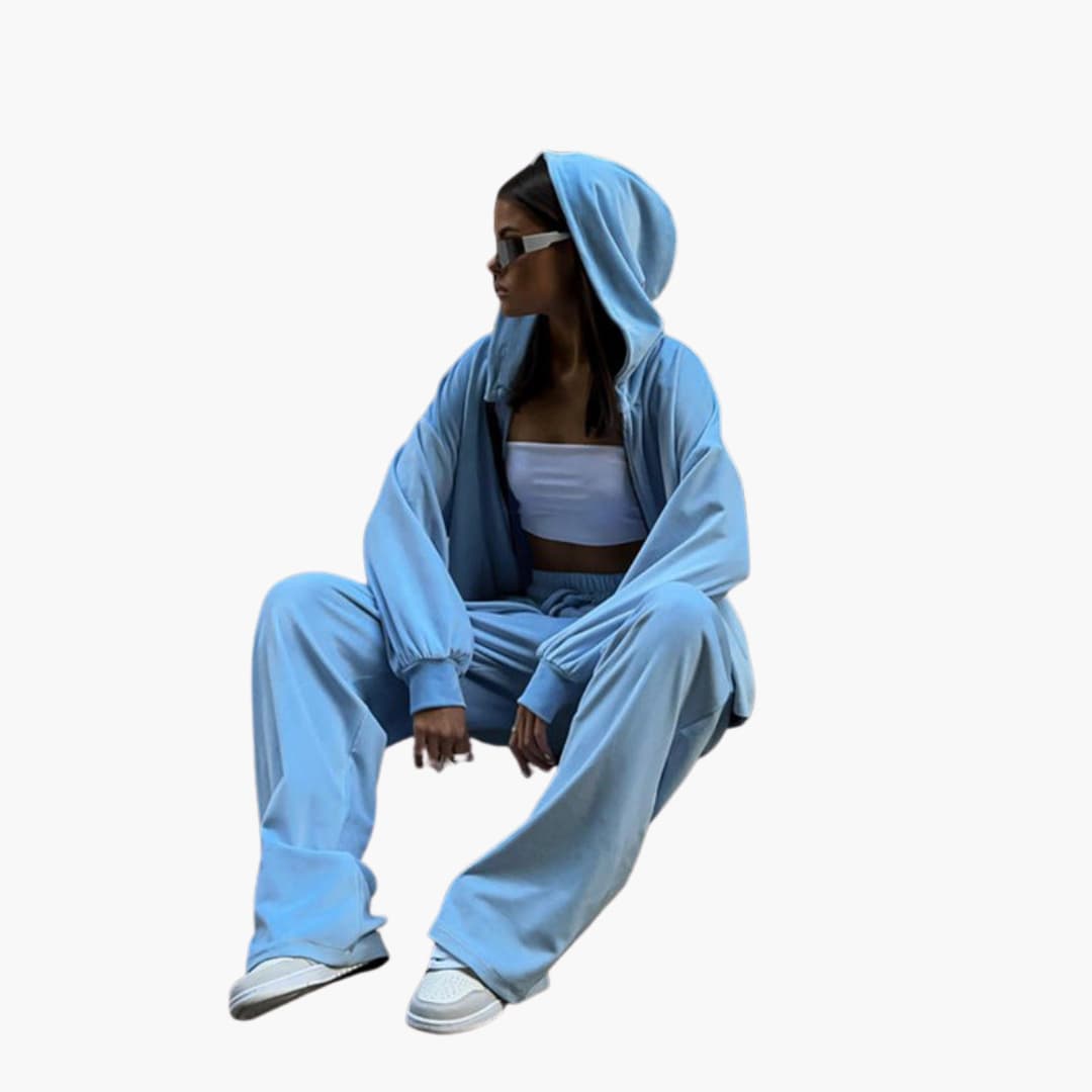 Dame jogging sæt med hættejakke og brede bukser