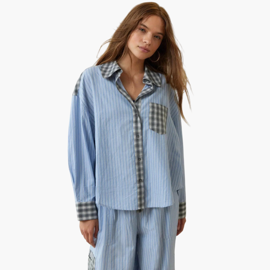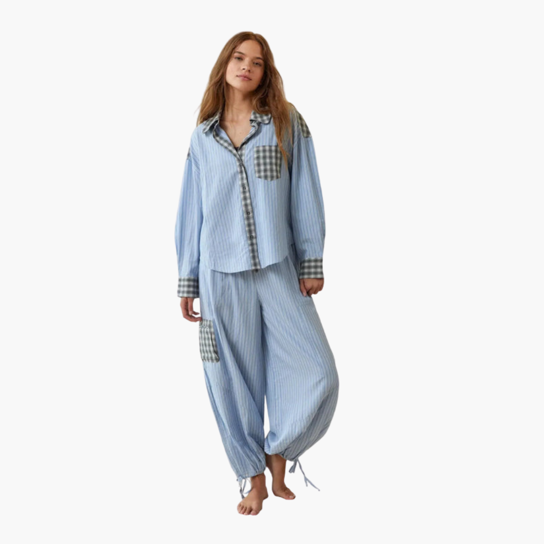 Dame pyjamasæt med knaplukning og elastisk talje