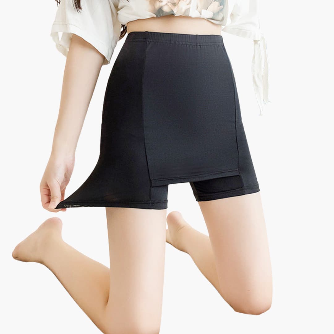 Dame nederdel med indbygget shorts og bred talje