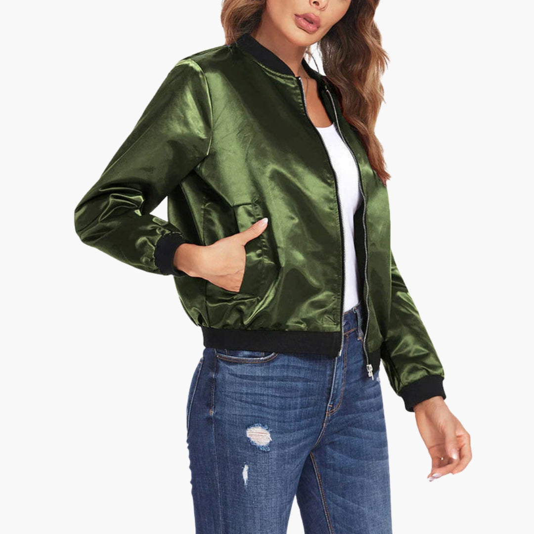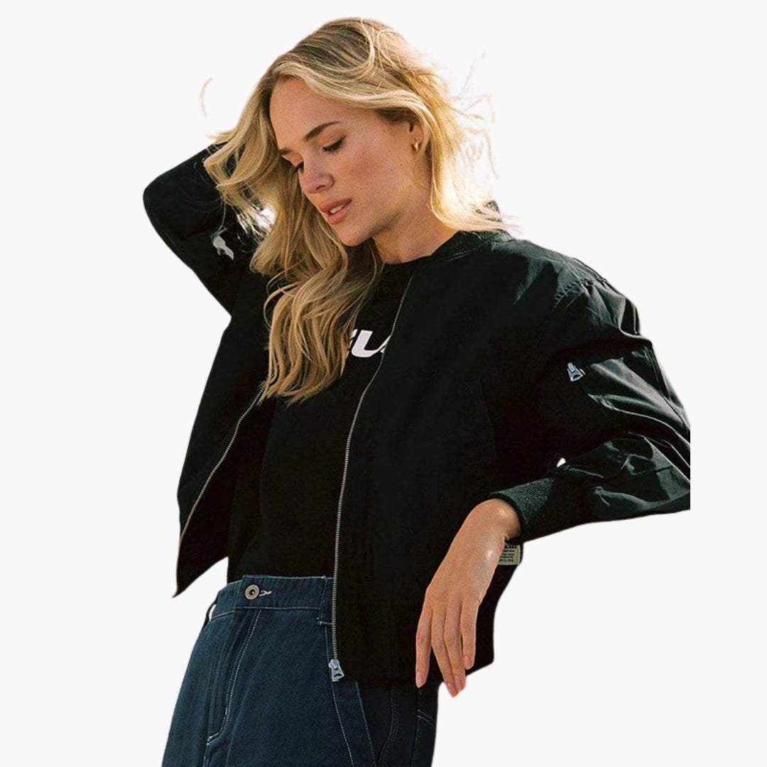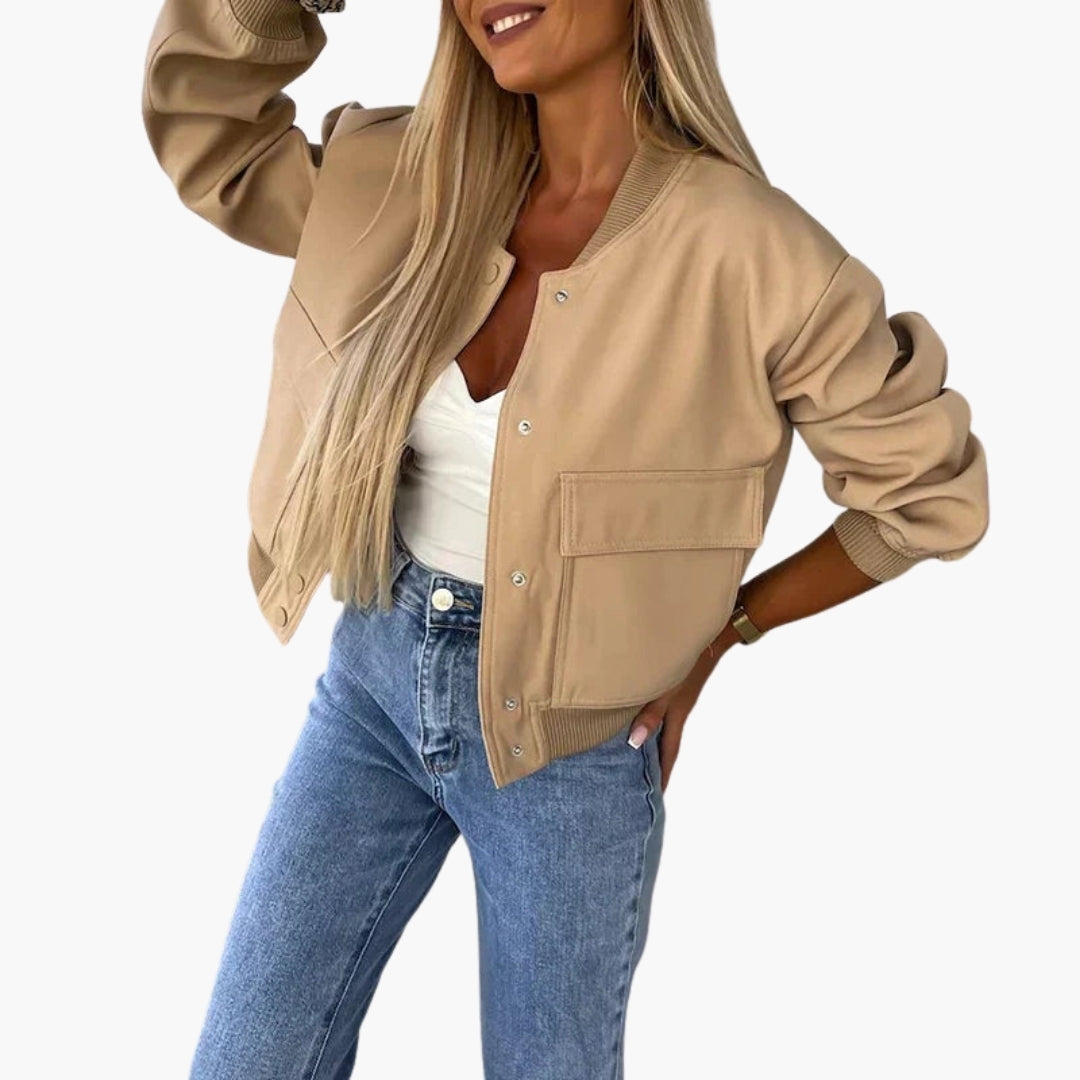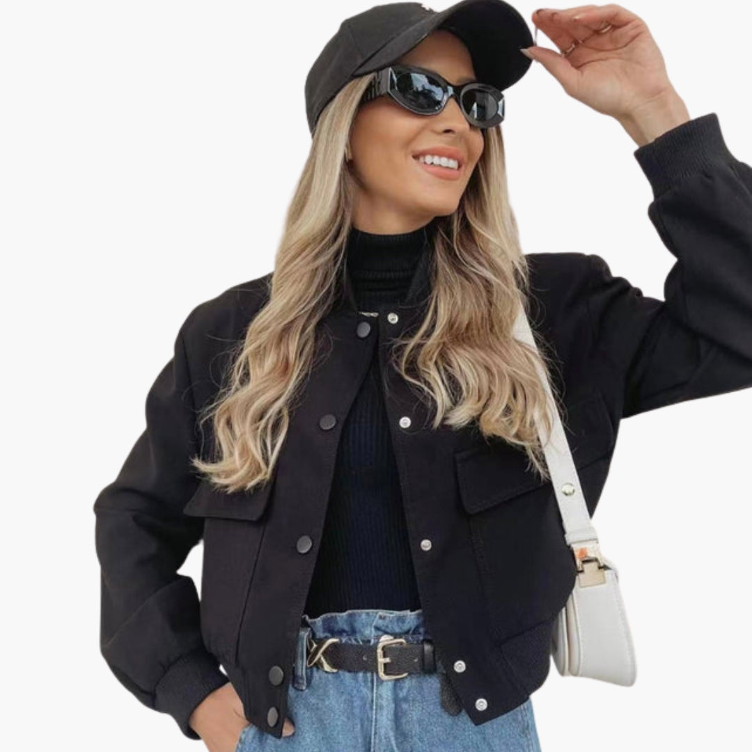 Dame bomberjakke med trykknaplukning