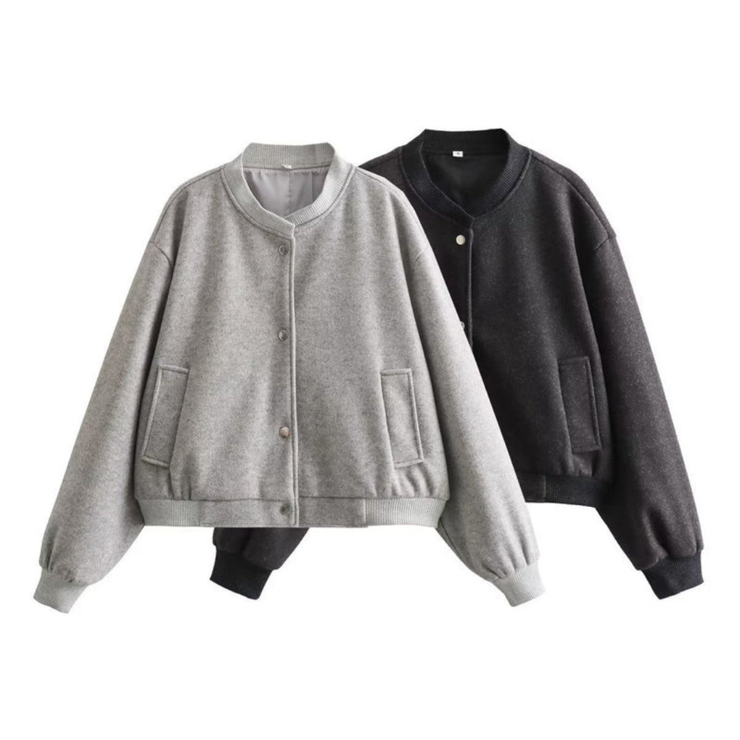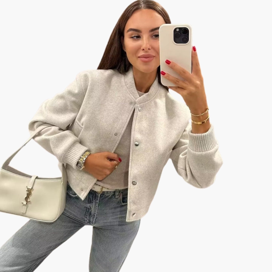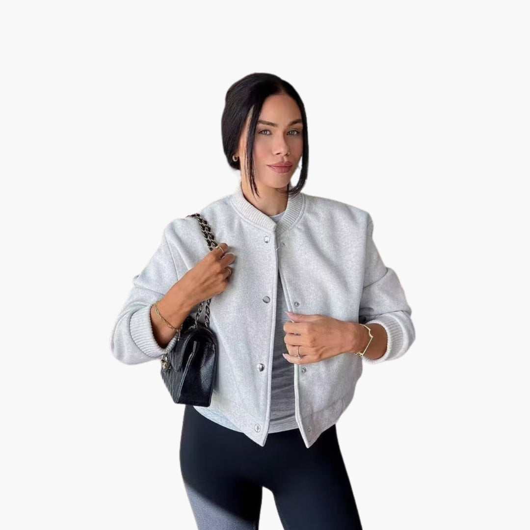 Dame Bomberjakke med Trykknaplukning