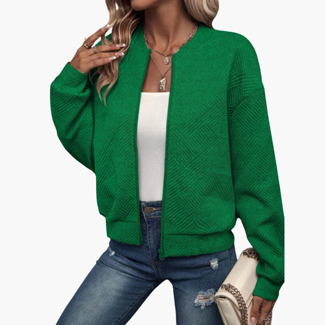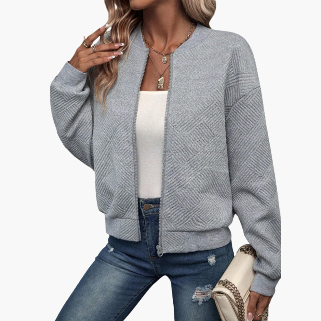 Dame bomberjakke med tekstureret overflade og lynlås