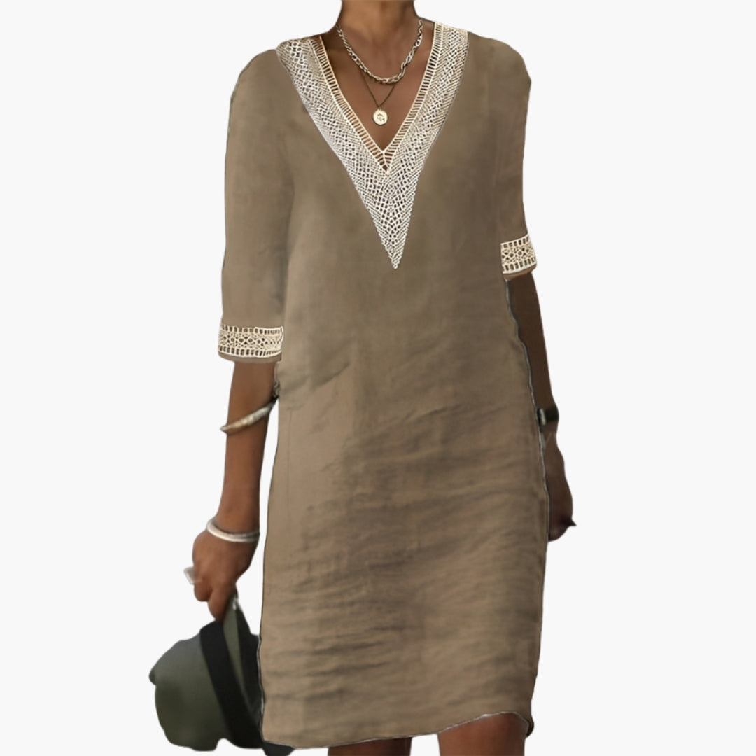 Dame afslapningssæt i strik med V-hals og bukser med elastisk talje