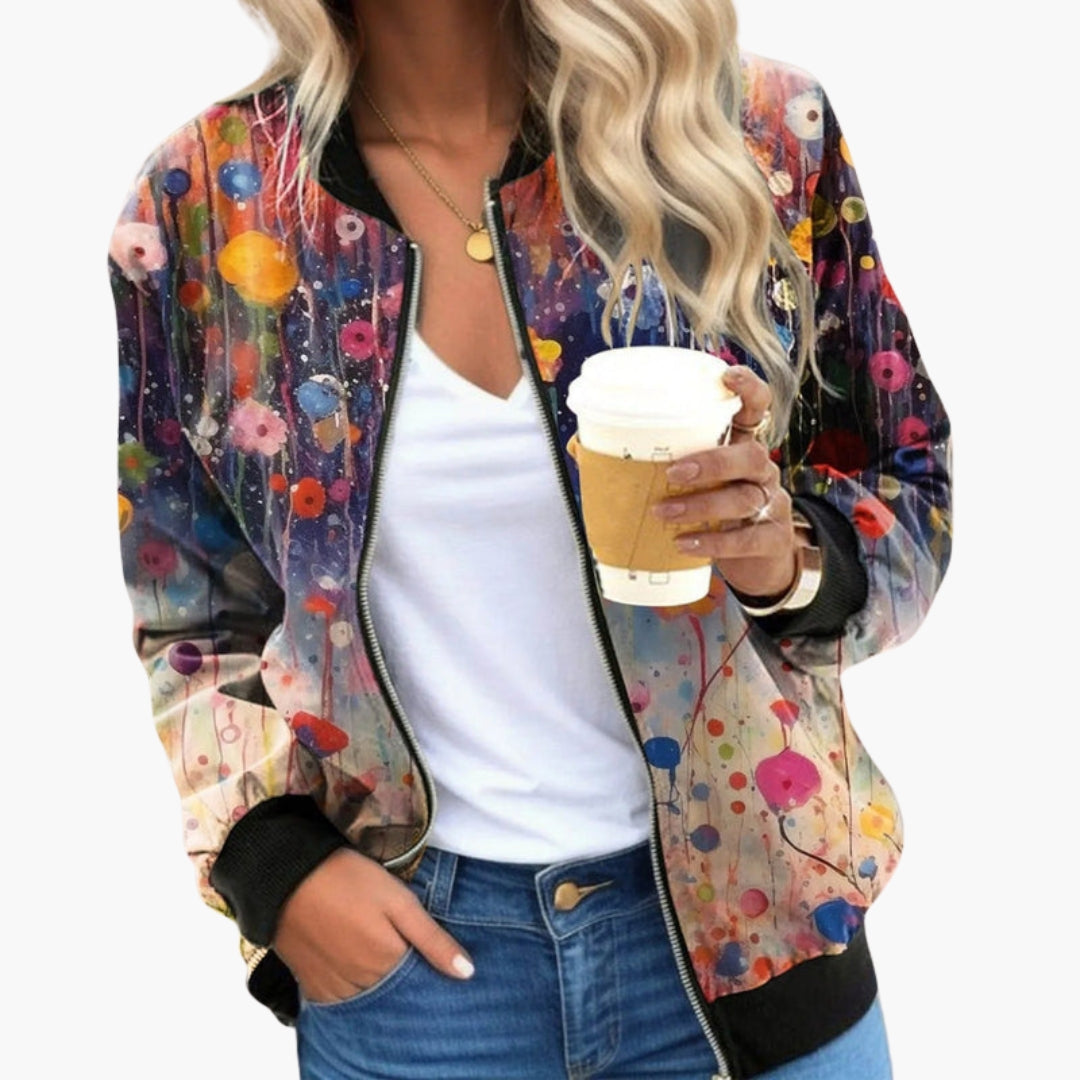Blouson Bombers Dame med Blomsterprint og Ribkant