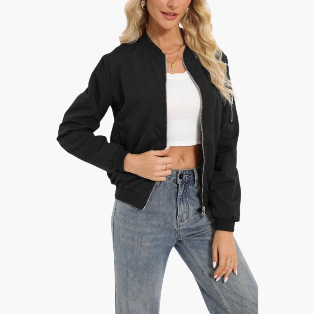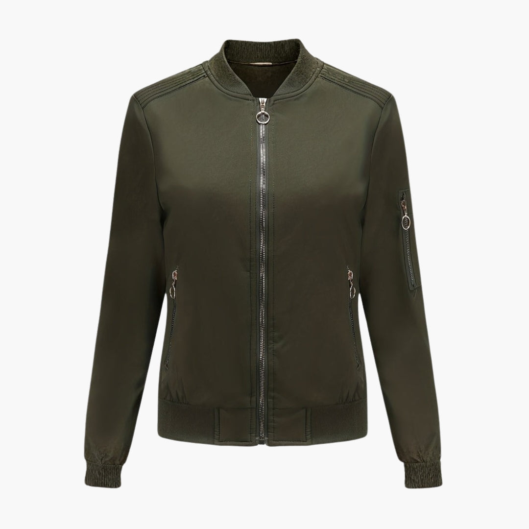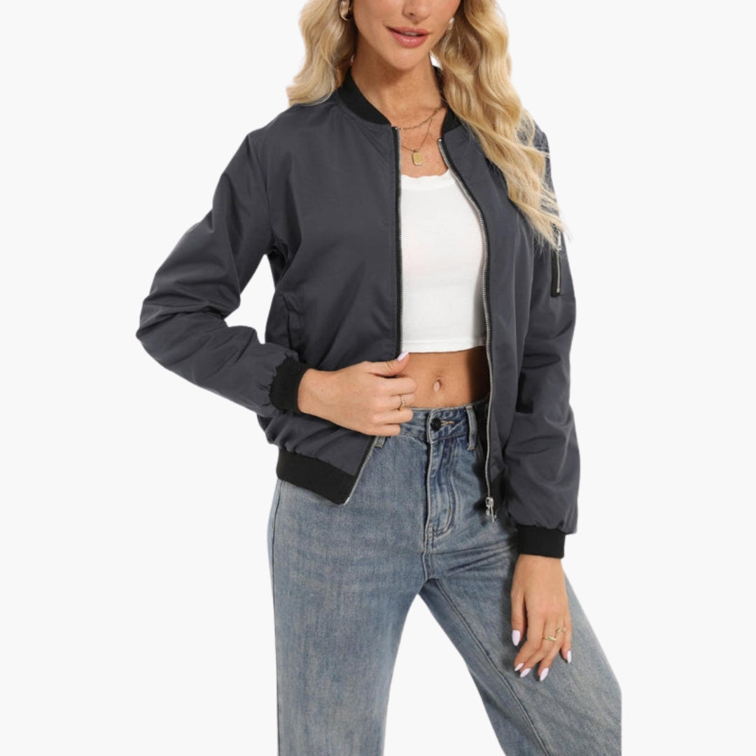 Dame Bomberjakke med Baseballkrave og Praktiske Lynlåslommer