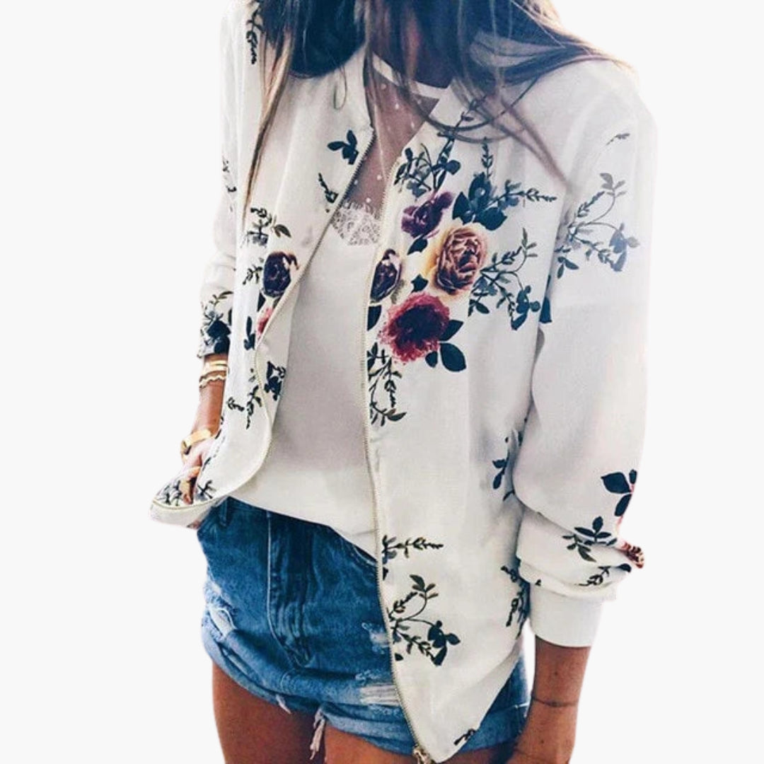 Dame bomberjakke med blomsterprint