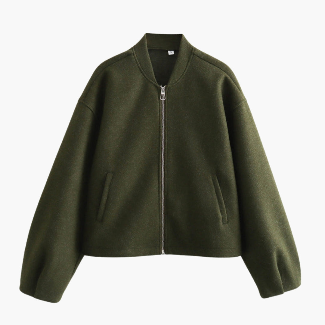 Dame bomberjakke med høj krave og lige pasform