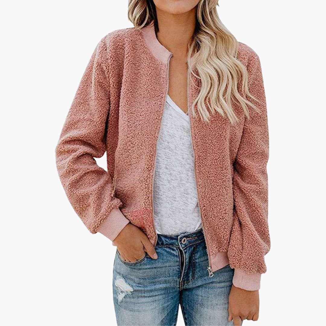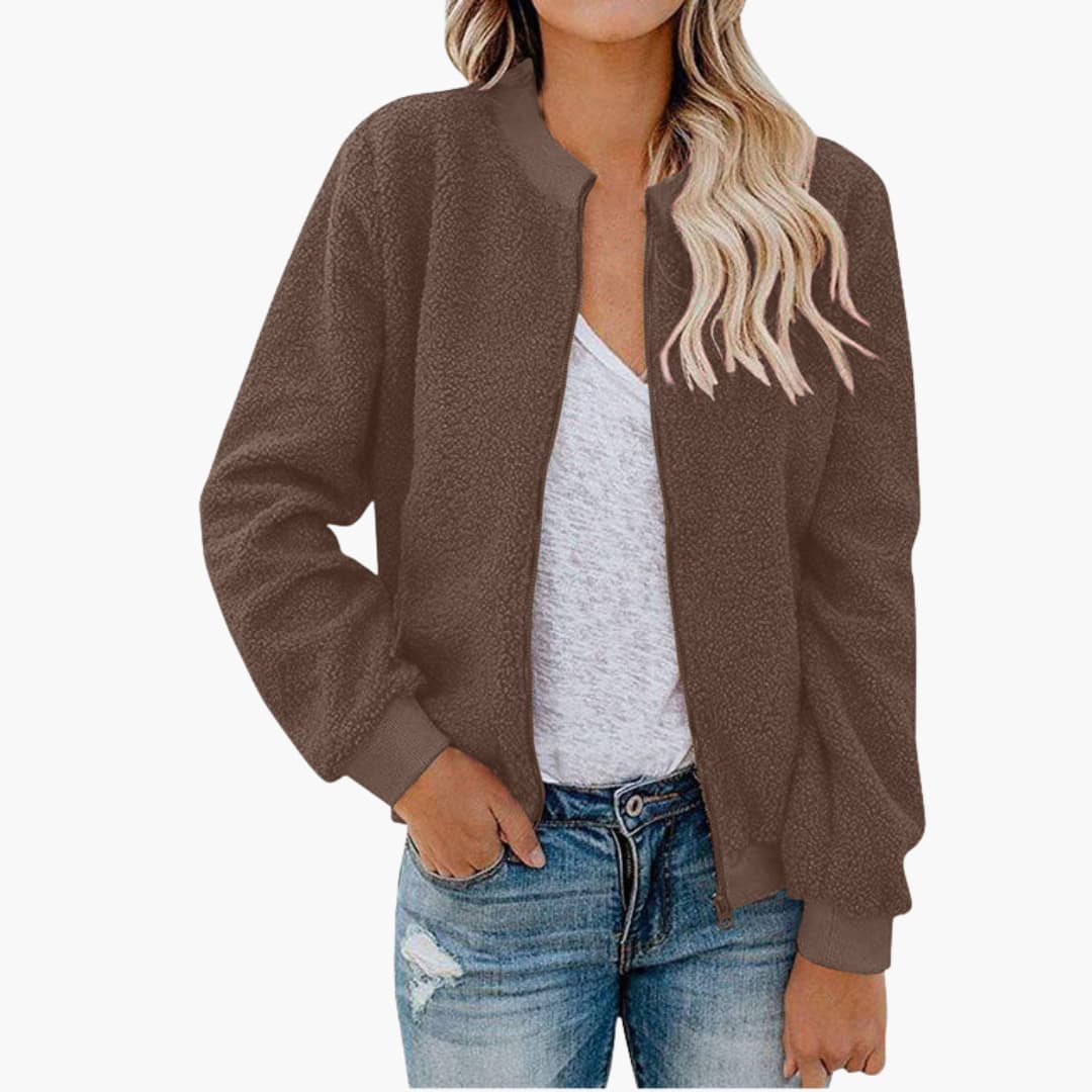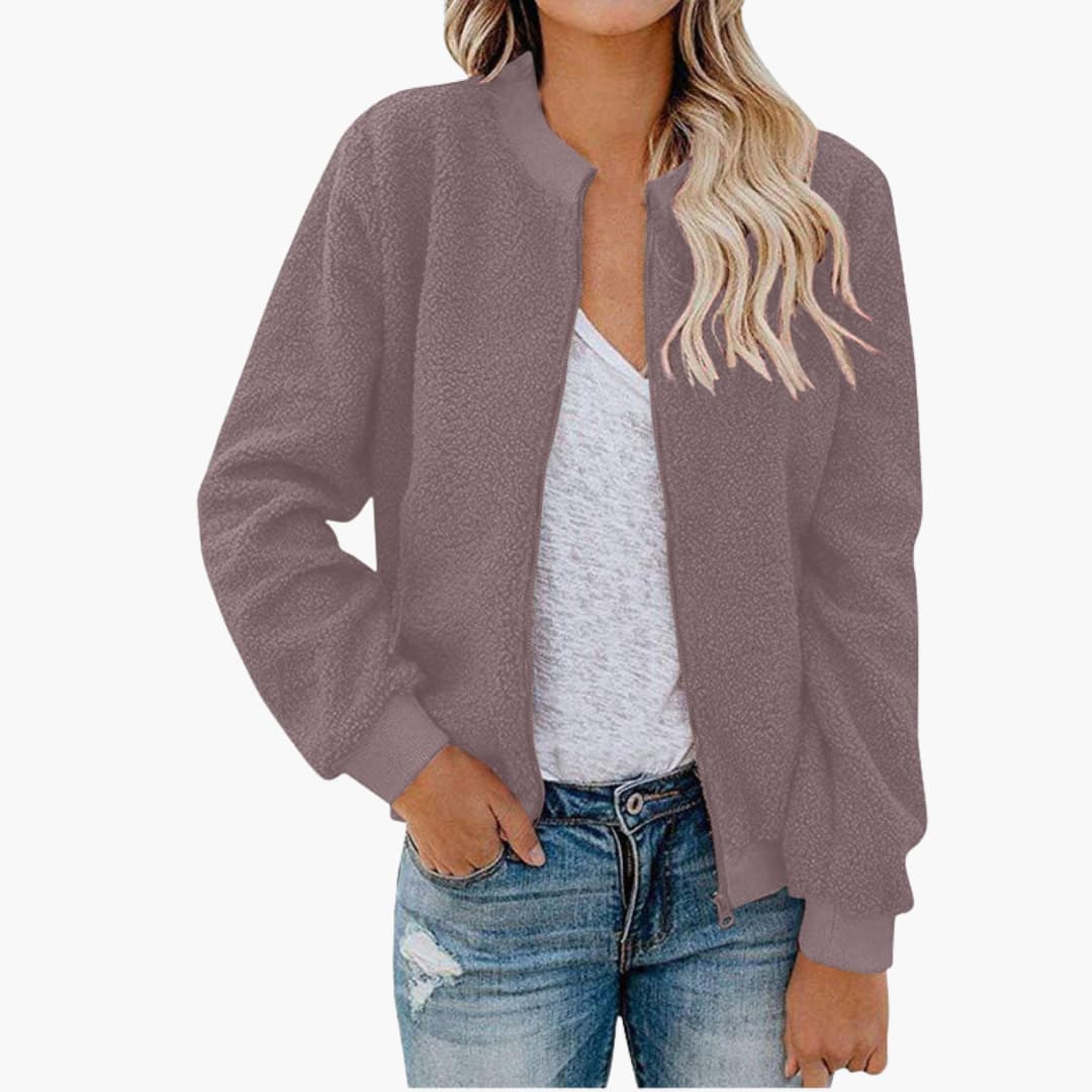 Dame bomberjakke i fleece med lynlås