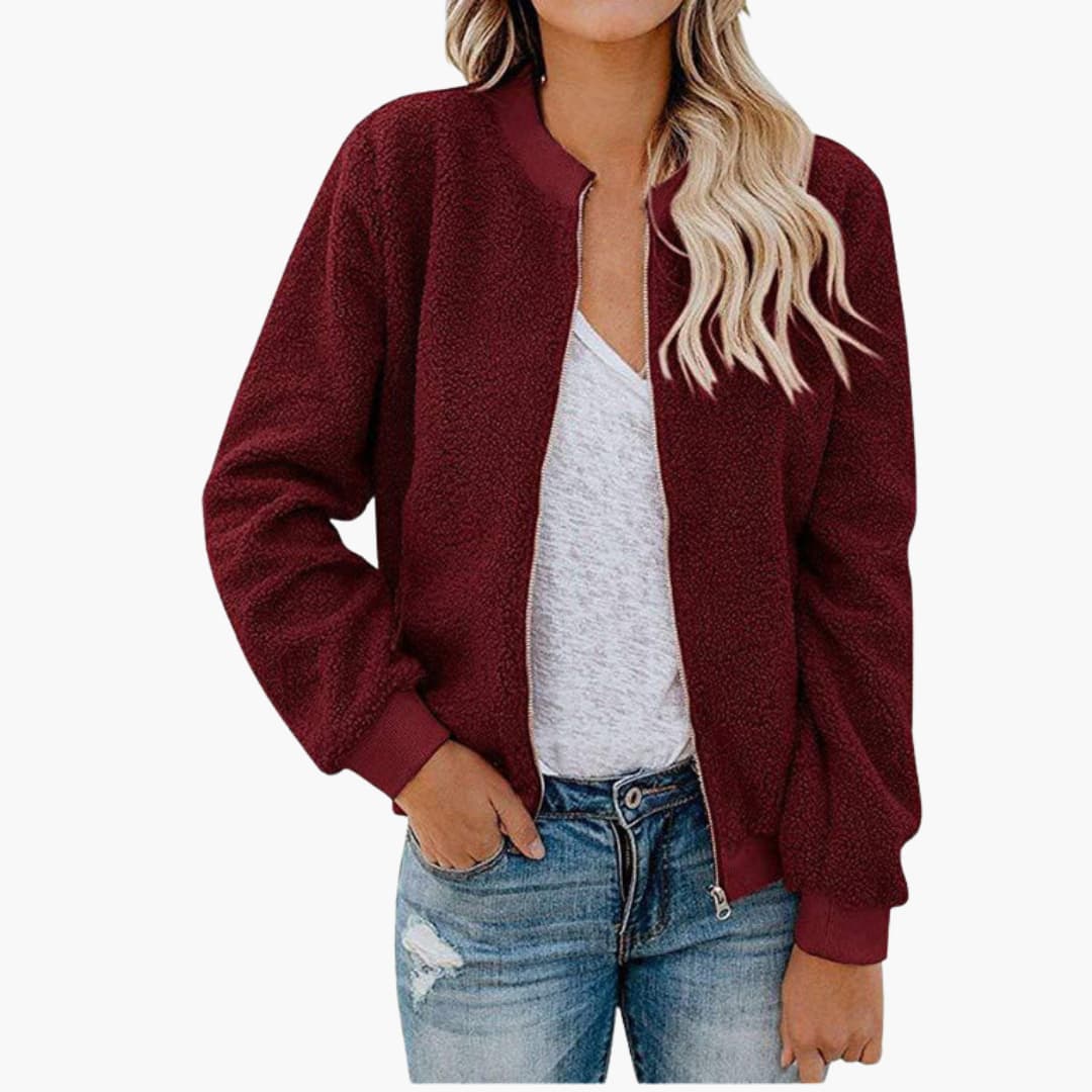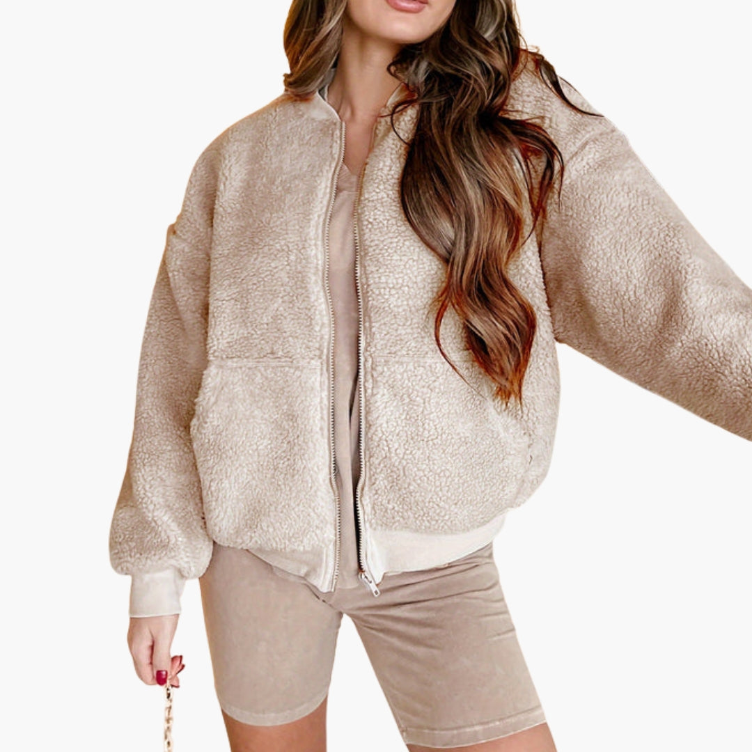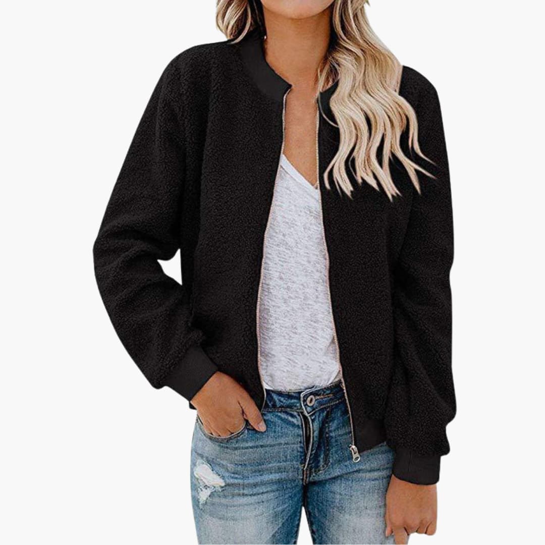 Dame bomberjakke i fleece med lynlås