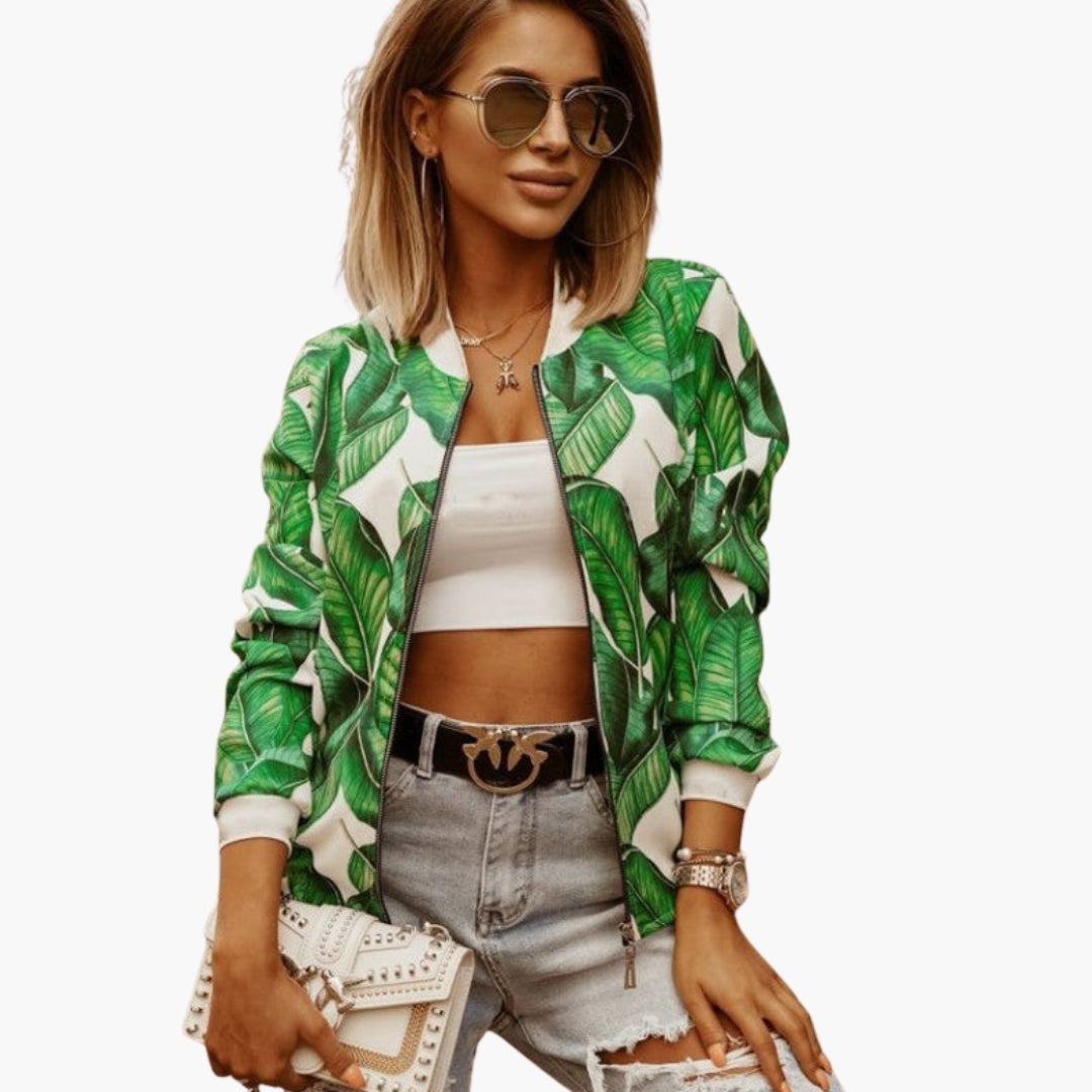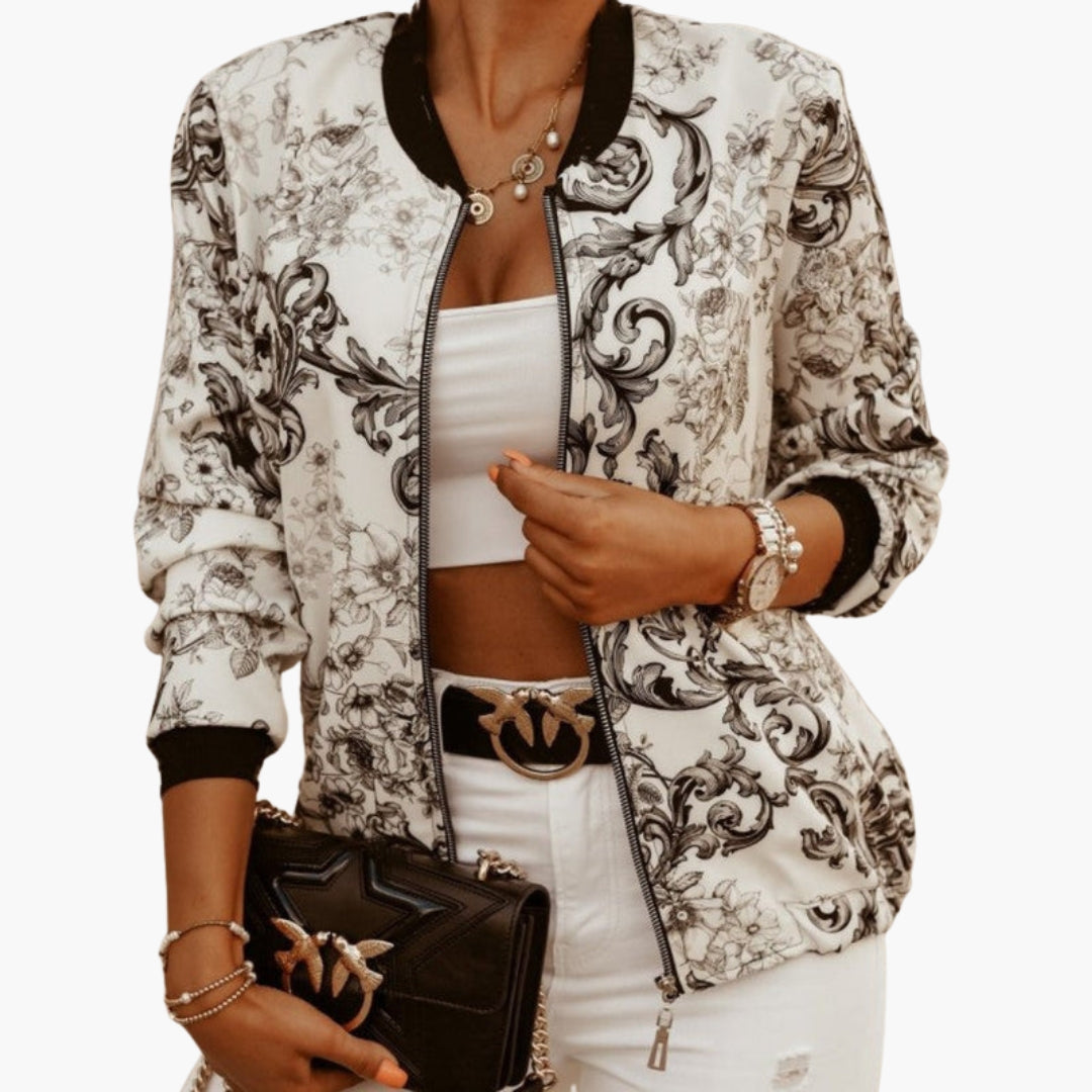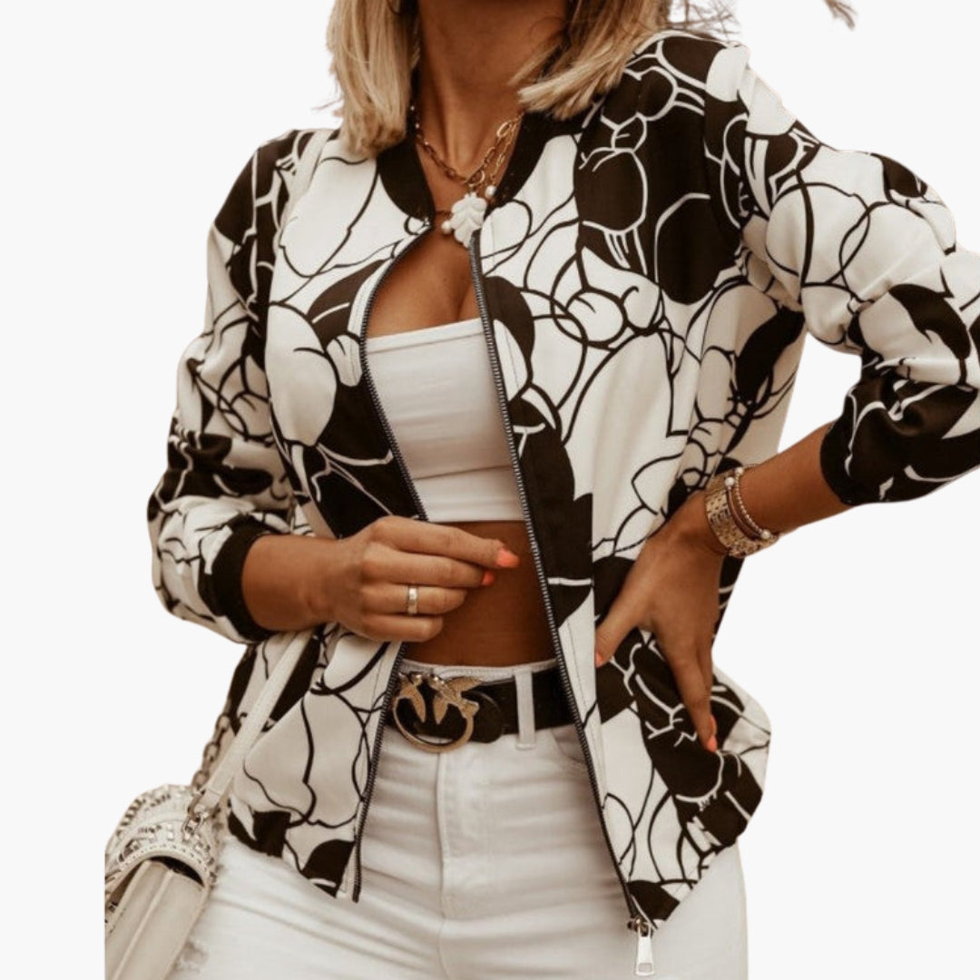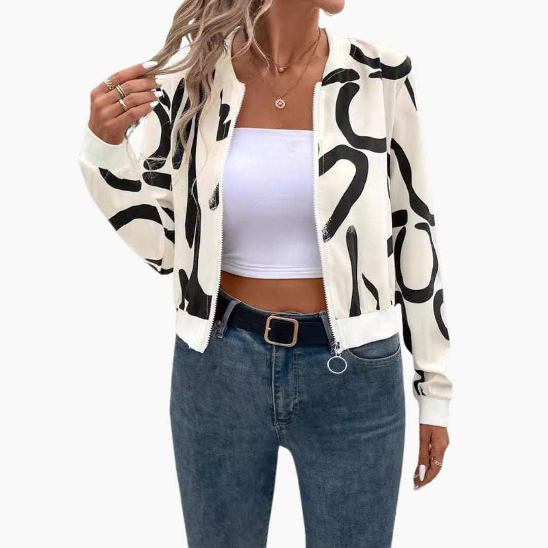 Blouson Bombardier Dame med Kunstnerisk Mønster og Lynlås