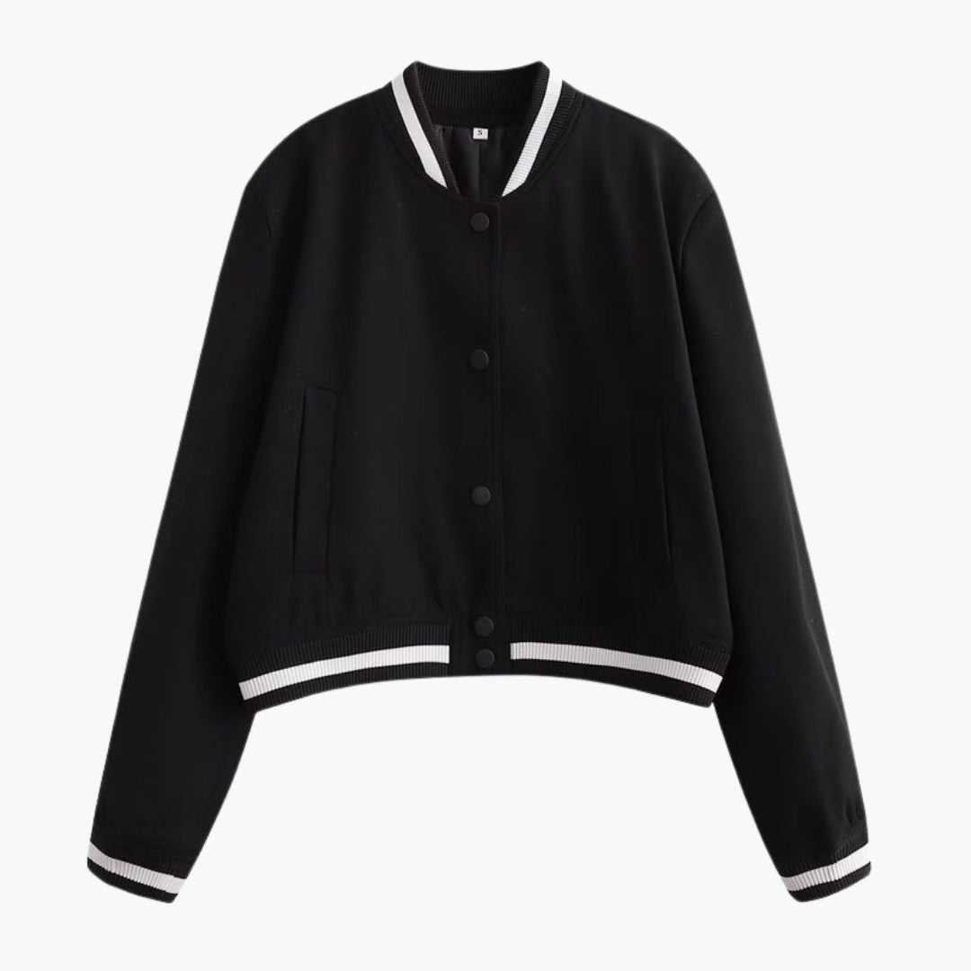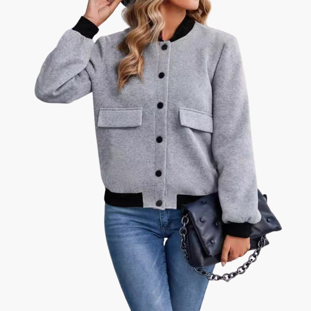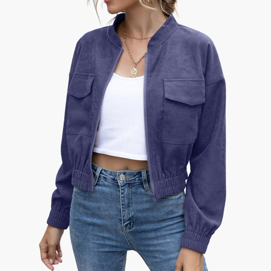 Dame Blouson Bomber med Ribbet Finish og Lommer