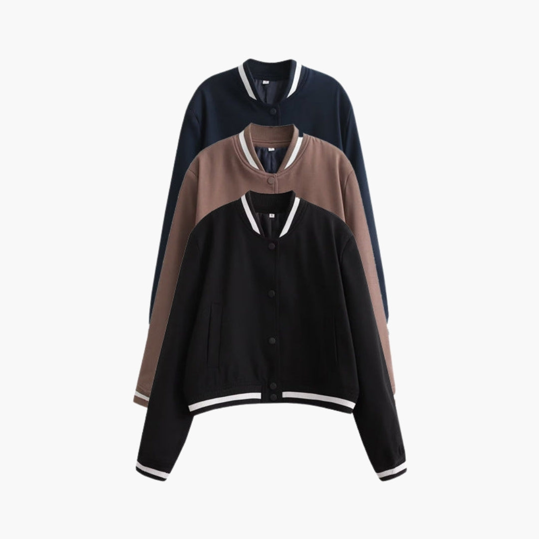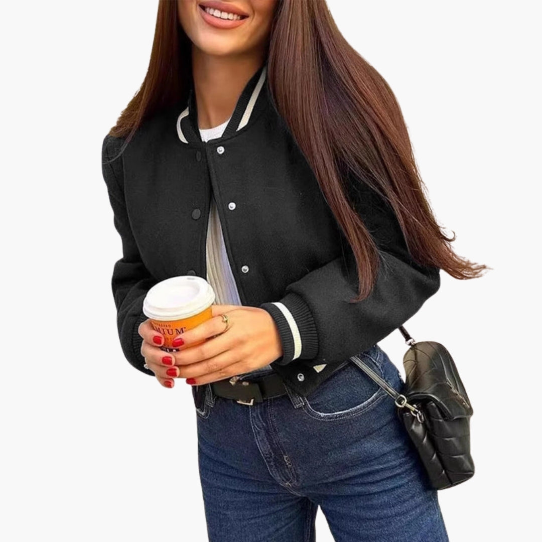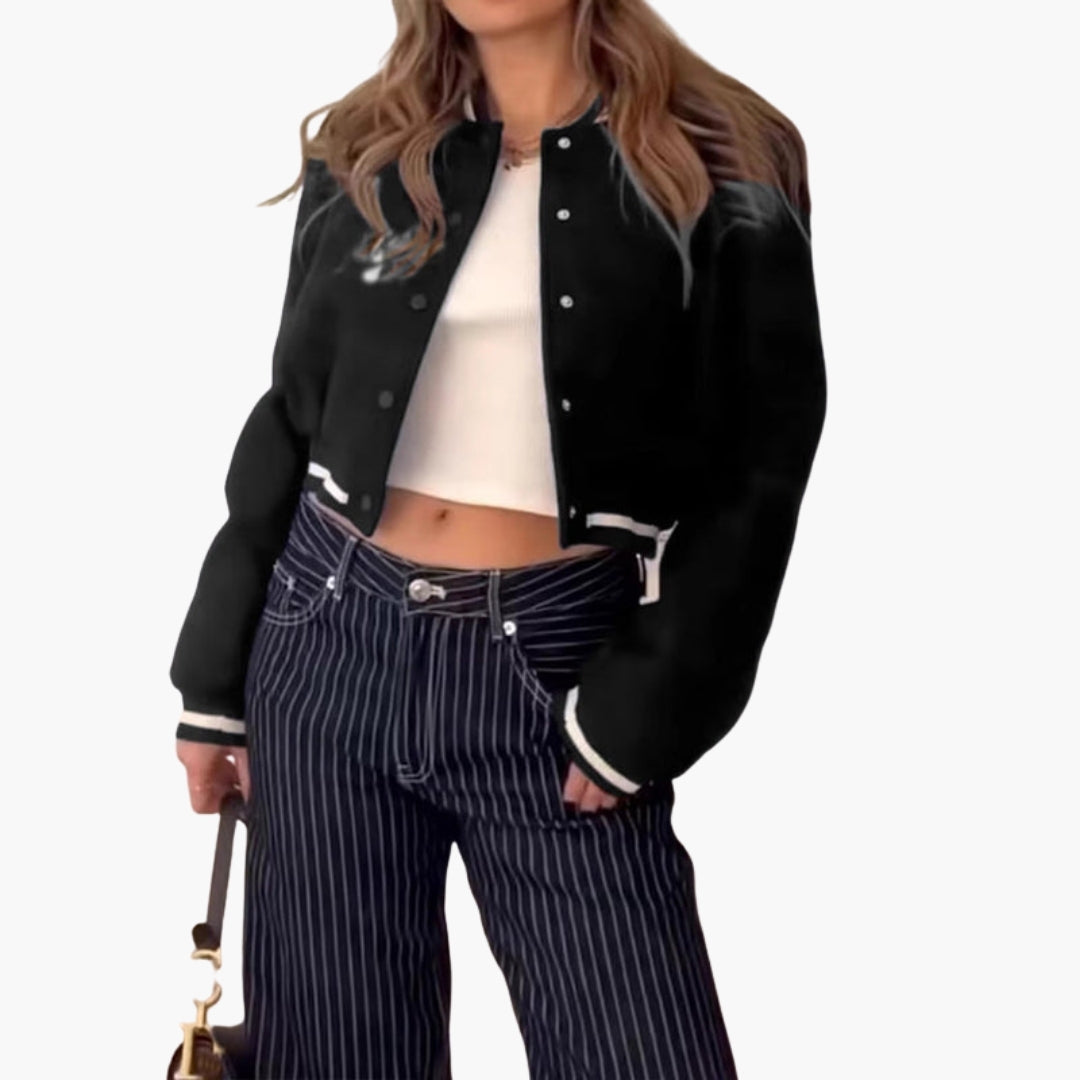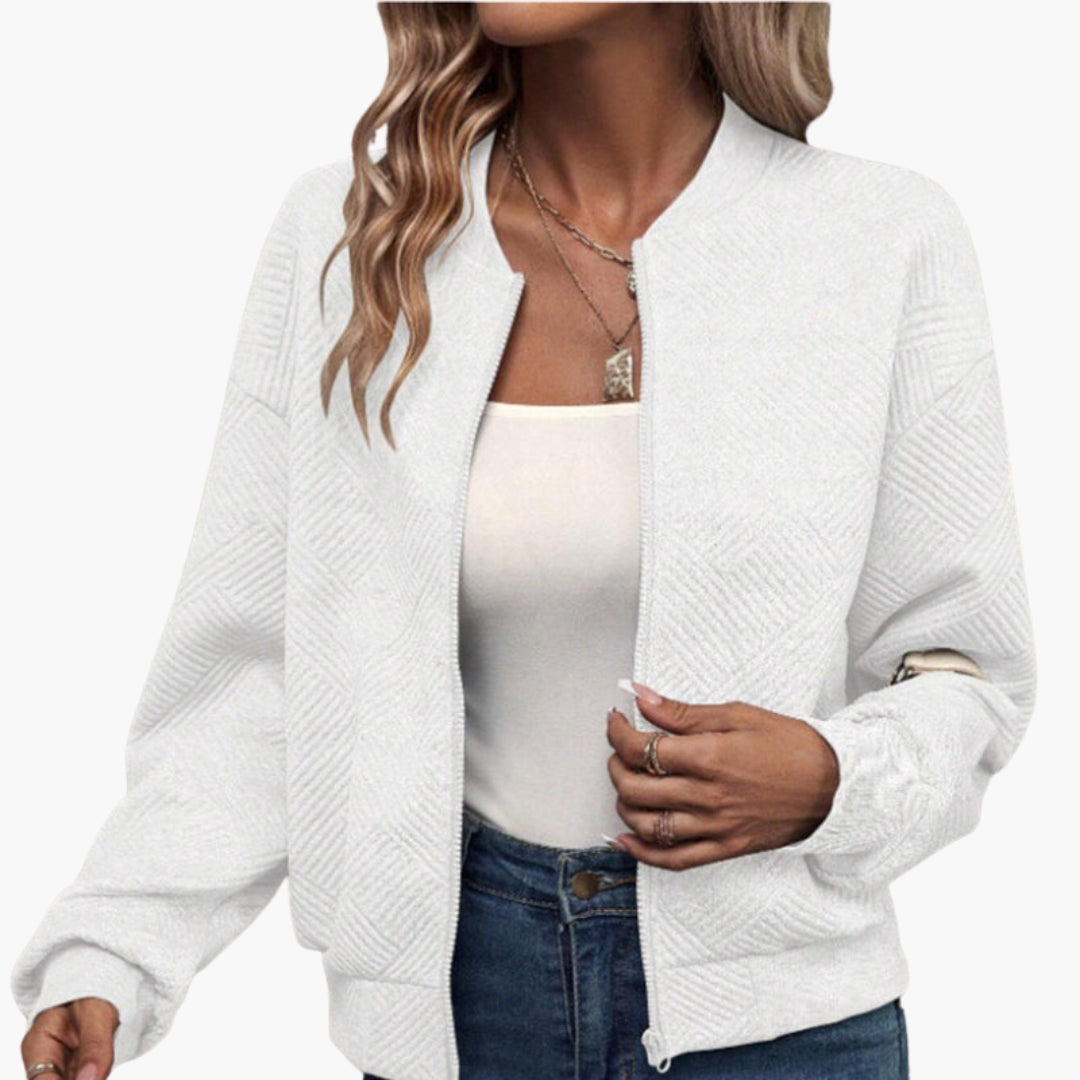 Dame Blouson Bomber med Ribbet Finish og Lommer