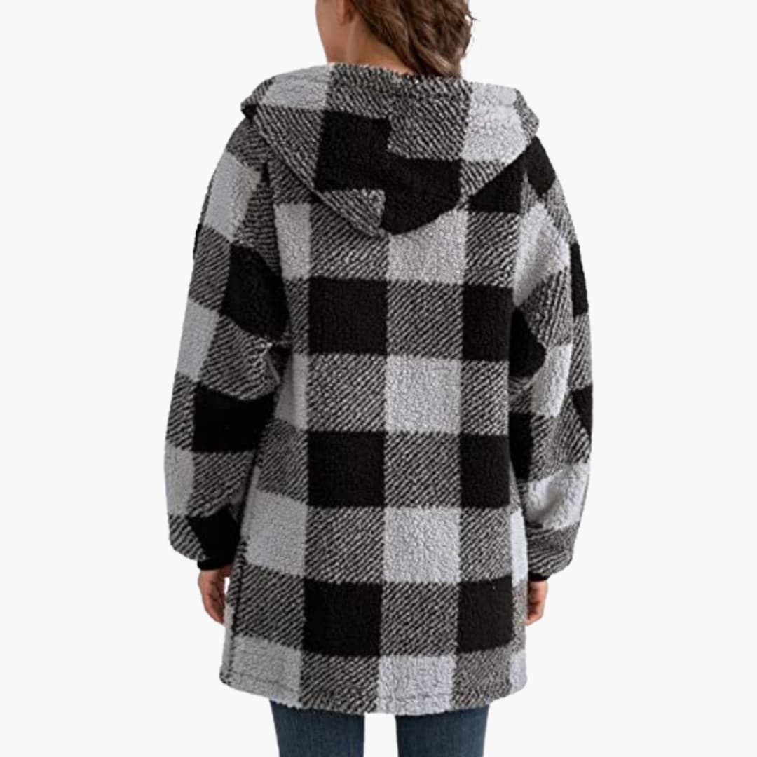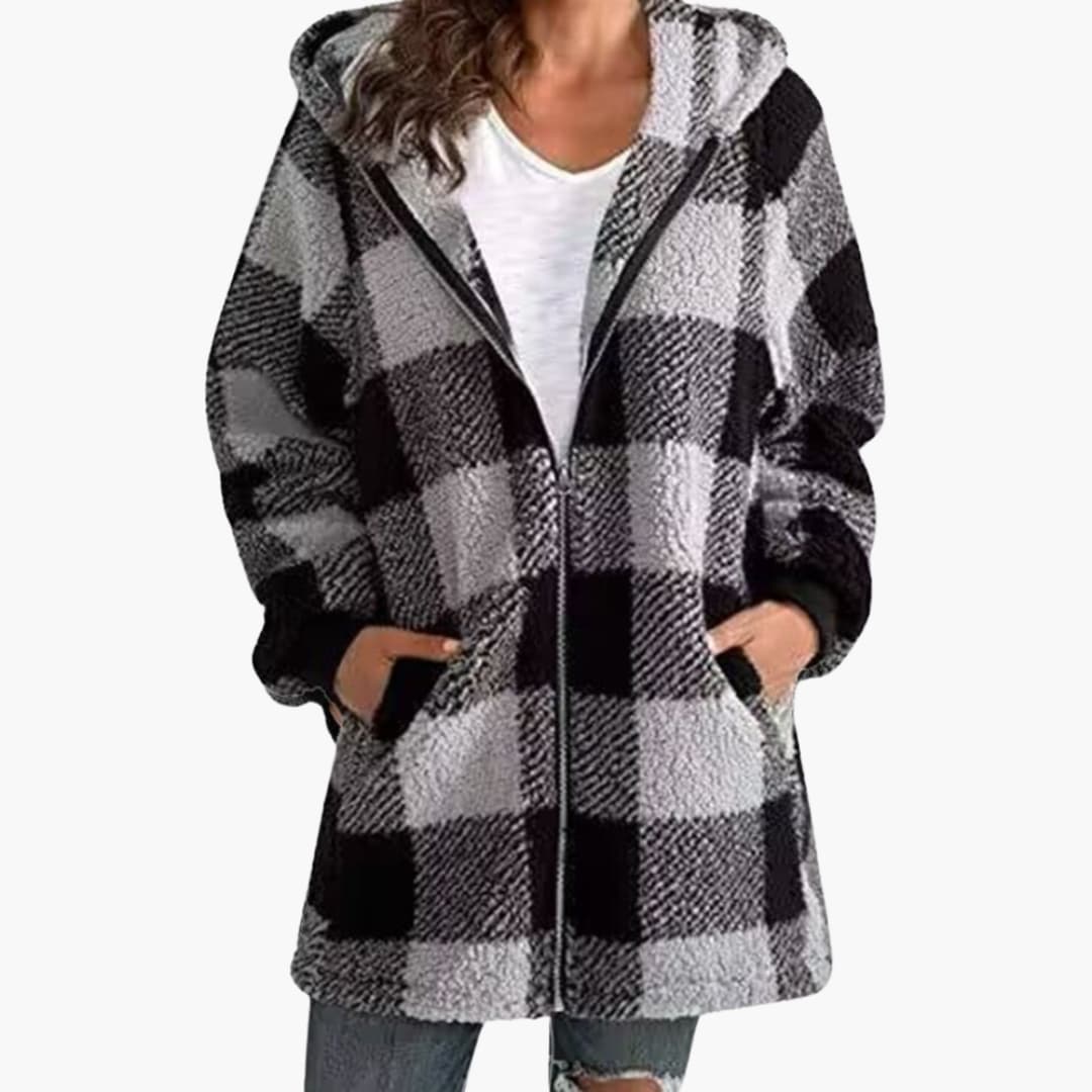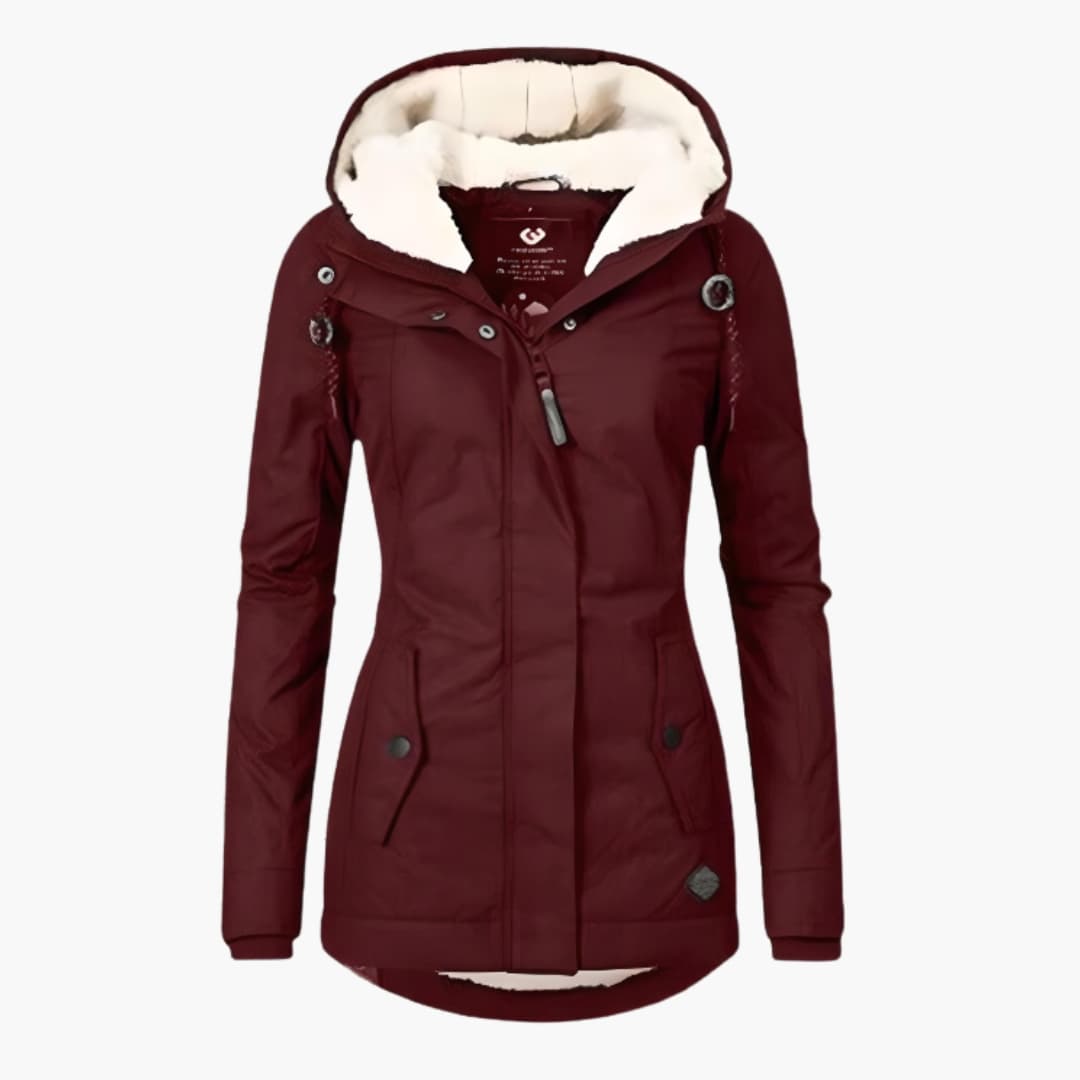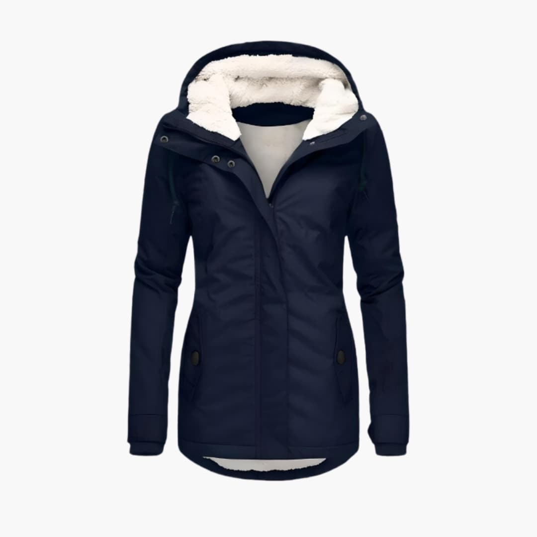 Damejakke med hætte og sherpa-for