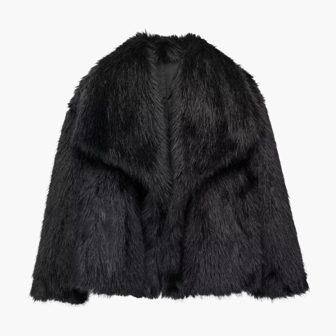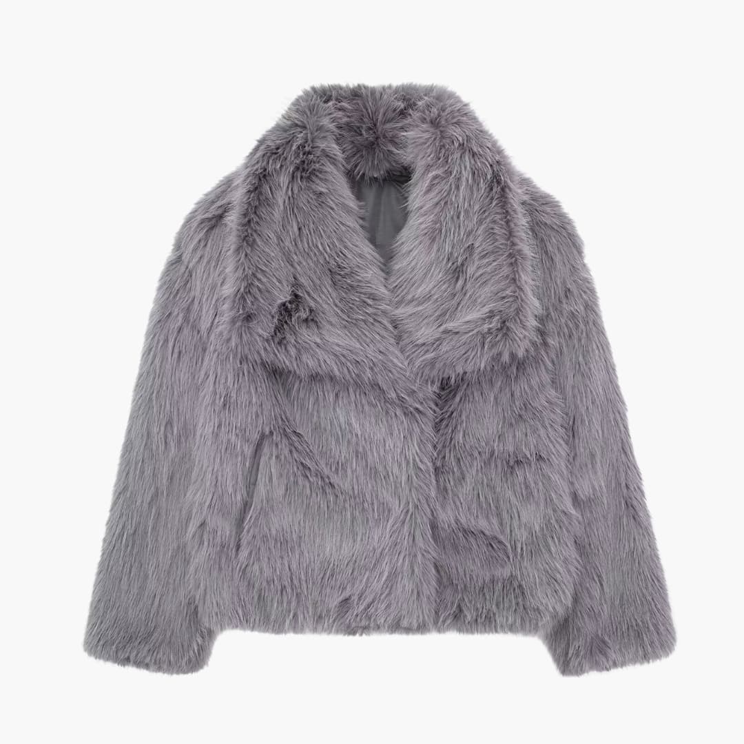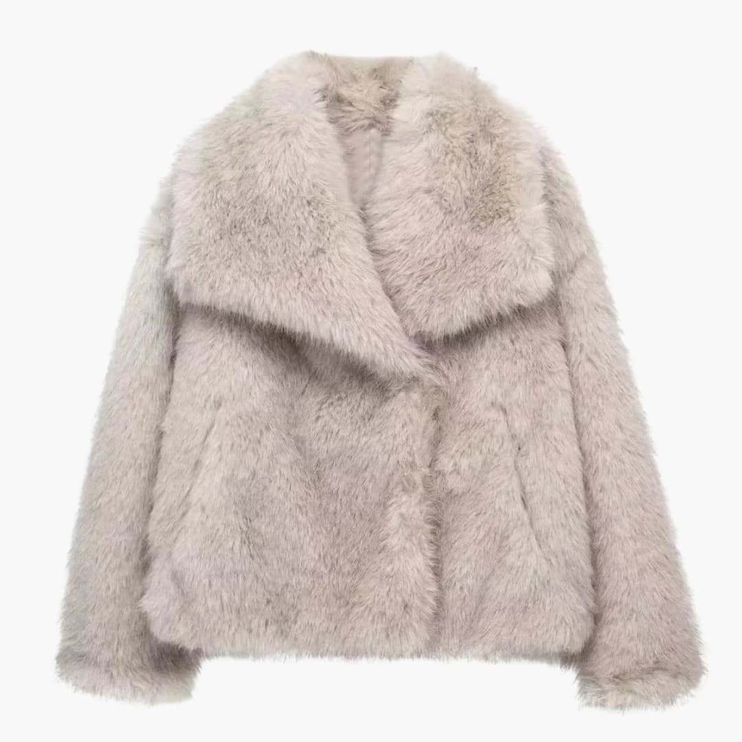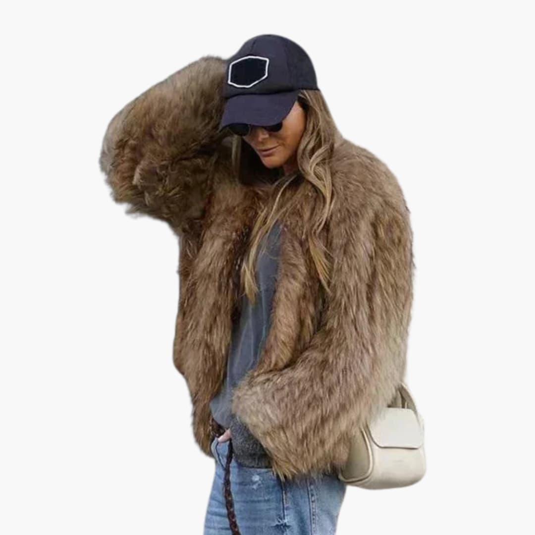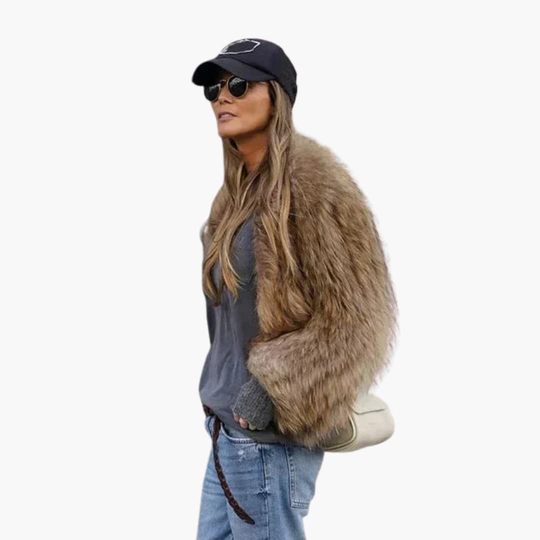 Damejakke i faux fur med lange ærmer