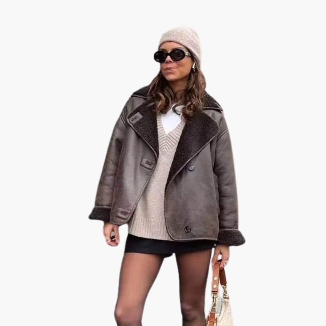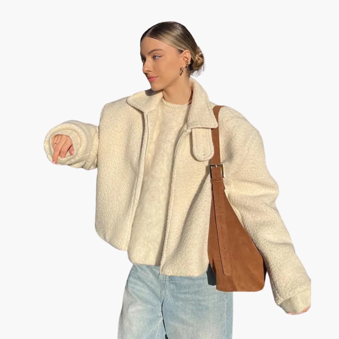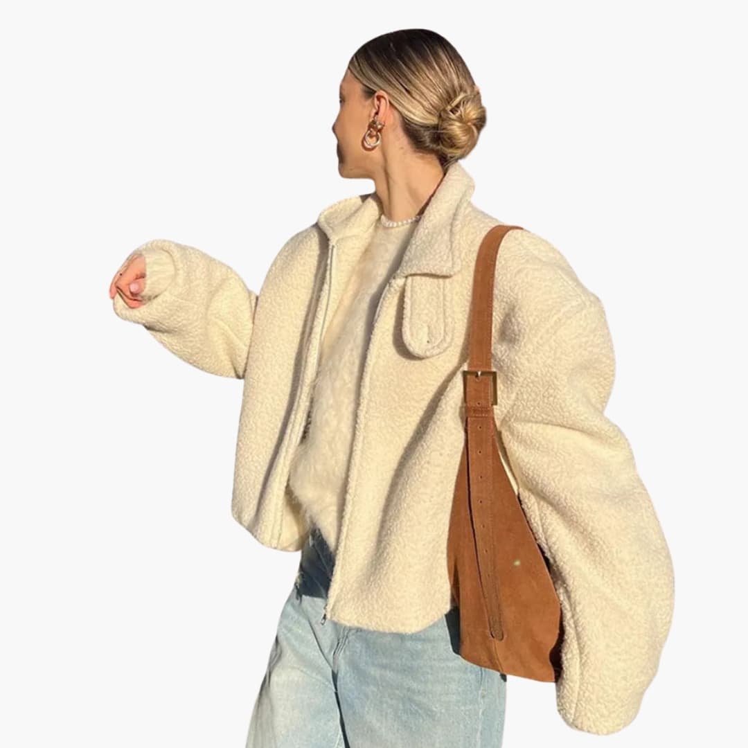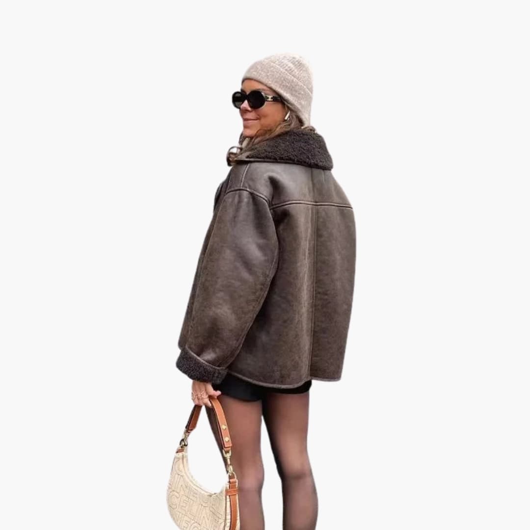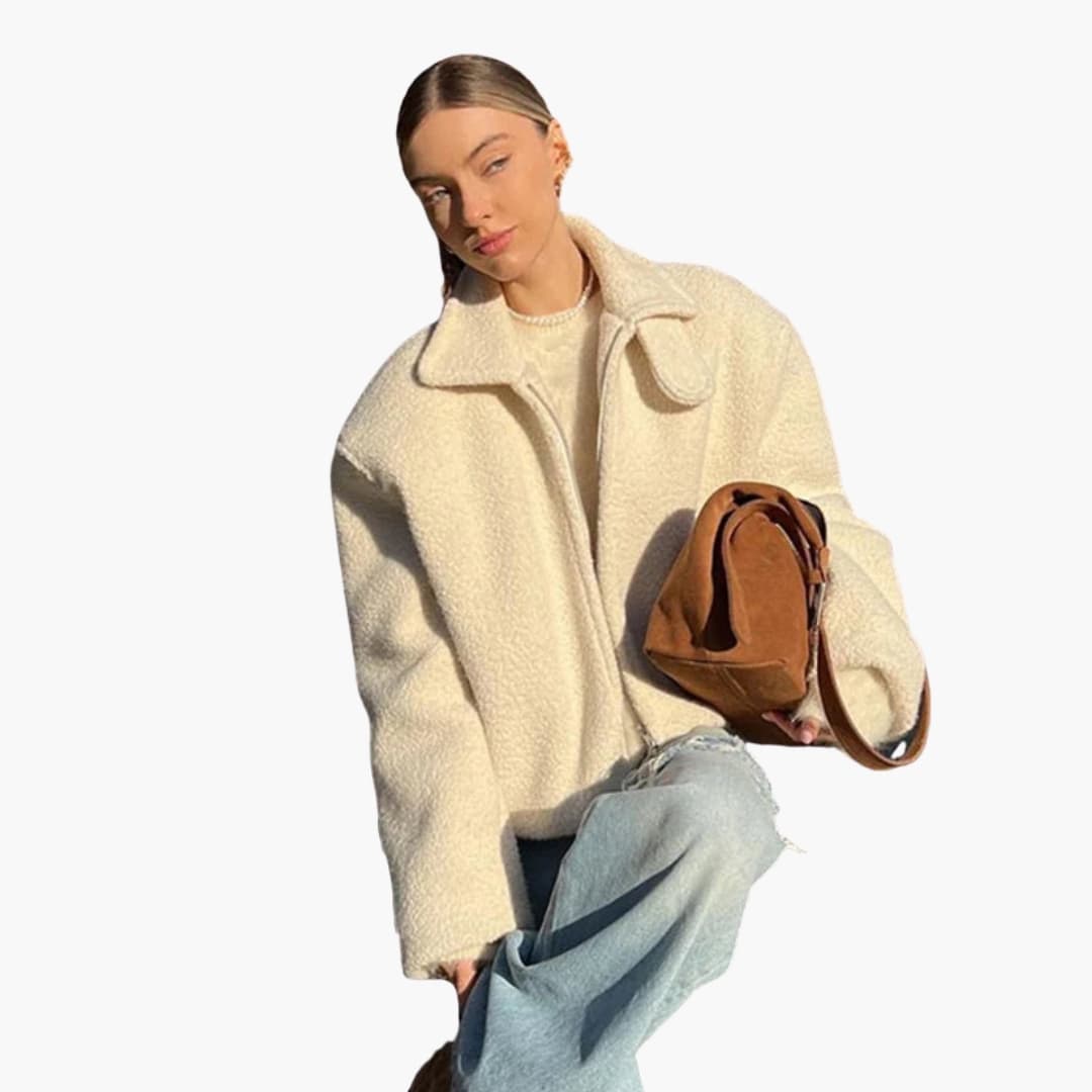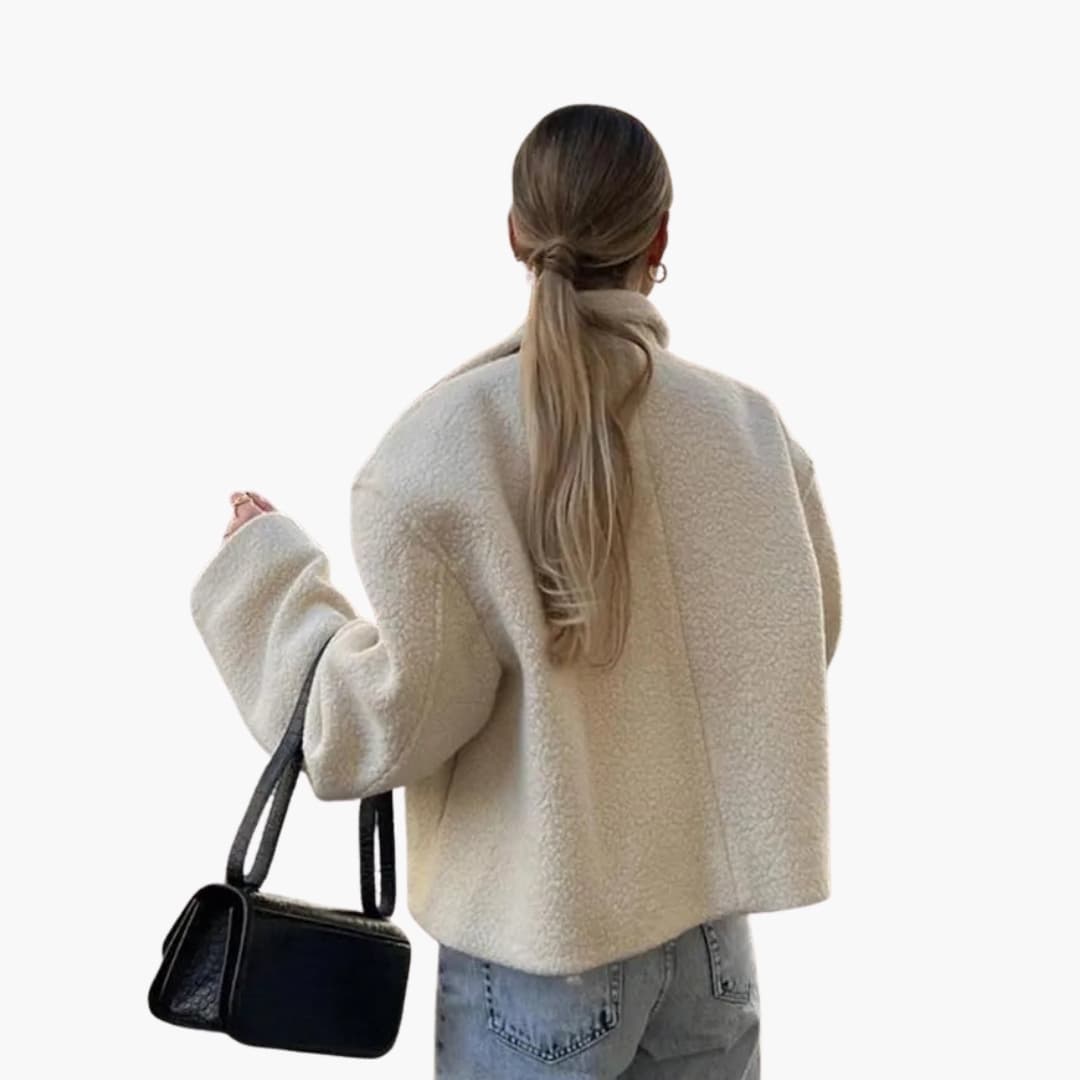 Damejakke i faux fur med lange ærmer