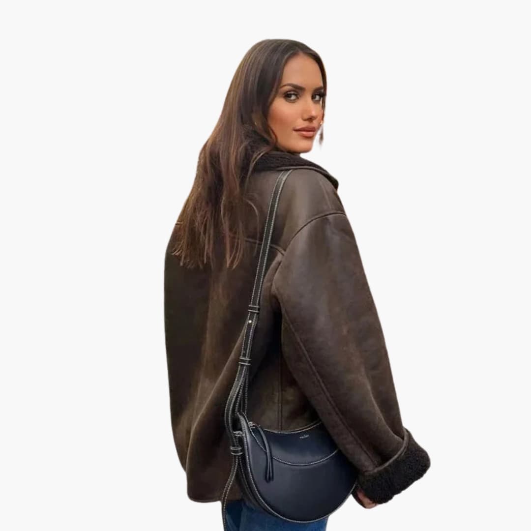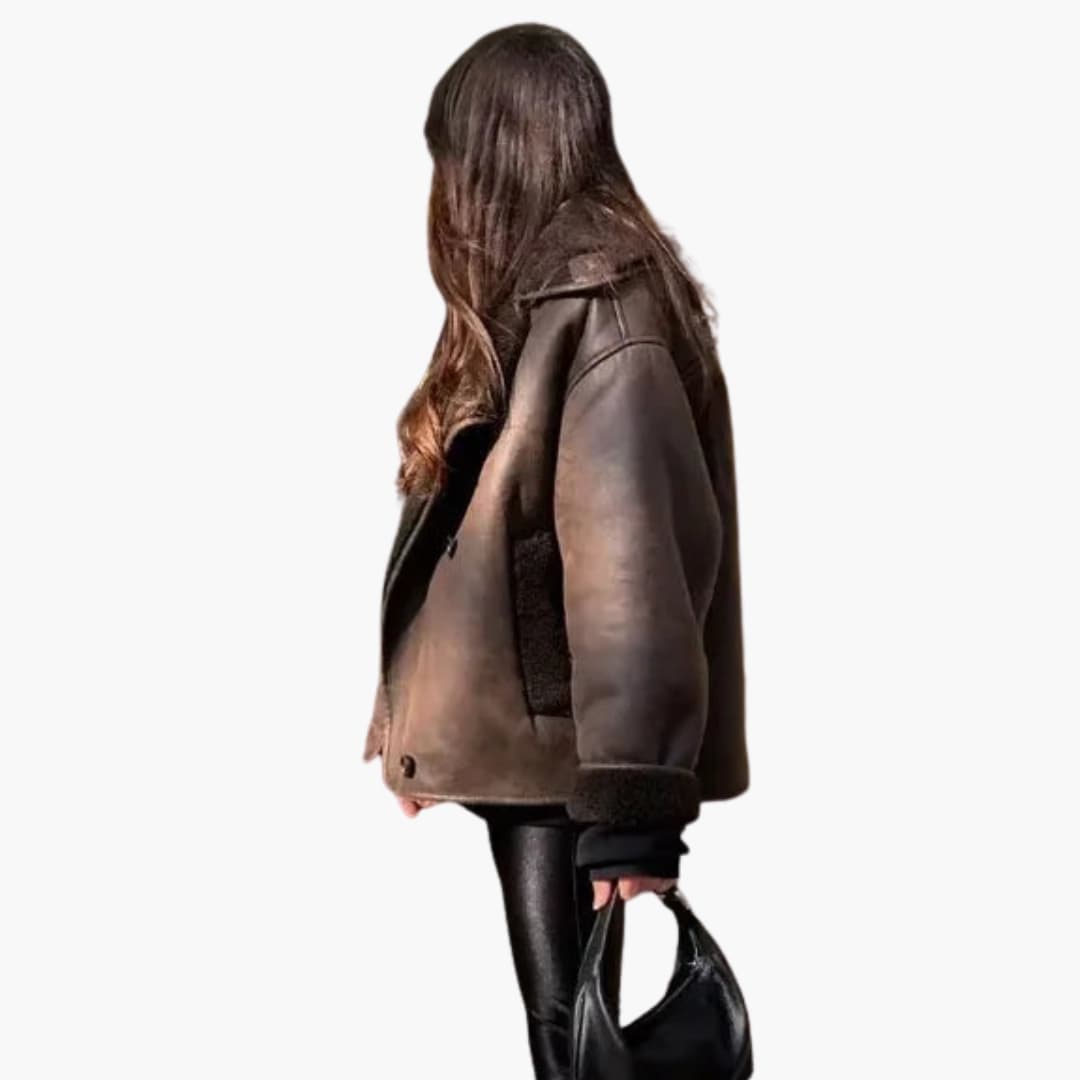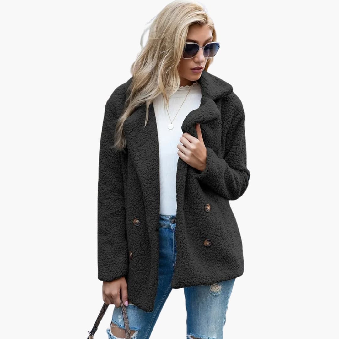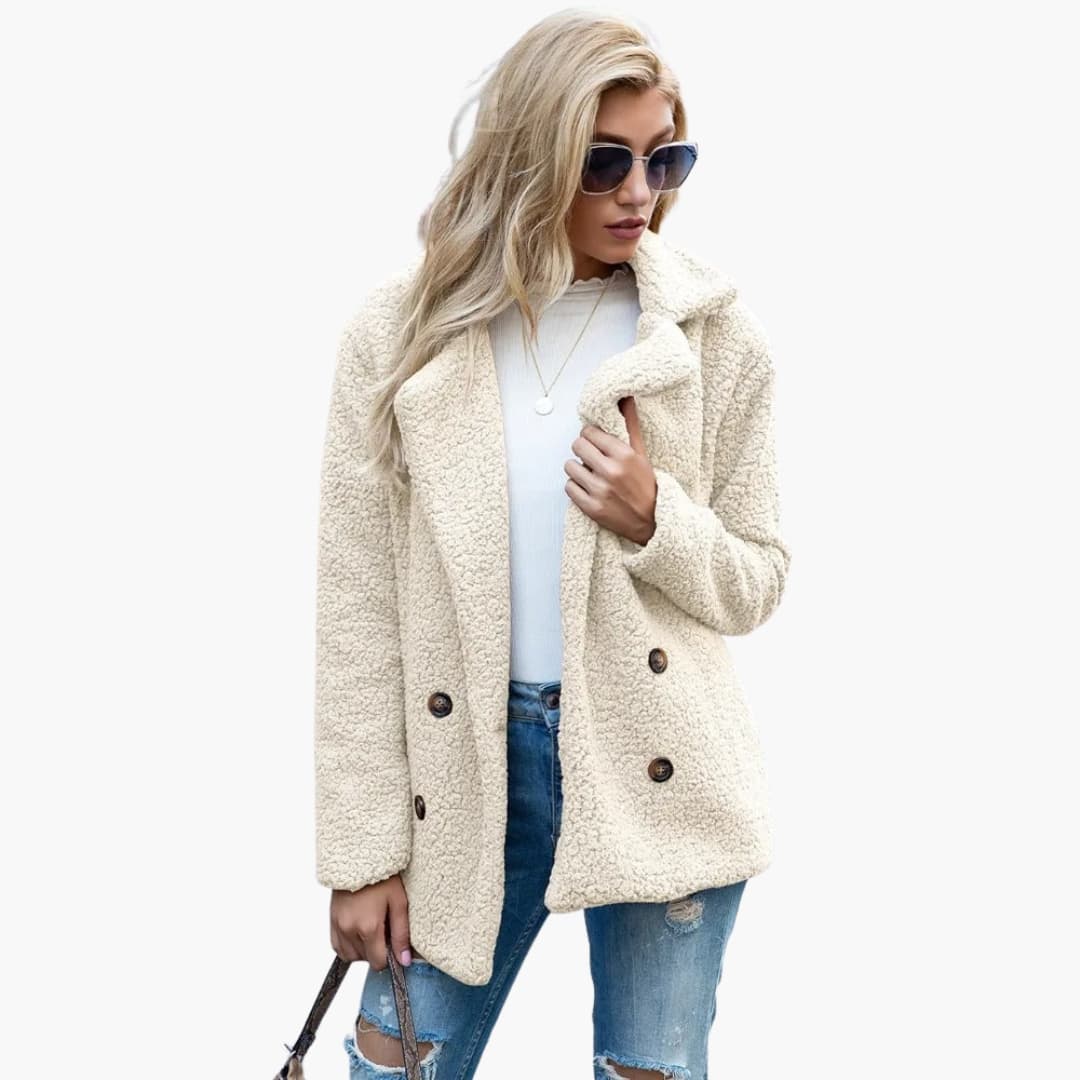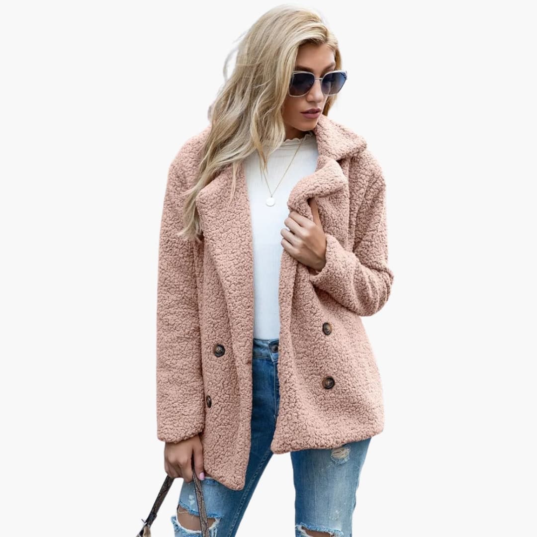 Damejakke i faux fur med lange ærmer