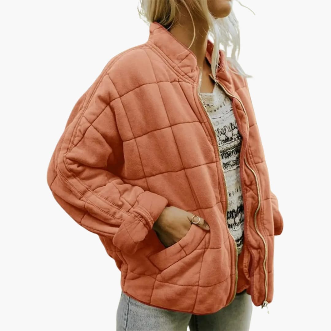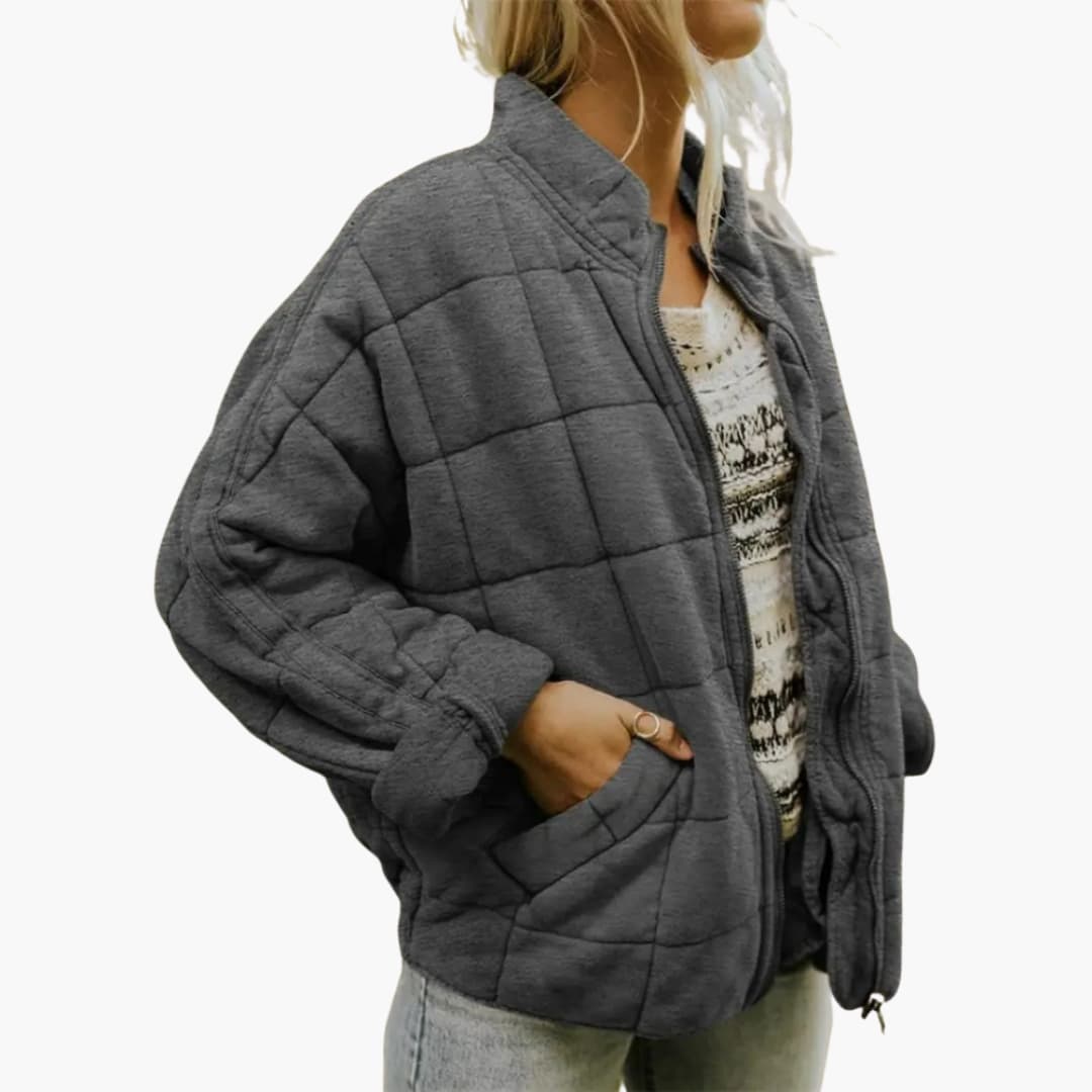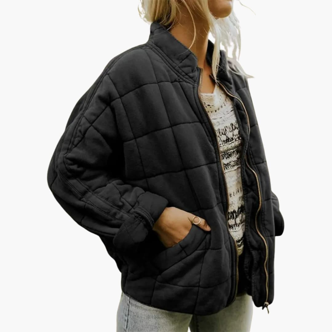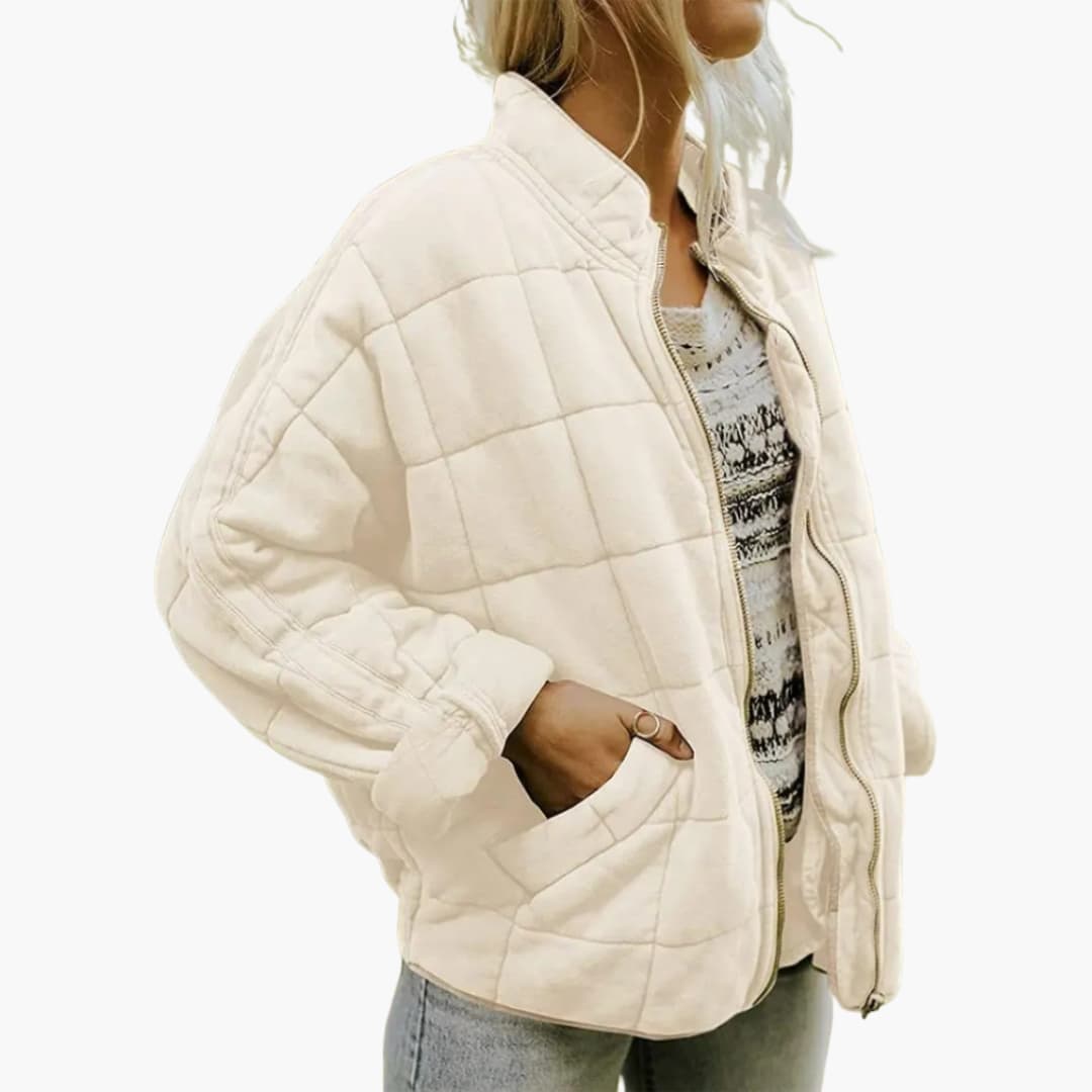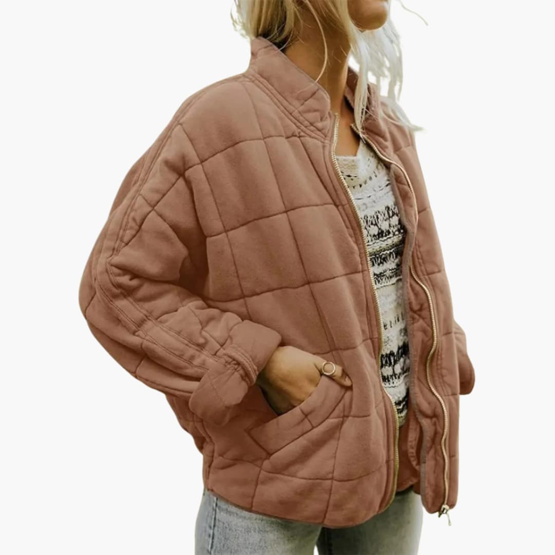 Dame quiltet jakke til efteråret med lynlås