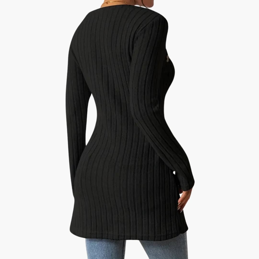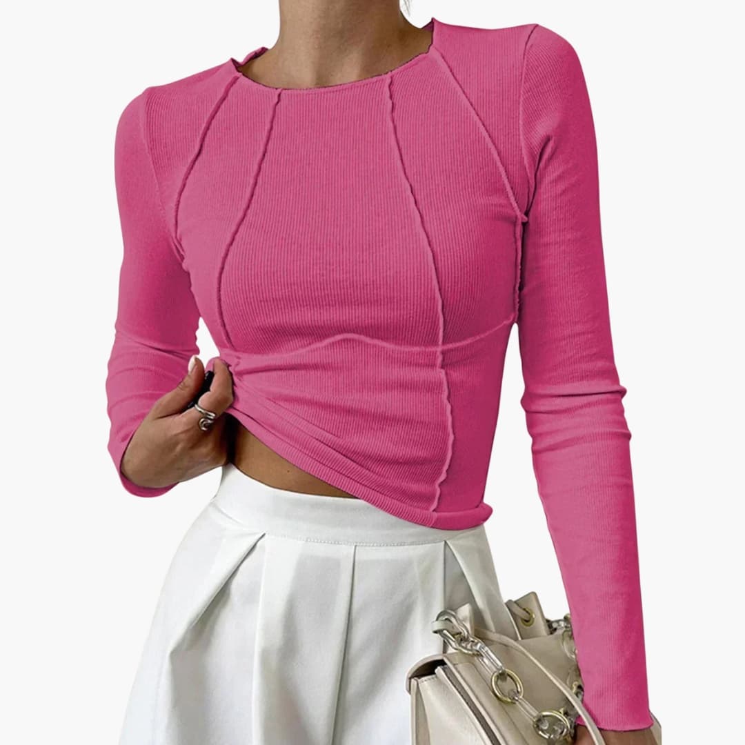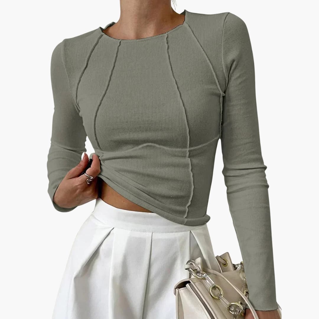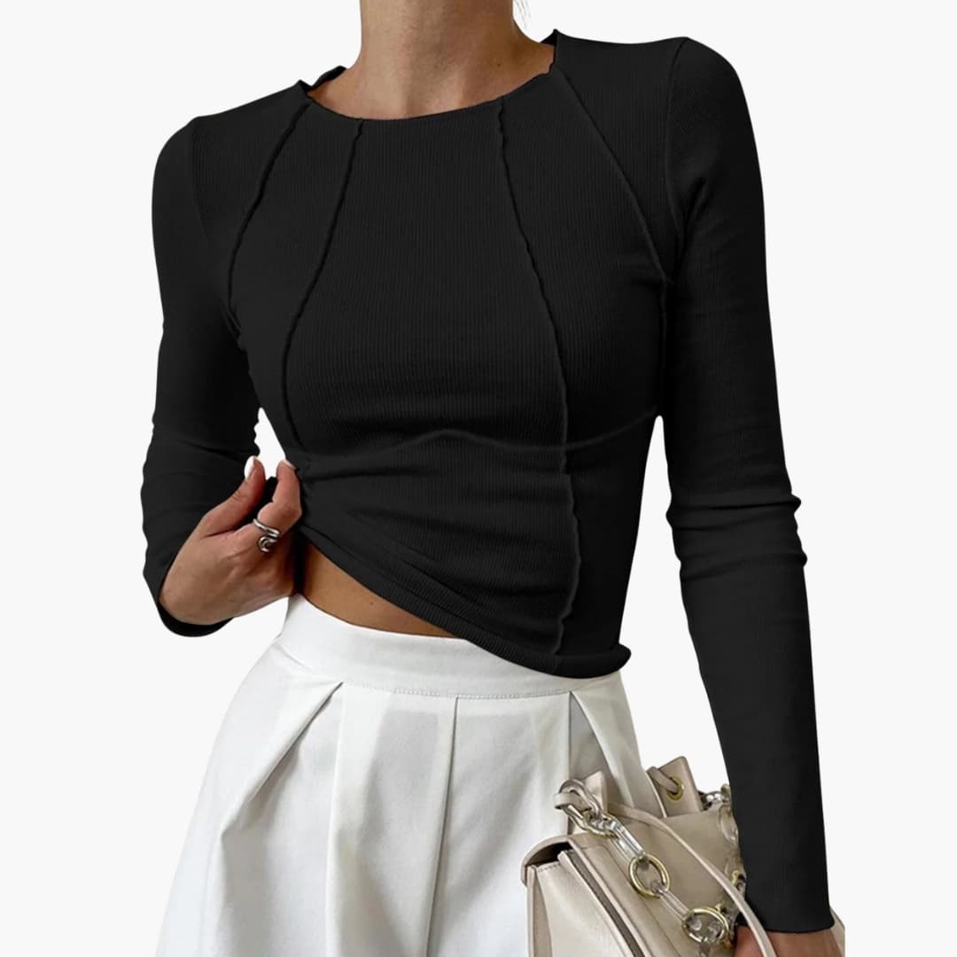 Dame top i ribstrikket materiale med lange ærmer