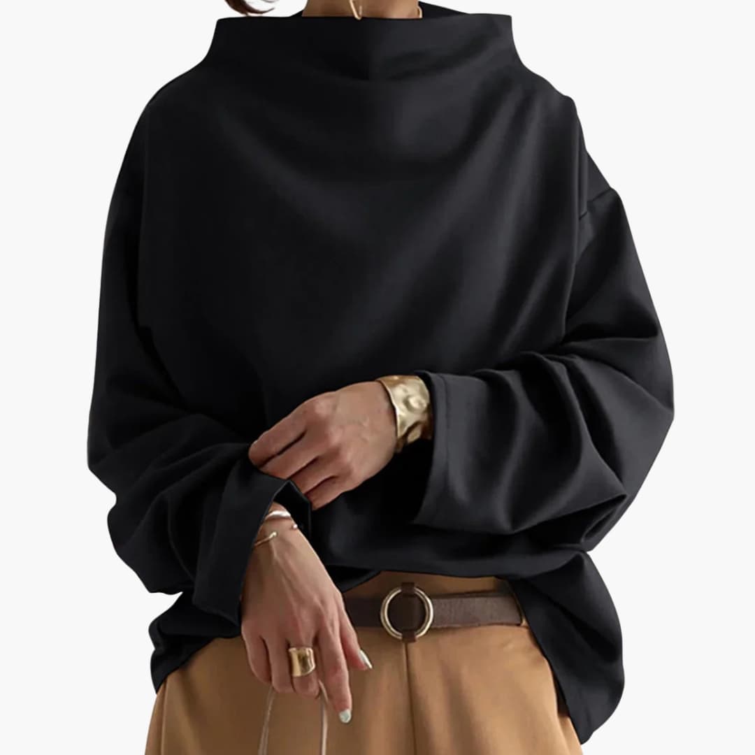 Oversize dame sweater med høj hals og ribkant