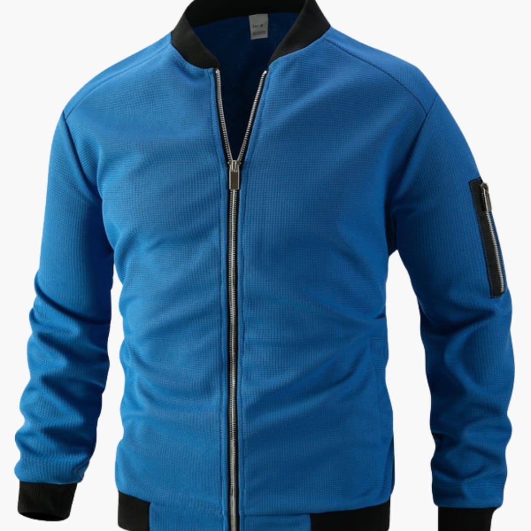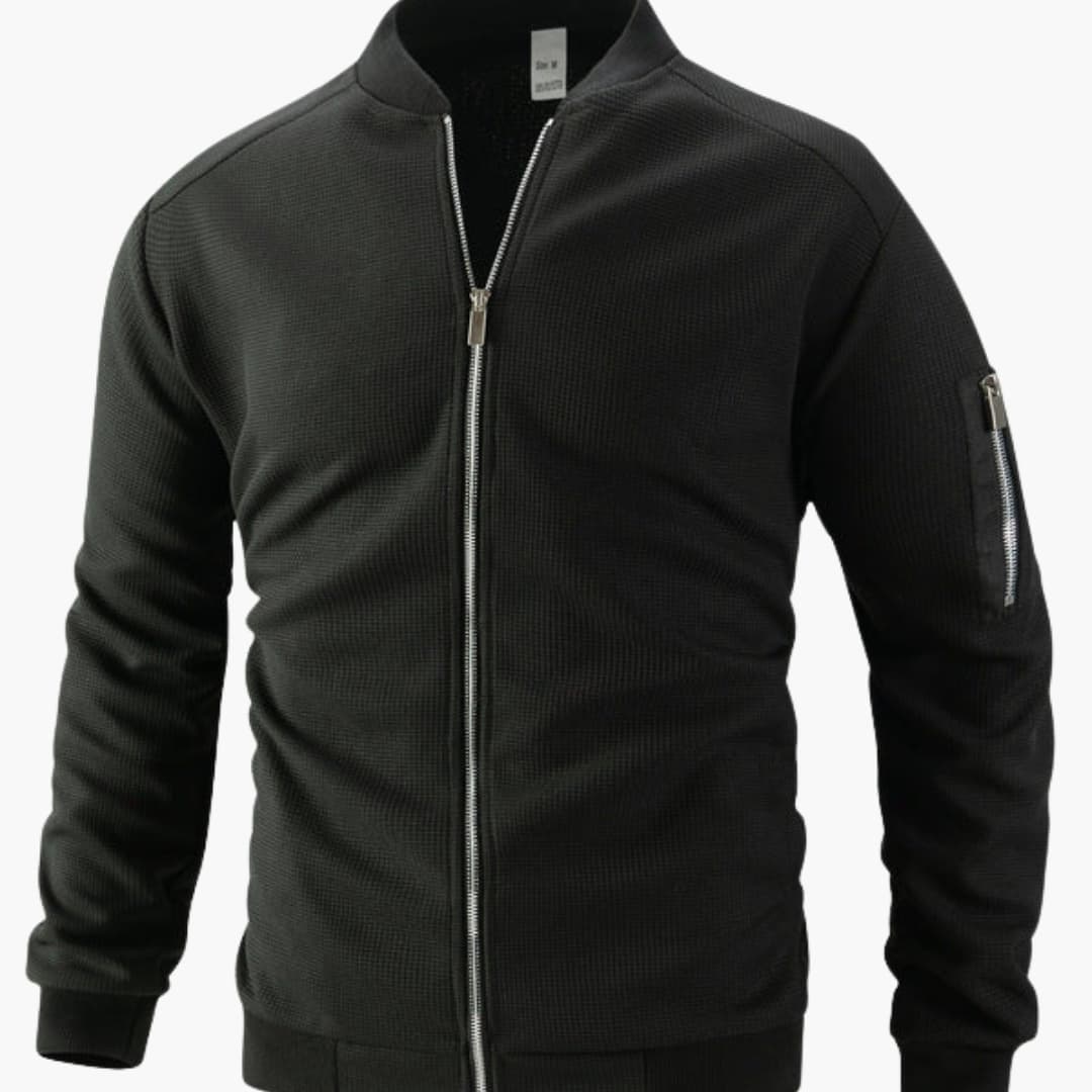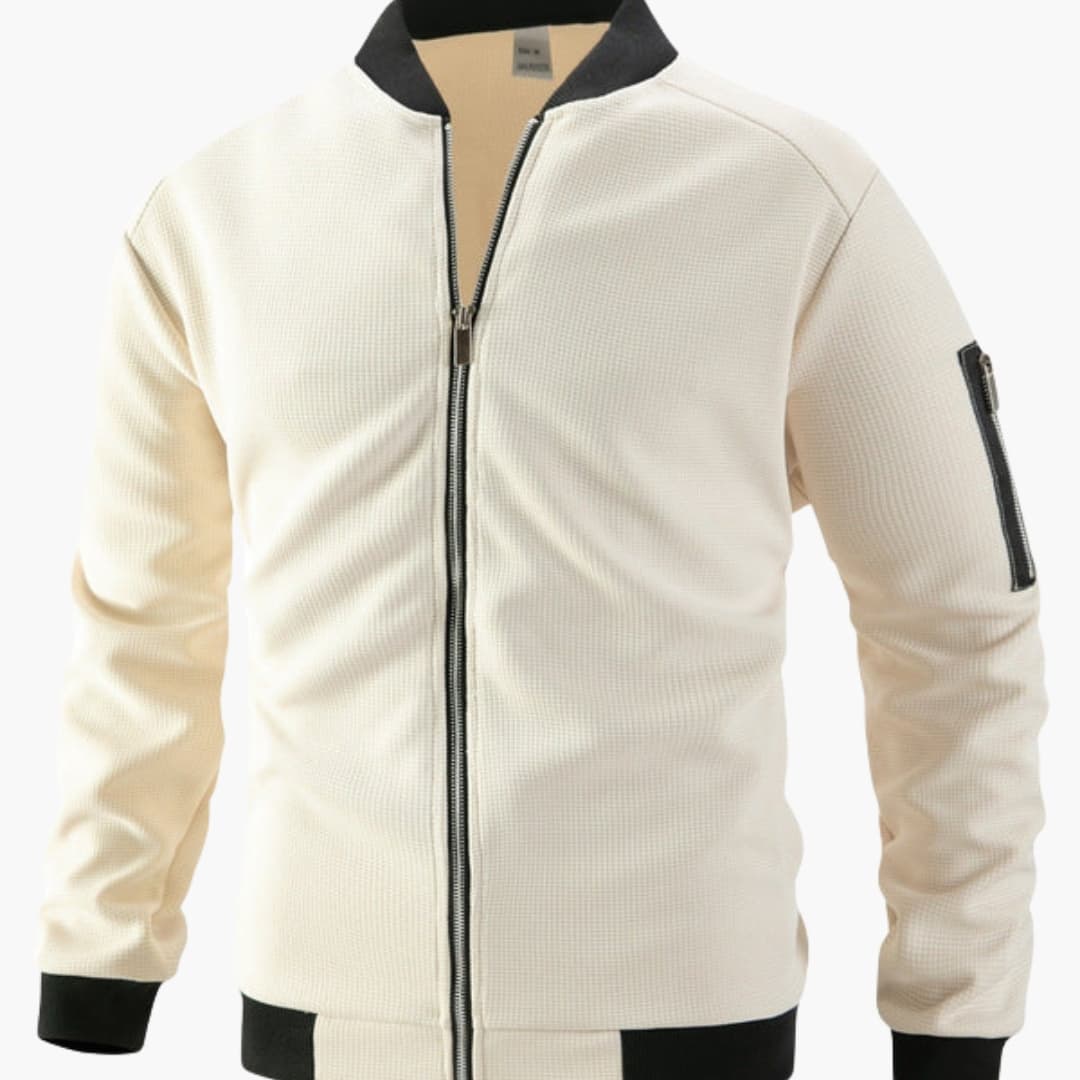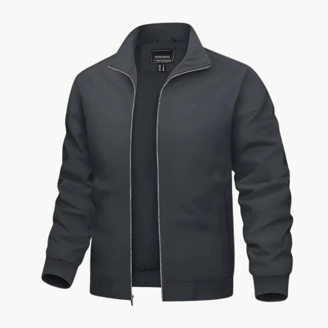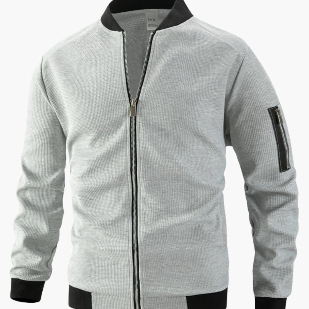 Herrebomberjakke med lynlås foran og ribbede detaljer