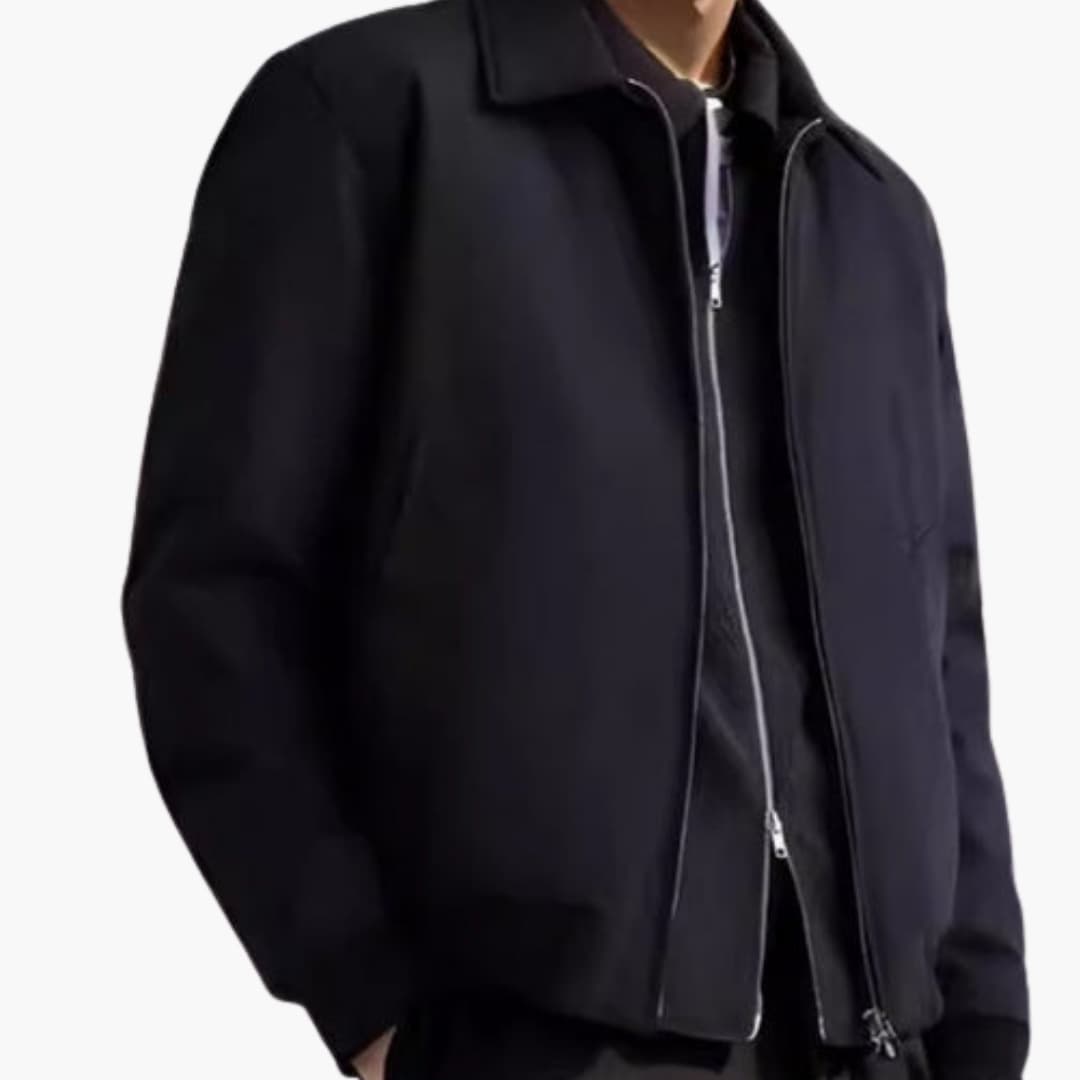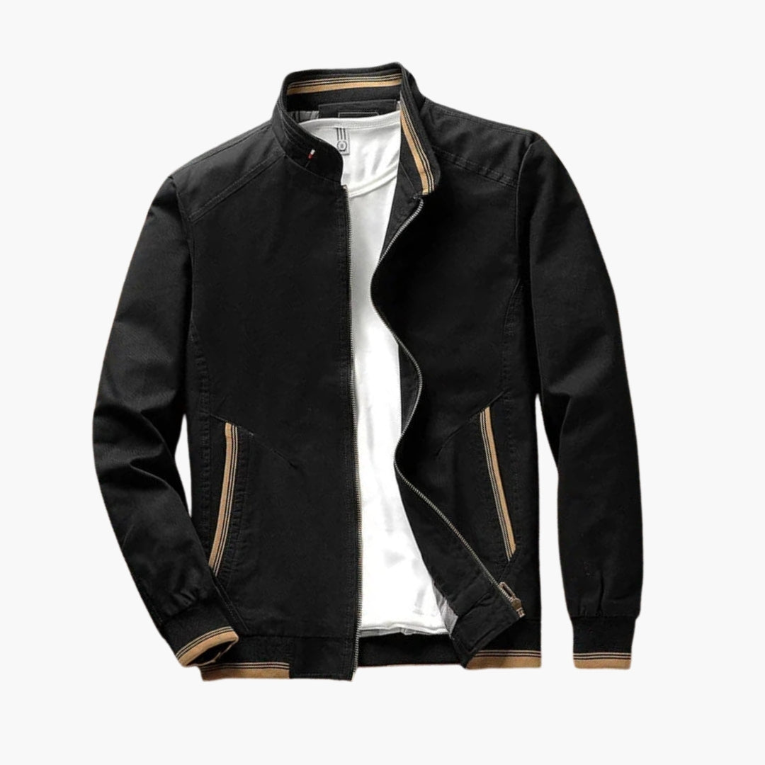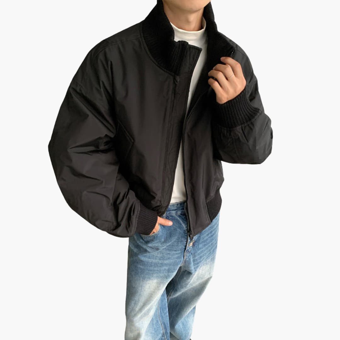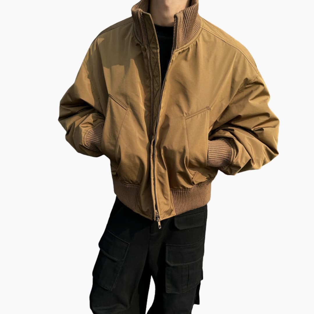Herrebomberjakke med lynlås foran og ribbede detaljer