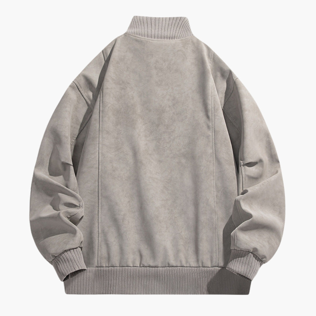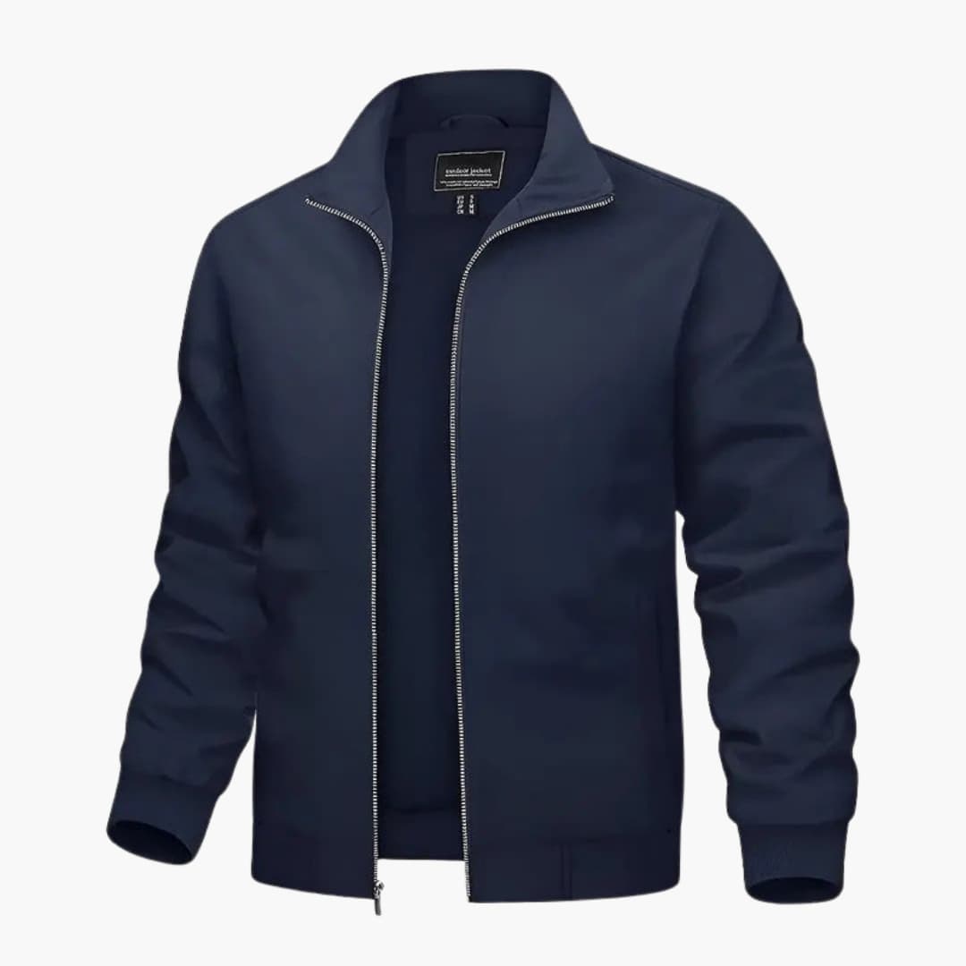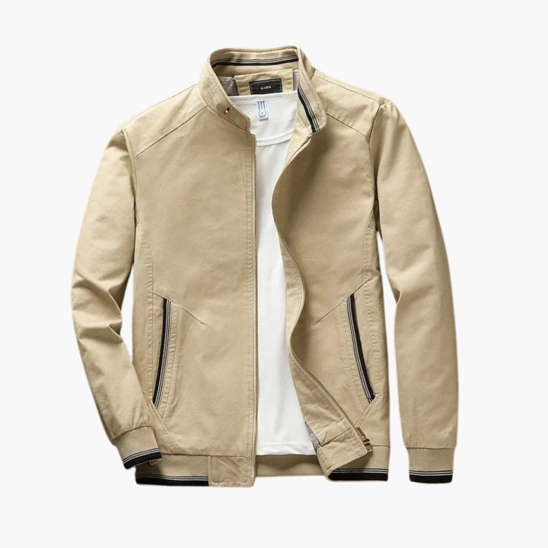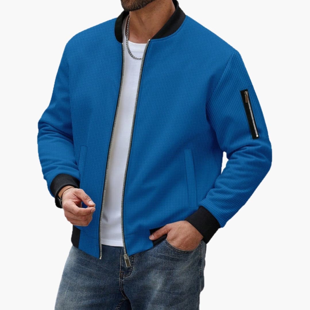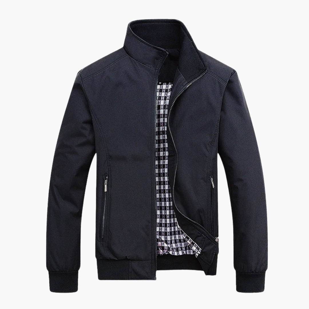 Herrebomberjakke med lynlås foran og ribbede detaljer