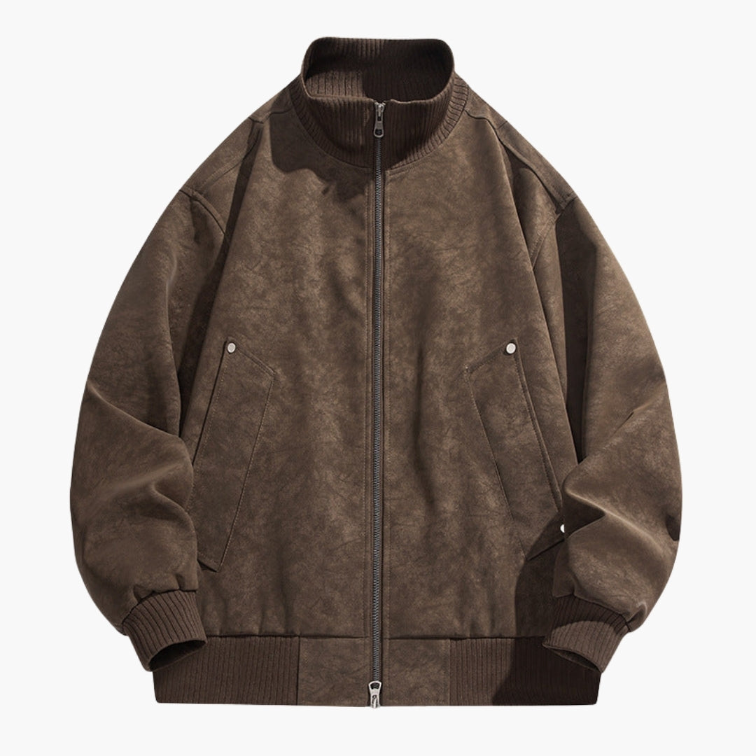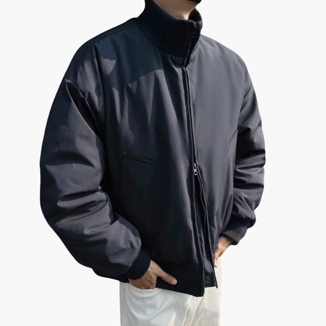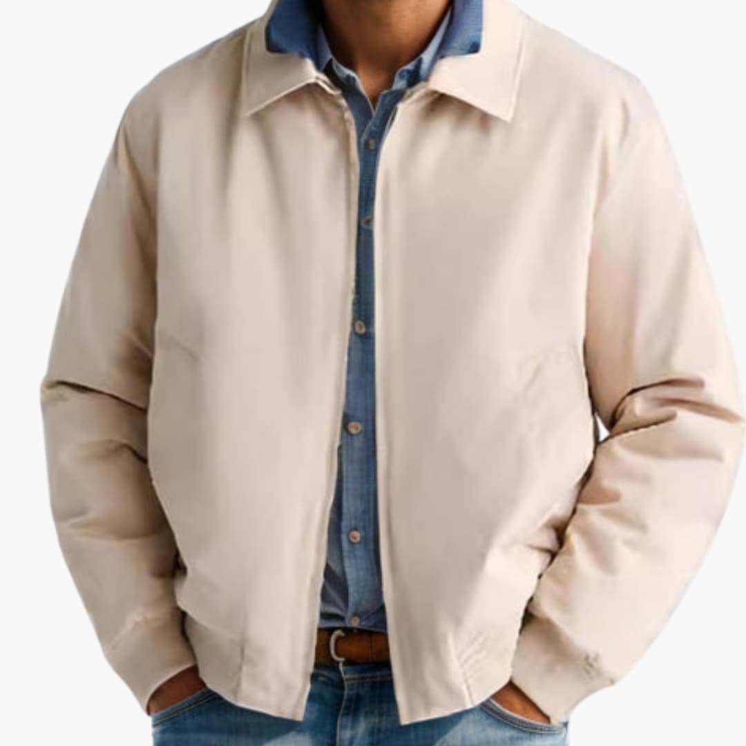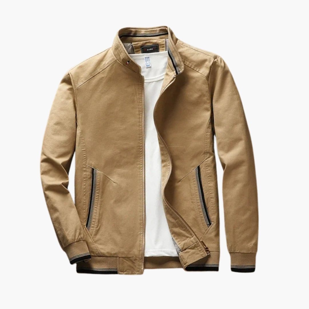 Herrebomberjakke med lynlås foran og ribbede detaljer