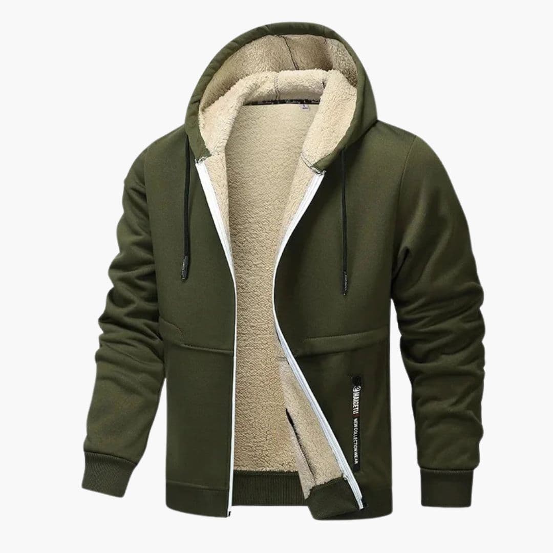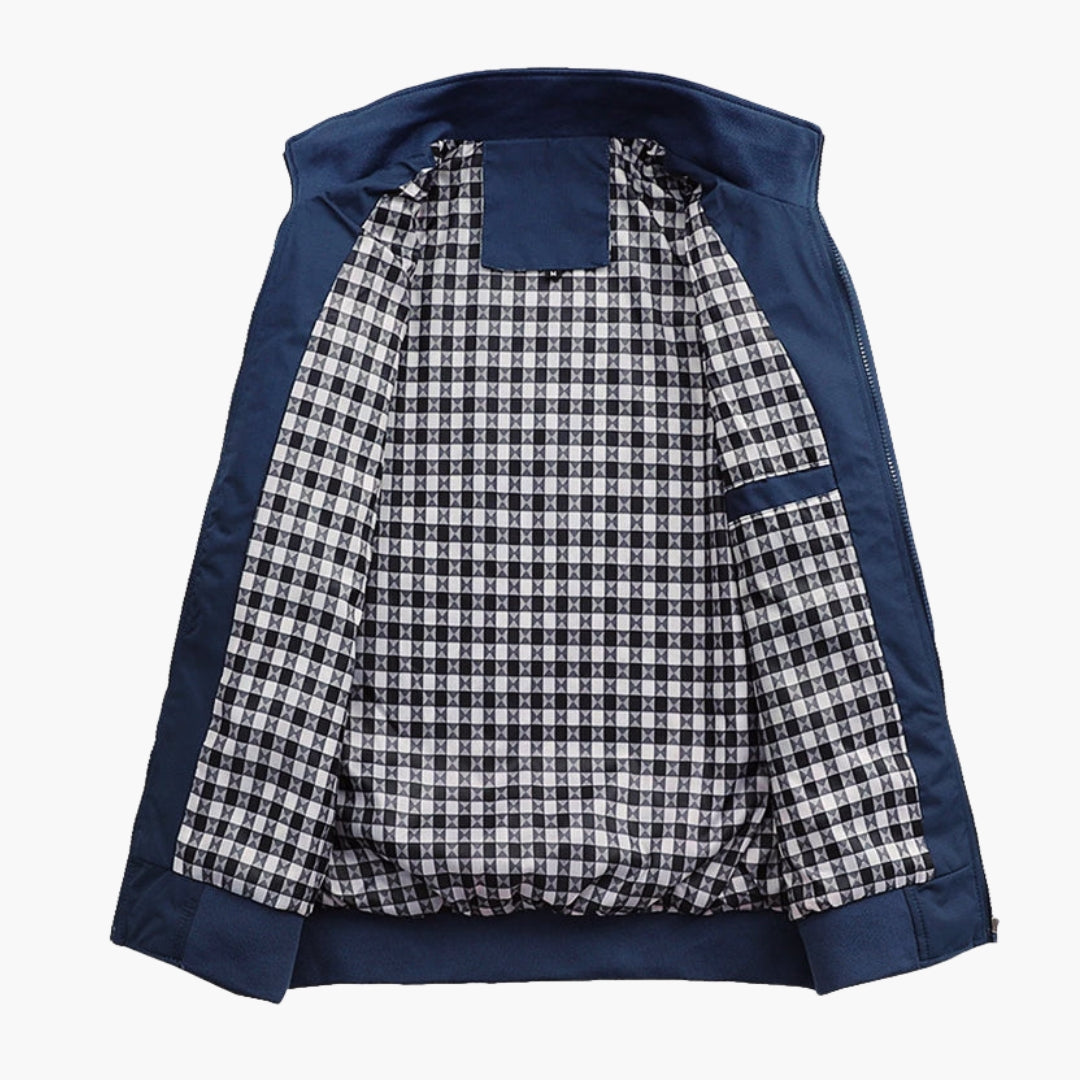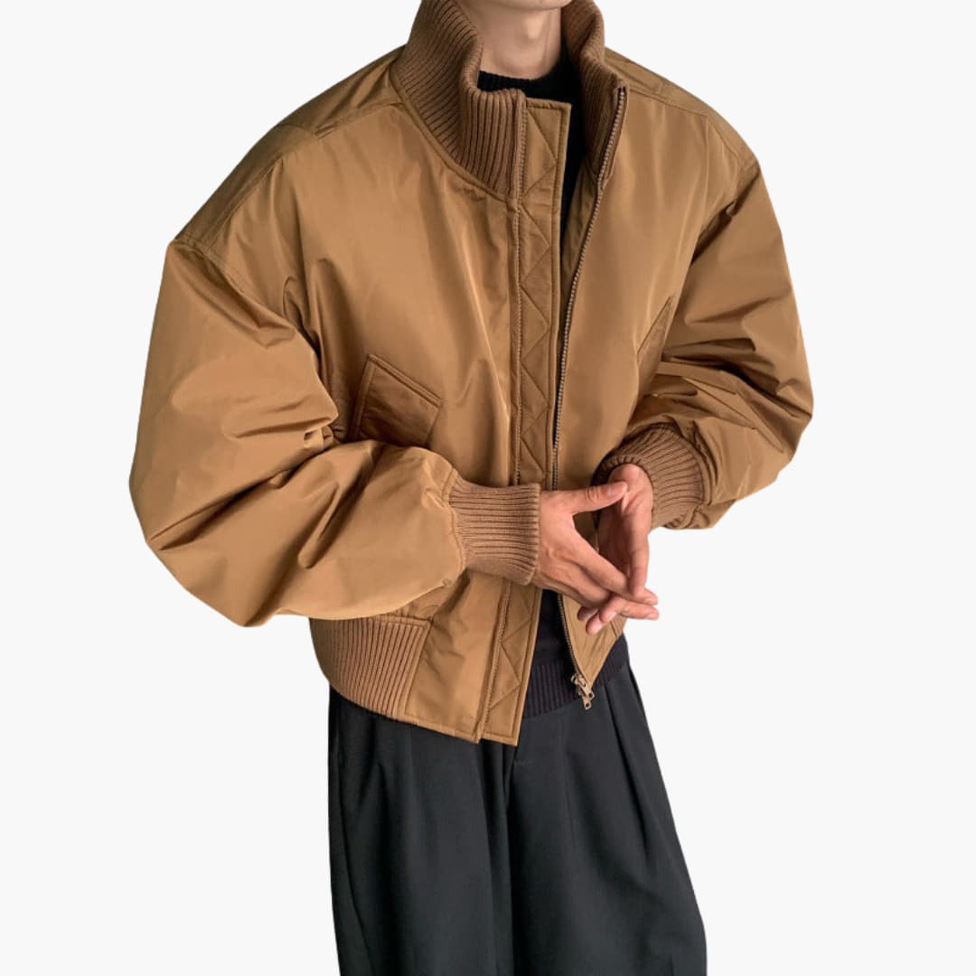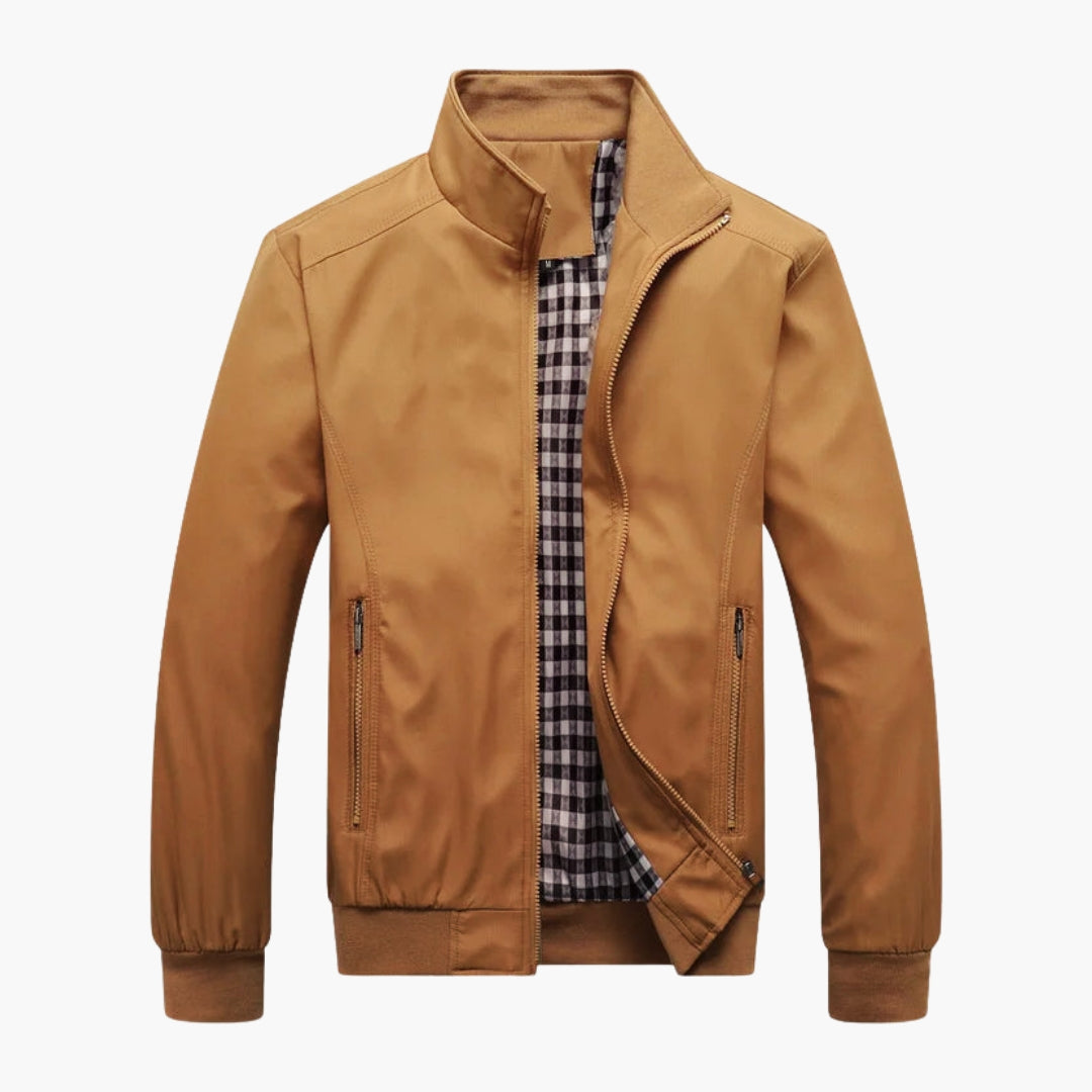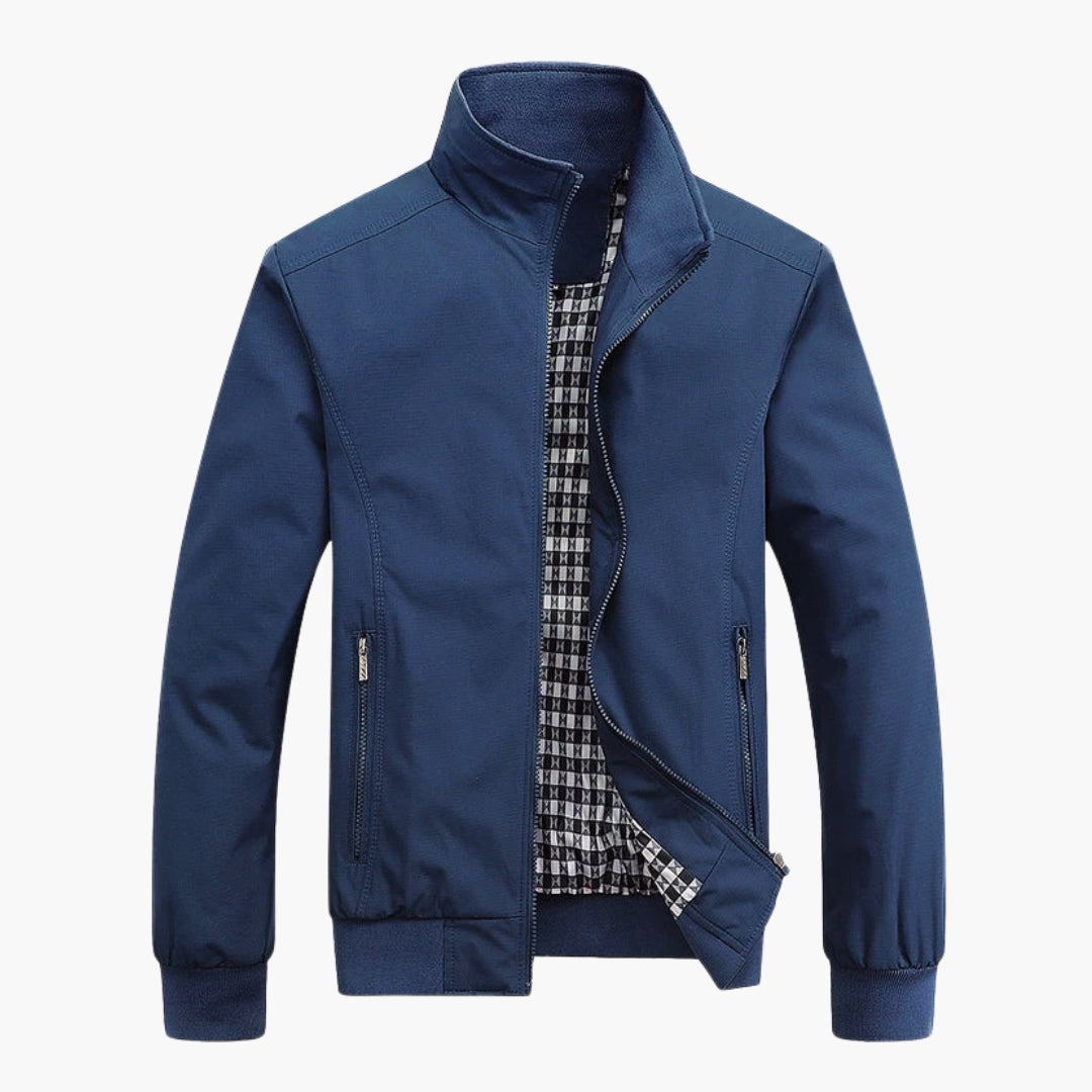 Herrebomberjakke med lynlås foran og ribbede detaljer