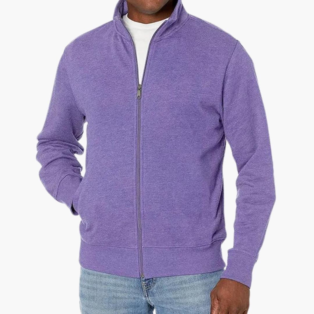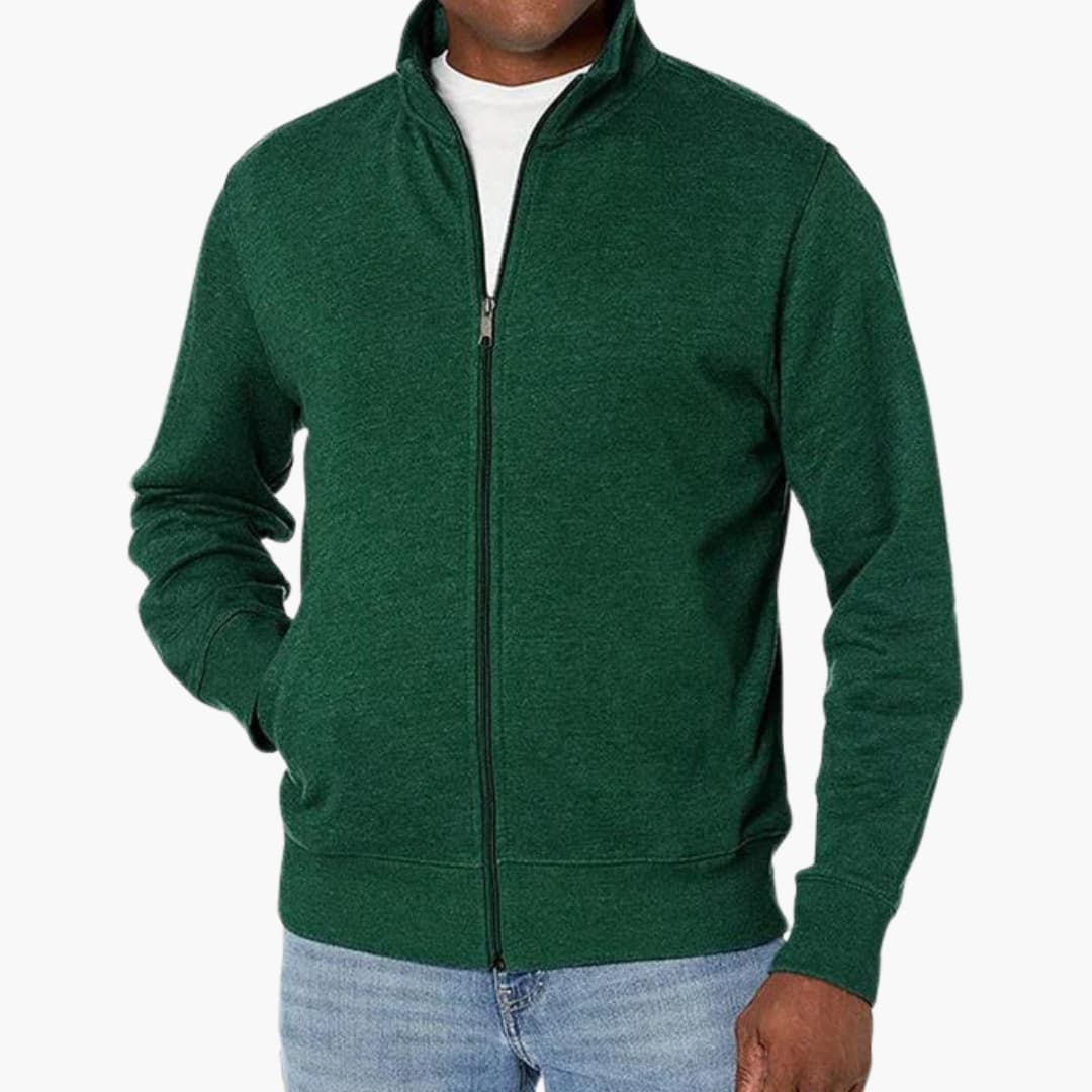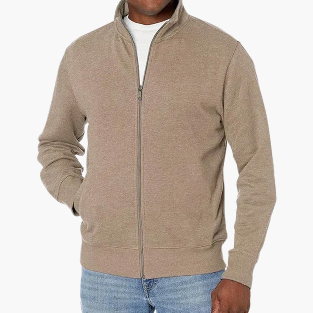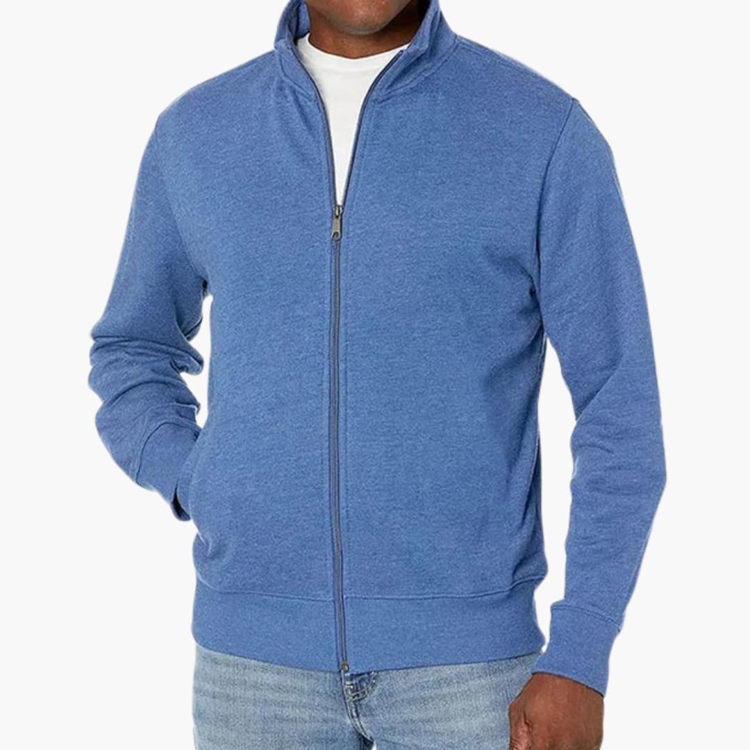 Herre jakke med lynlås i blandet stof med lange ærmer