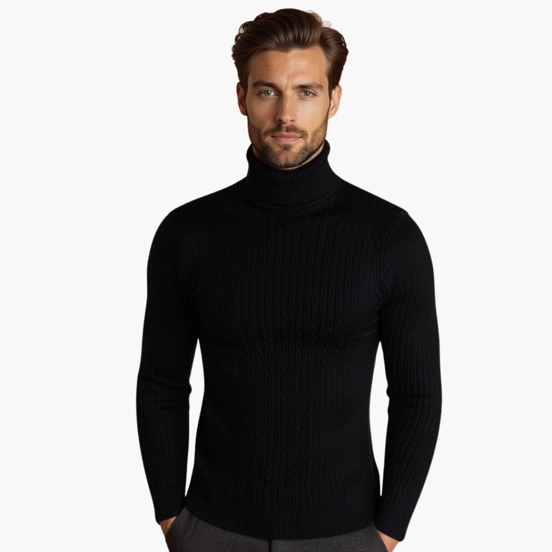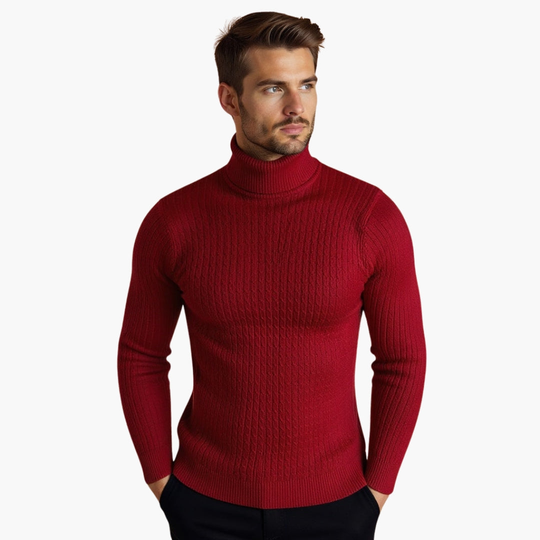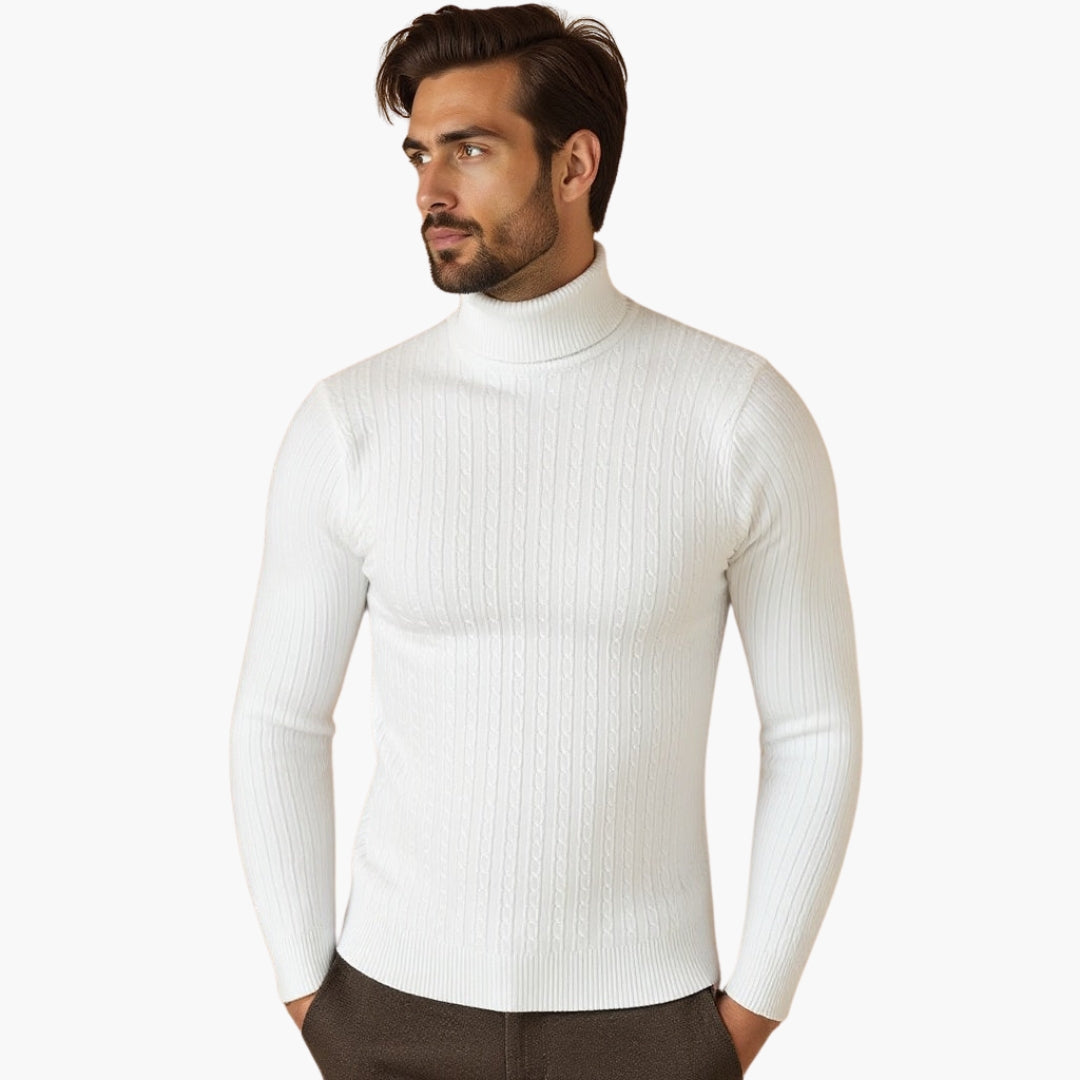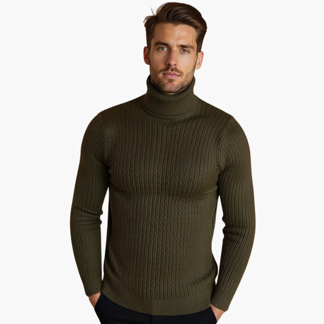 Herre Rullekrave Sweater med Tvistet Mønster og Ribkant