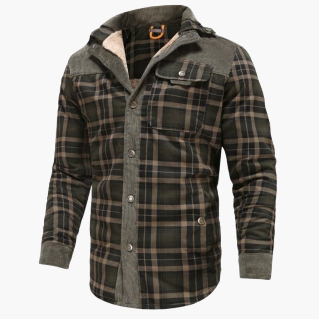 Herre Flannel Jakke Outdoor med Fleece Foring og Knapper