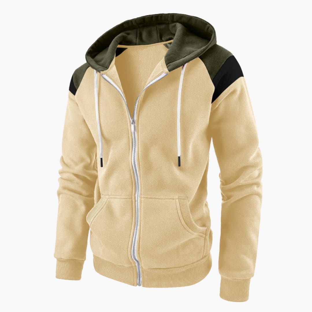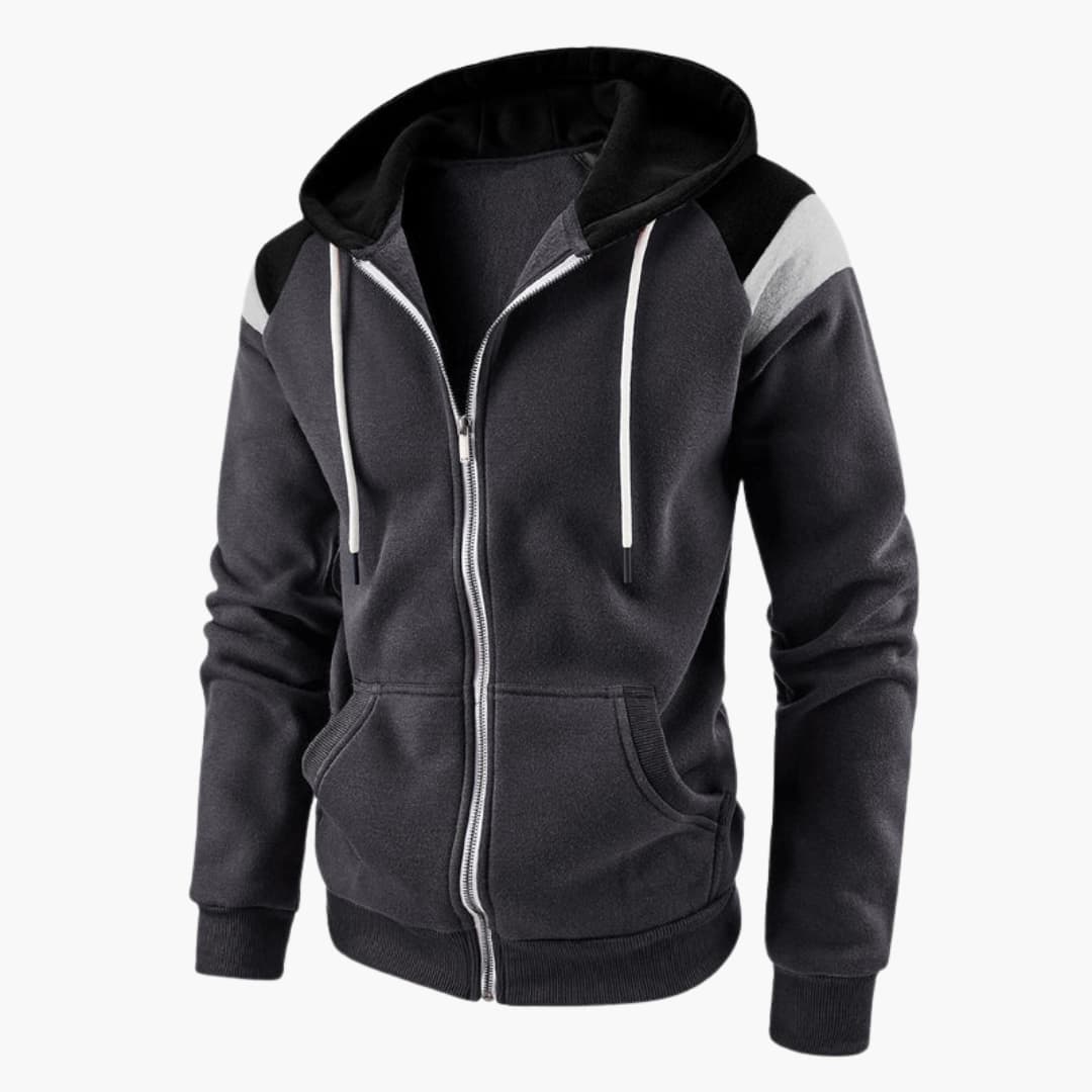 Herre hoodie med lynlås, frontlommer og lange ærmer